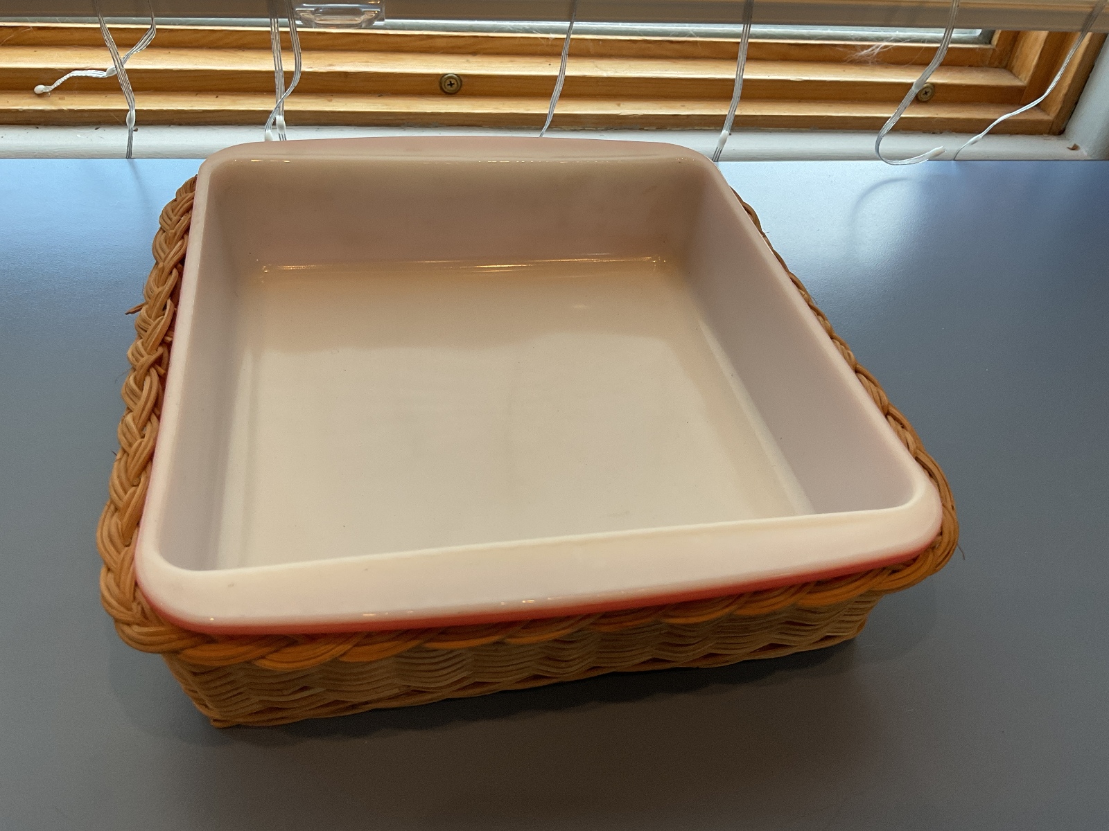 Vintage Pyrex Casserole Dish with Basket 9 x 9”