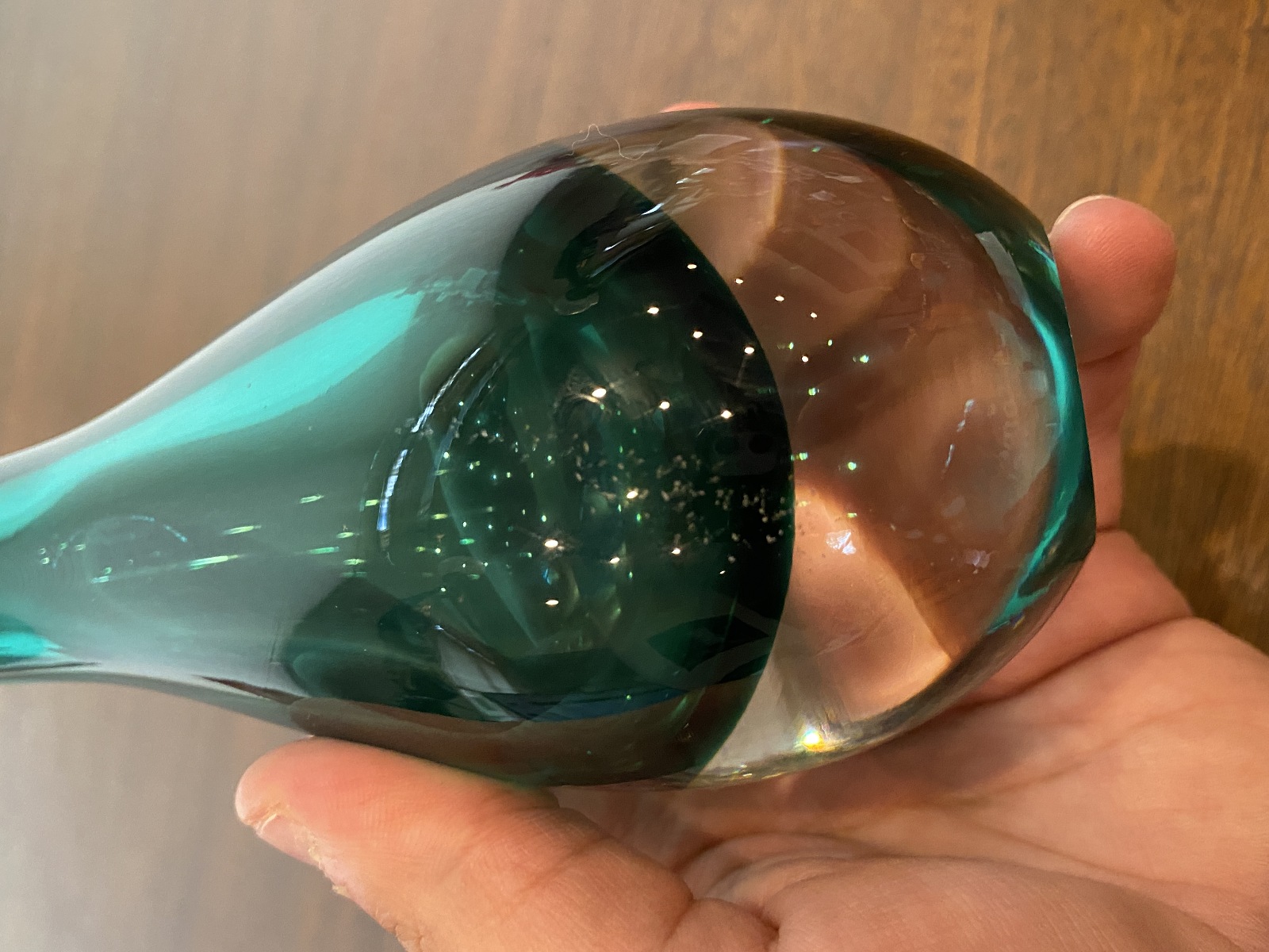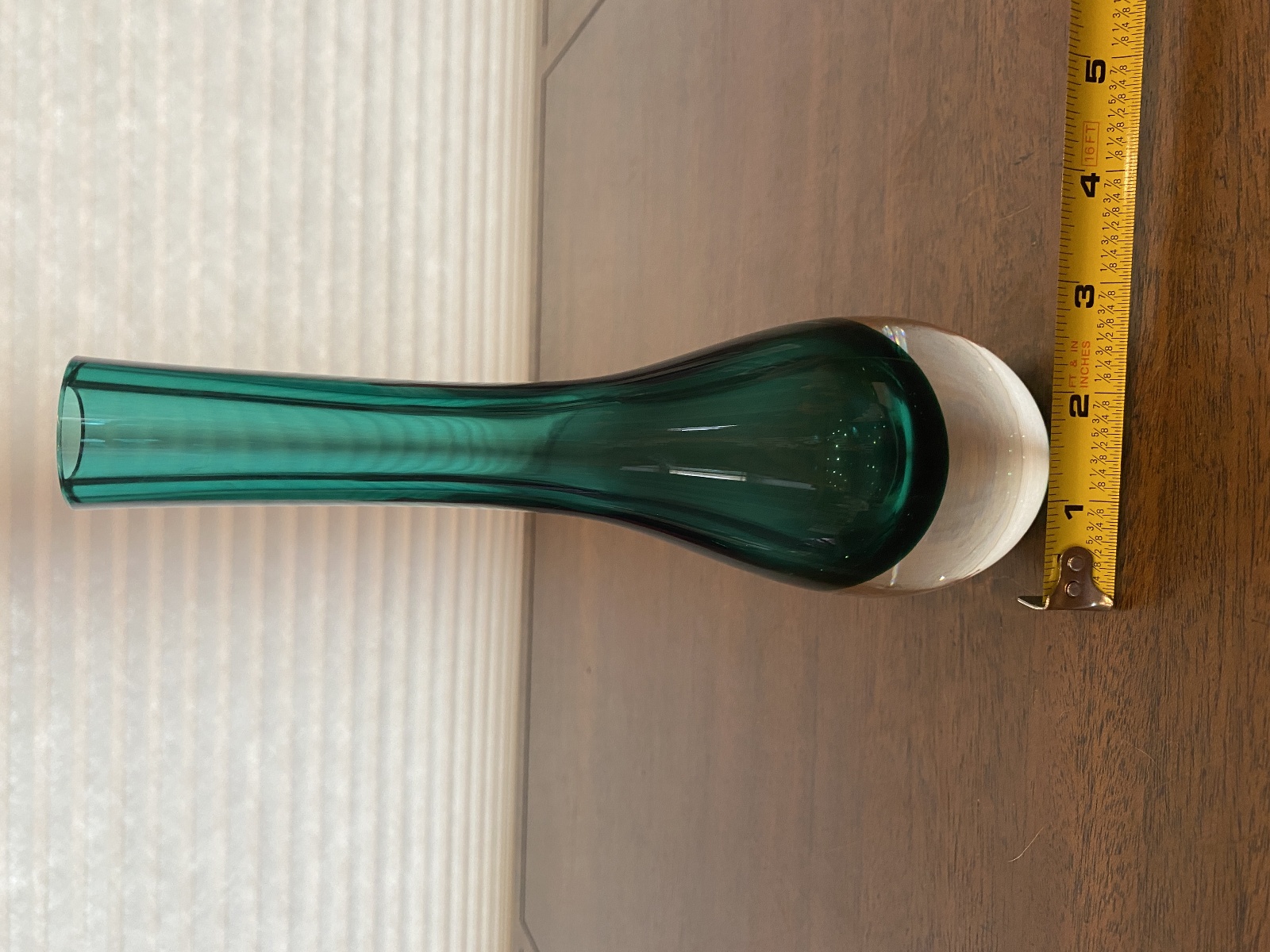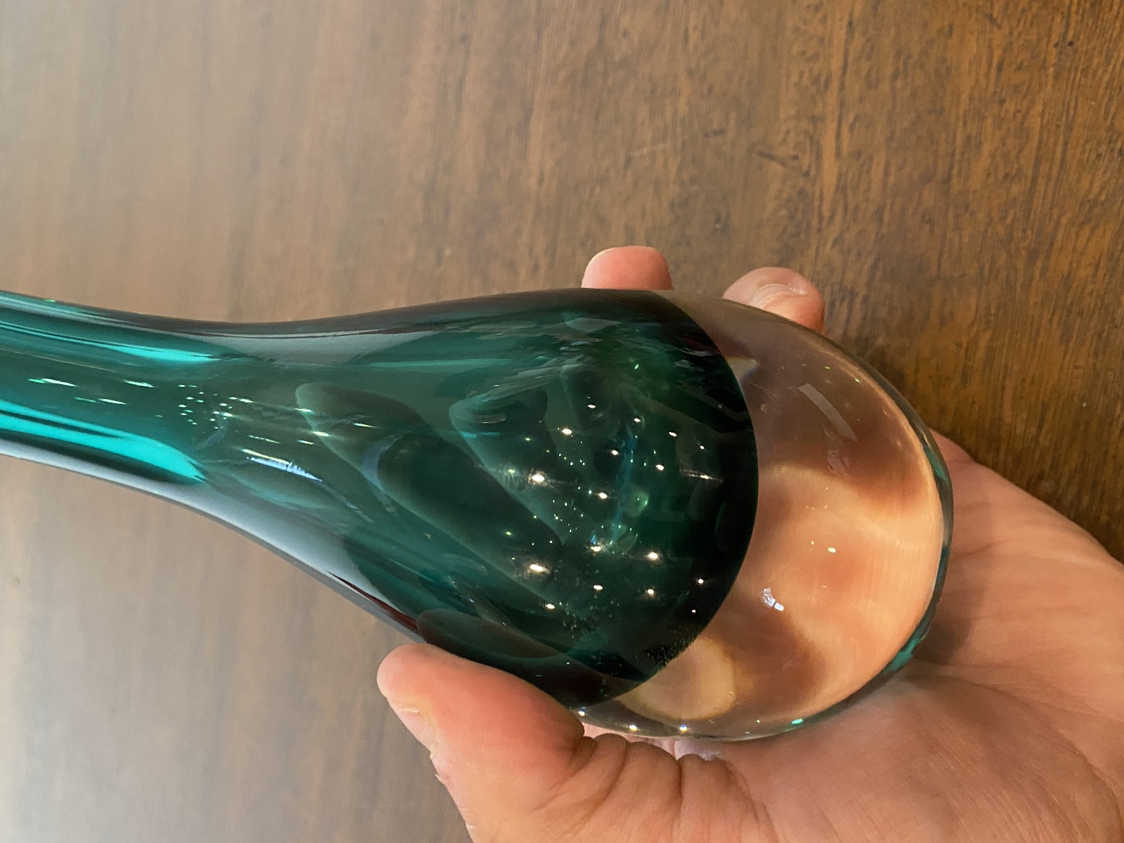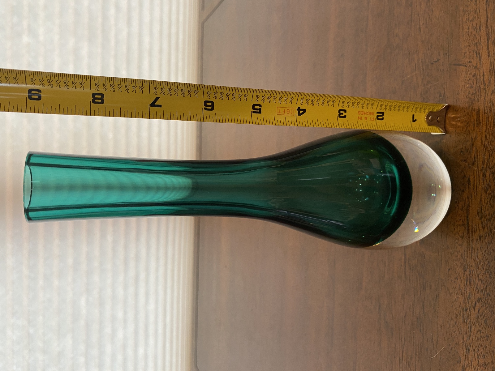 VTG Green Sommerso Tear Drop Style Art Glass Vase 9"H