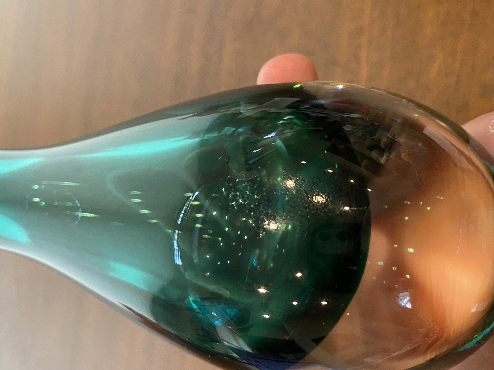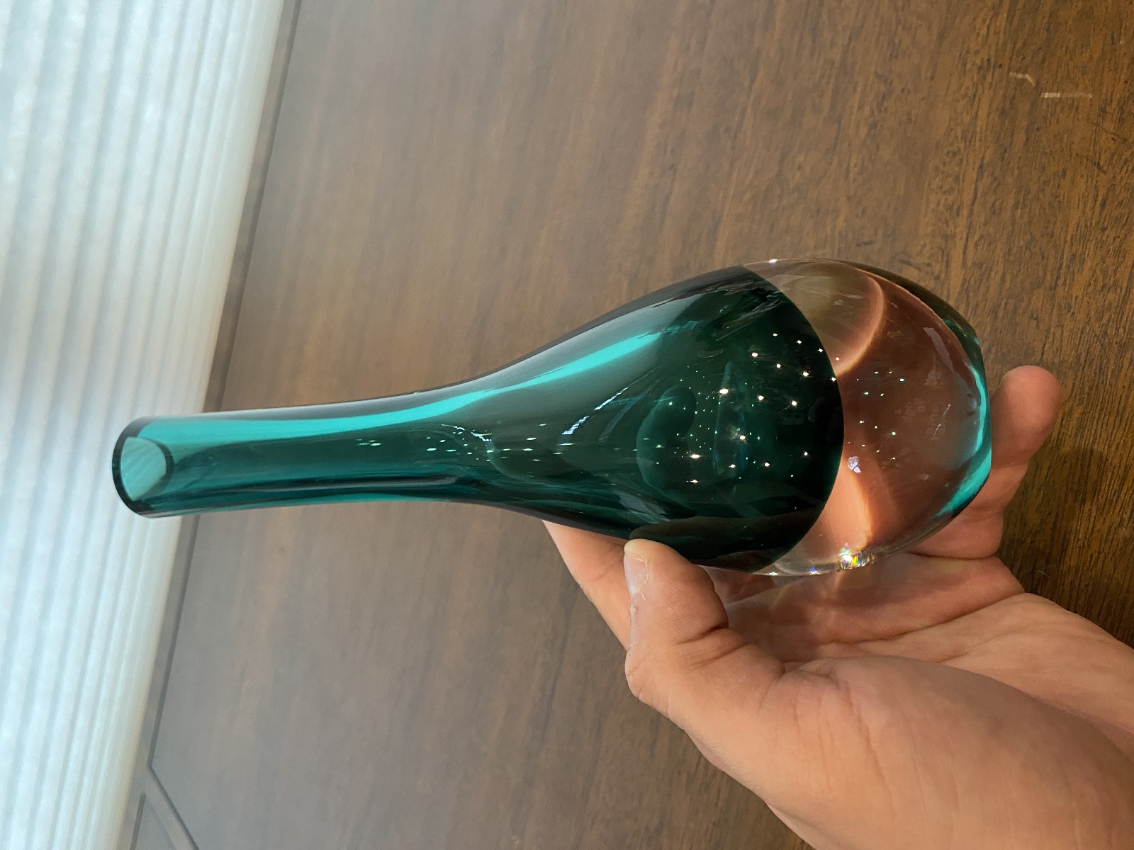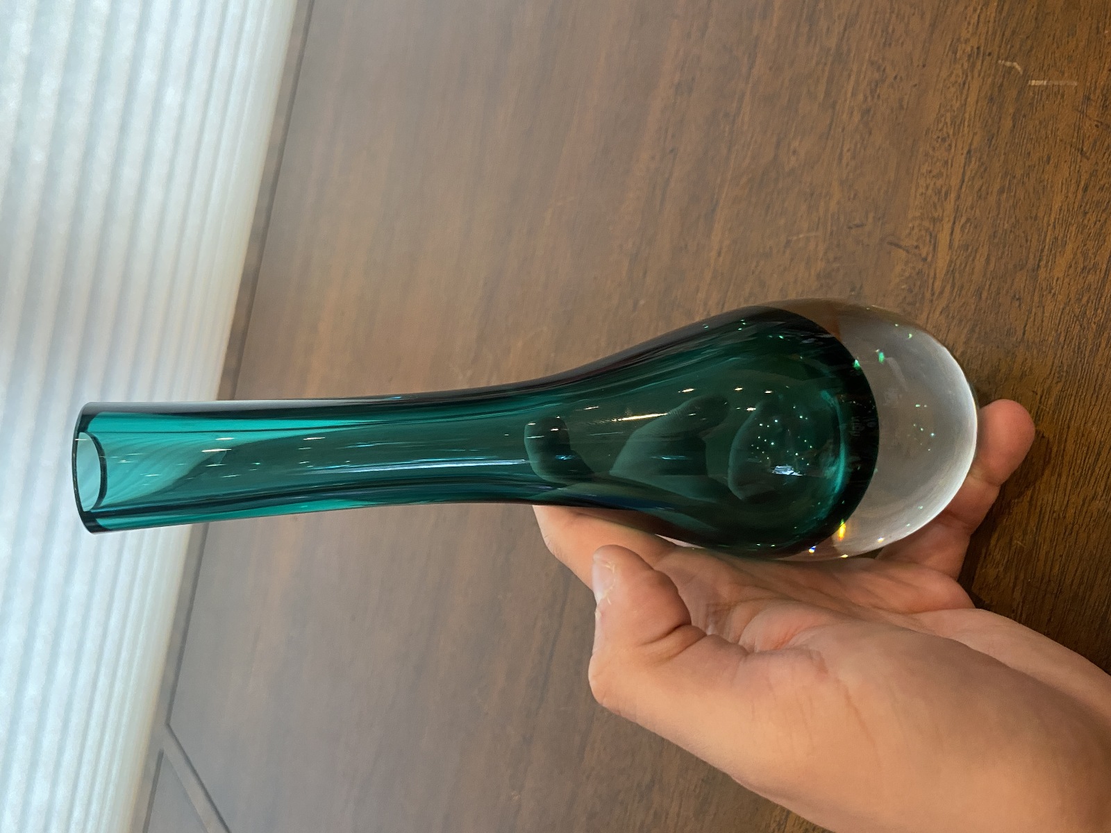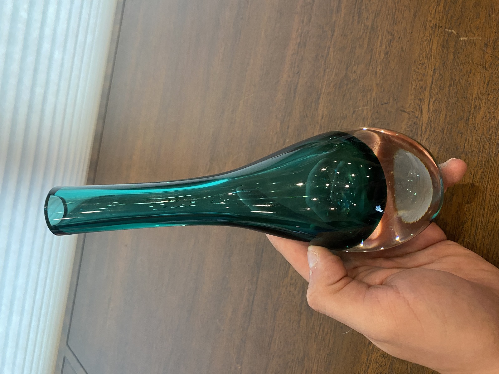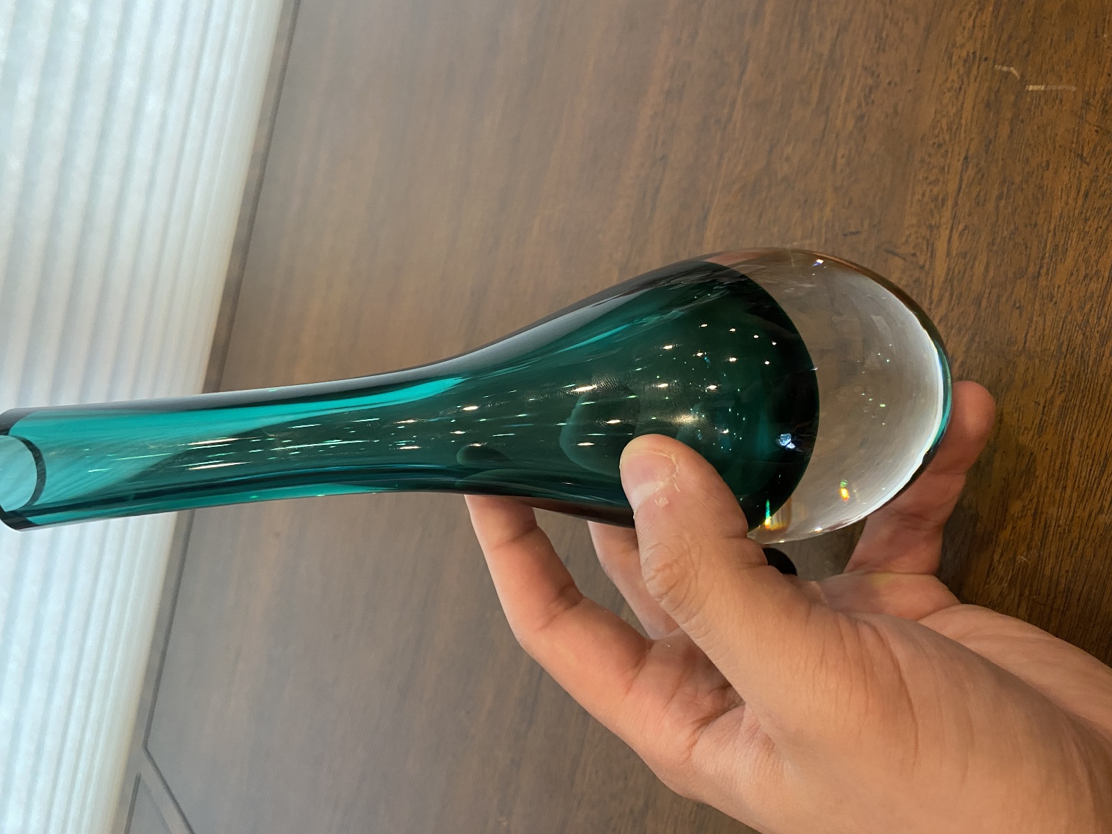 VTG Green Sommerso Tear Drop Style Art Glass Vase 9"H