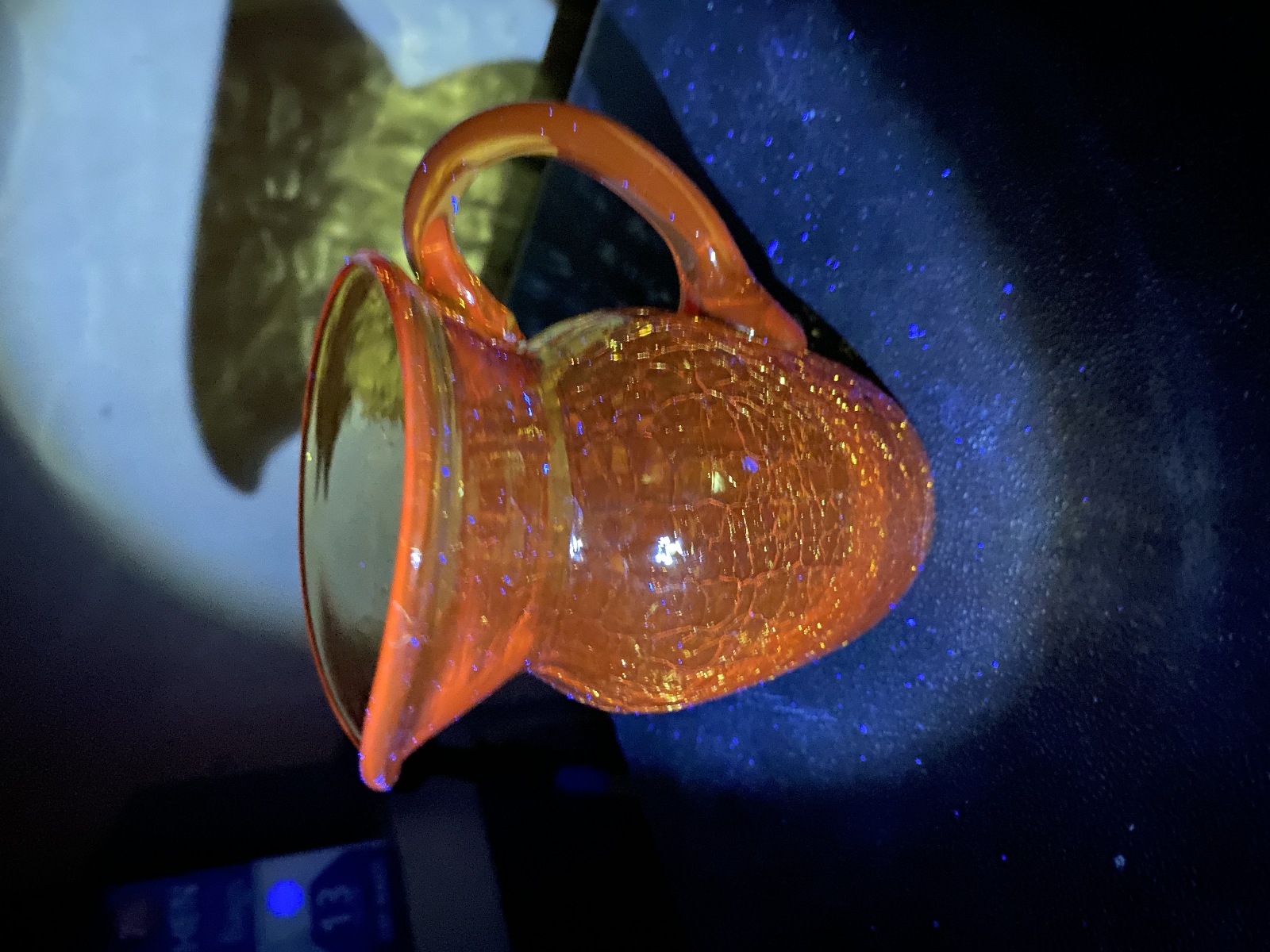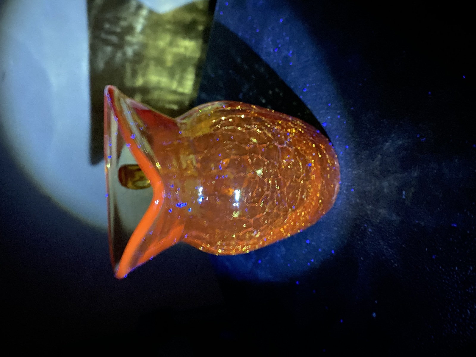 GLOWS ORANGE when exposed to UV light