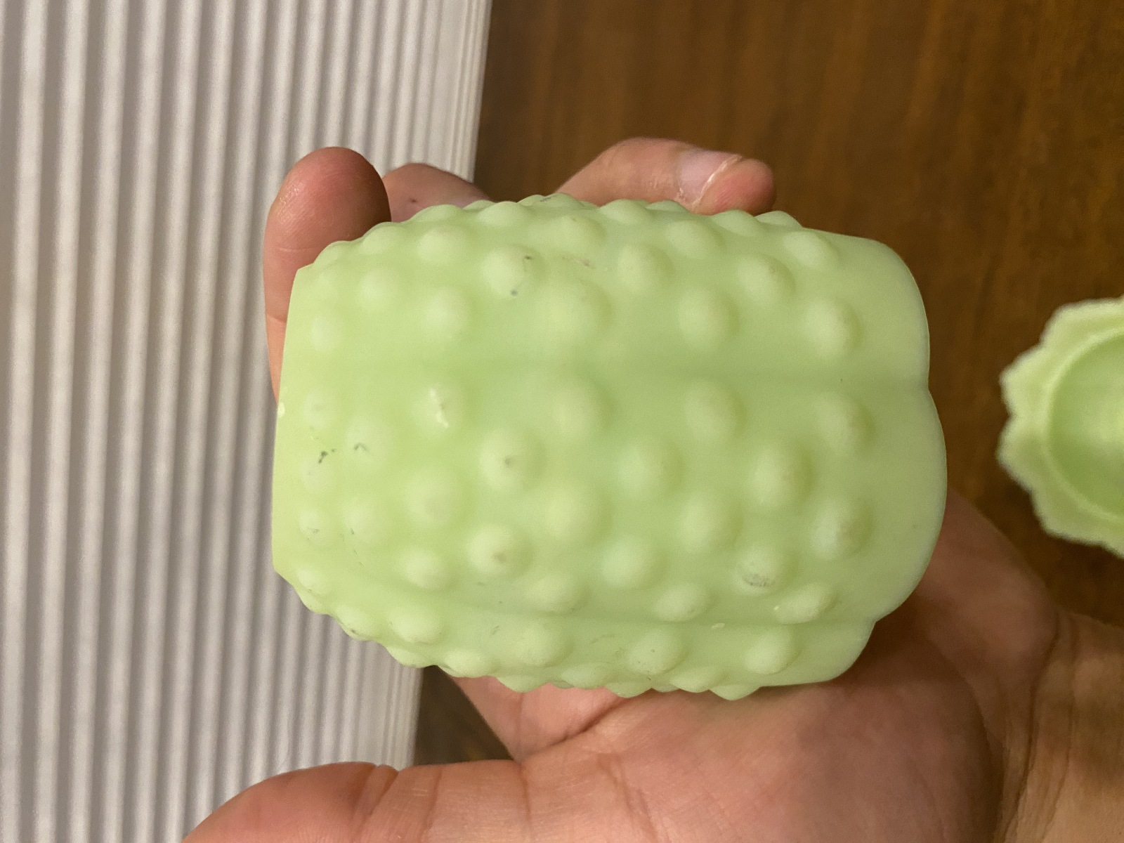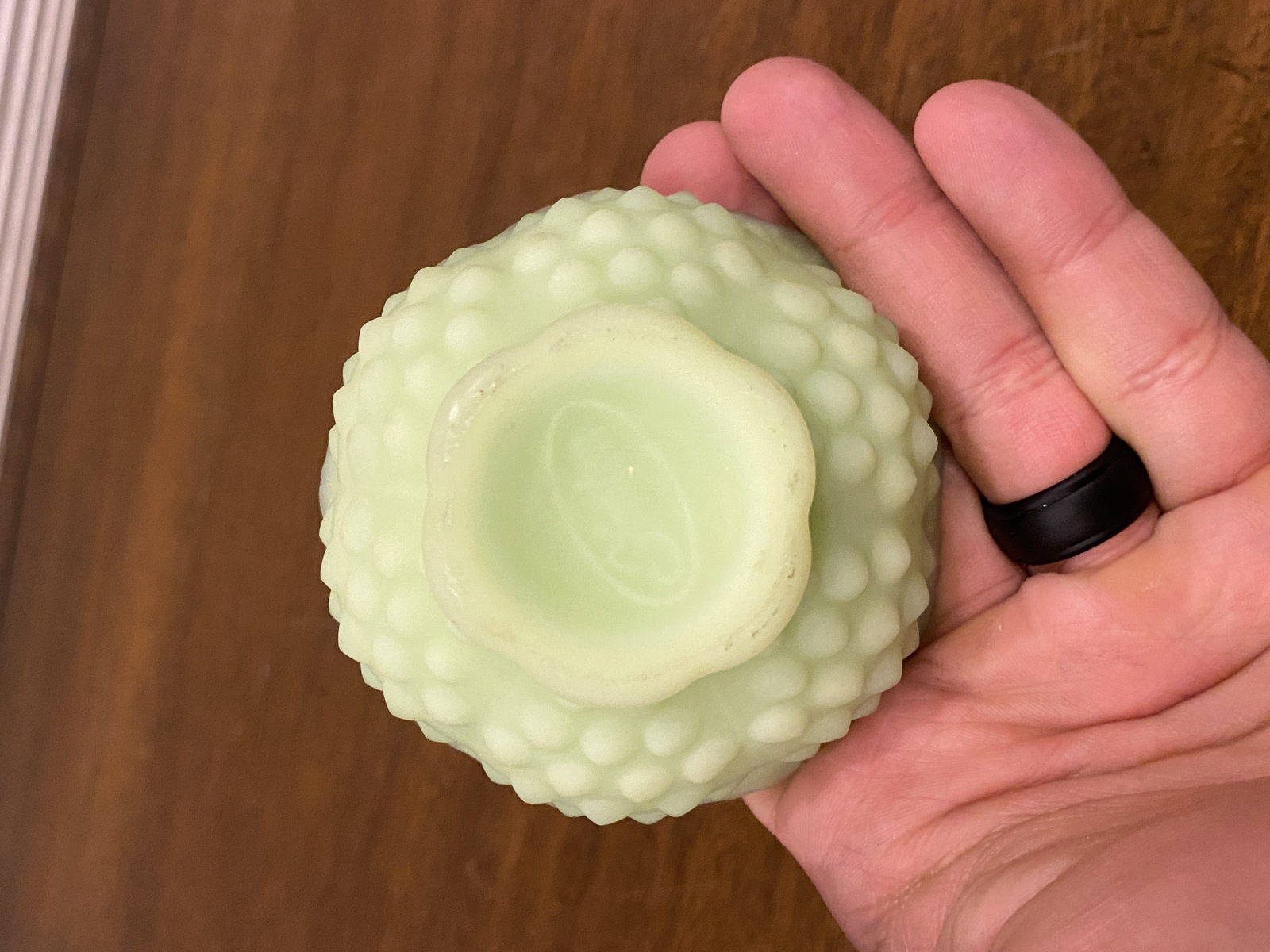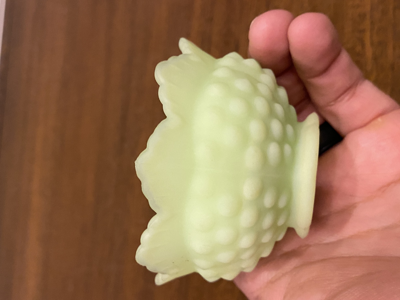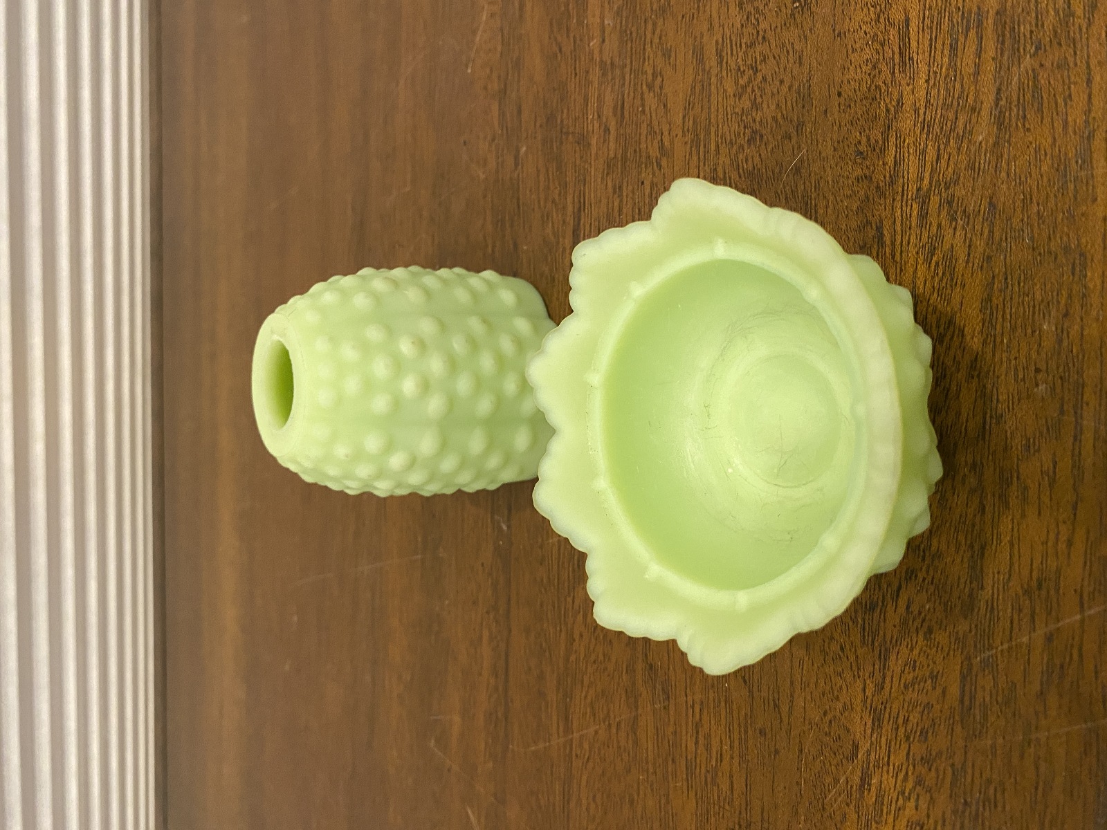 VINTAGE UV REACTIVE FENTON Lime Green Custard Glass Hobnail Fairy Lamp 4.5"H