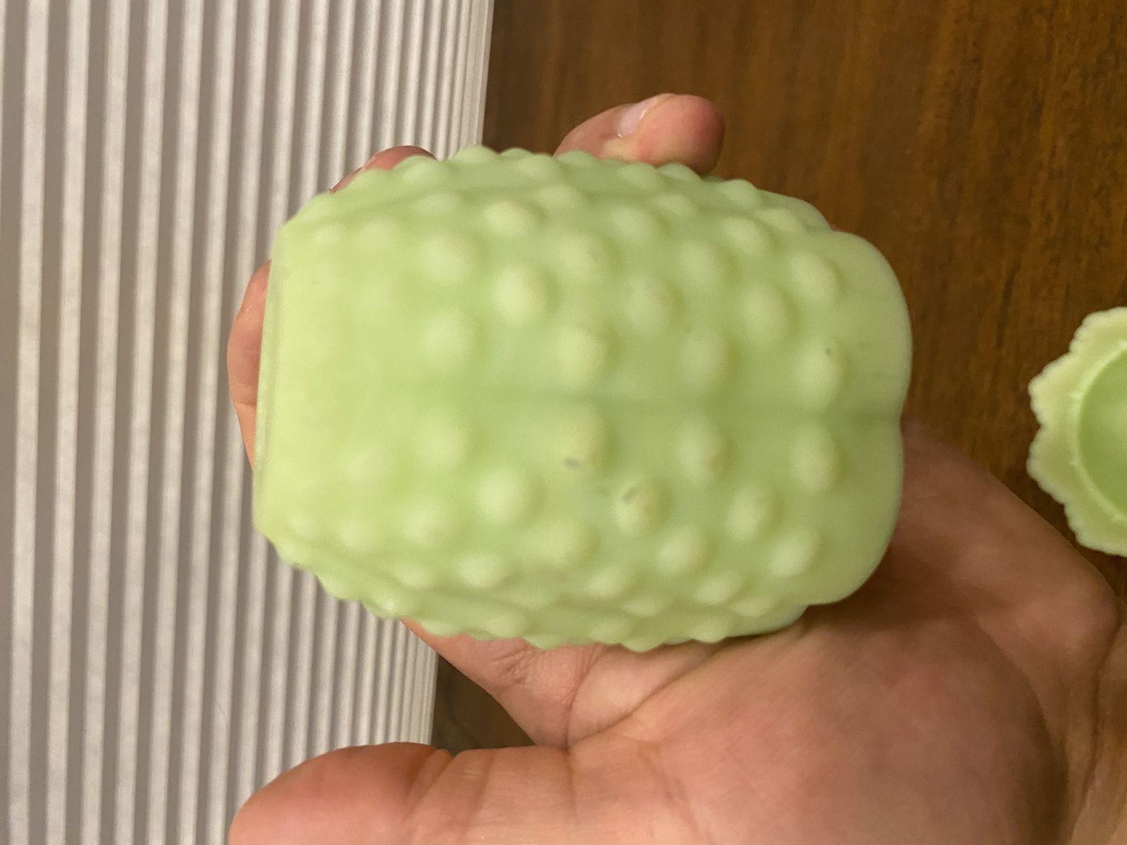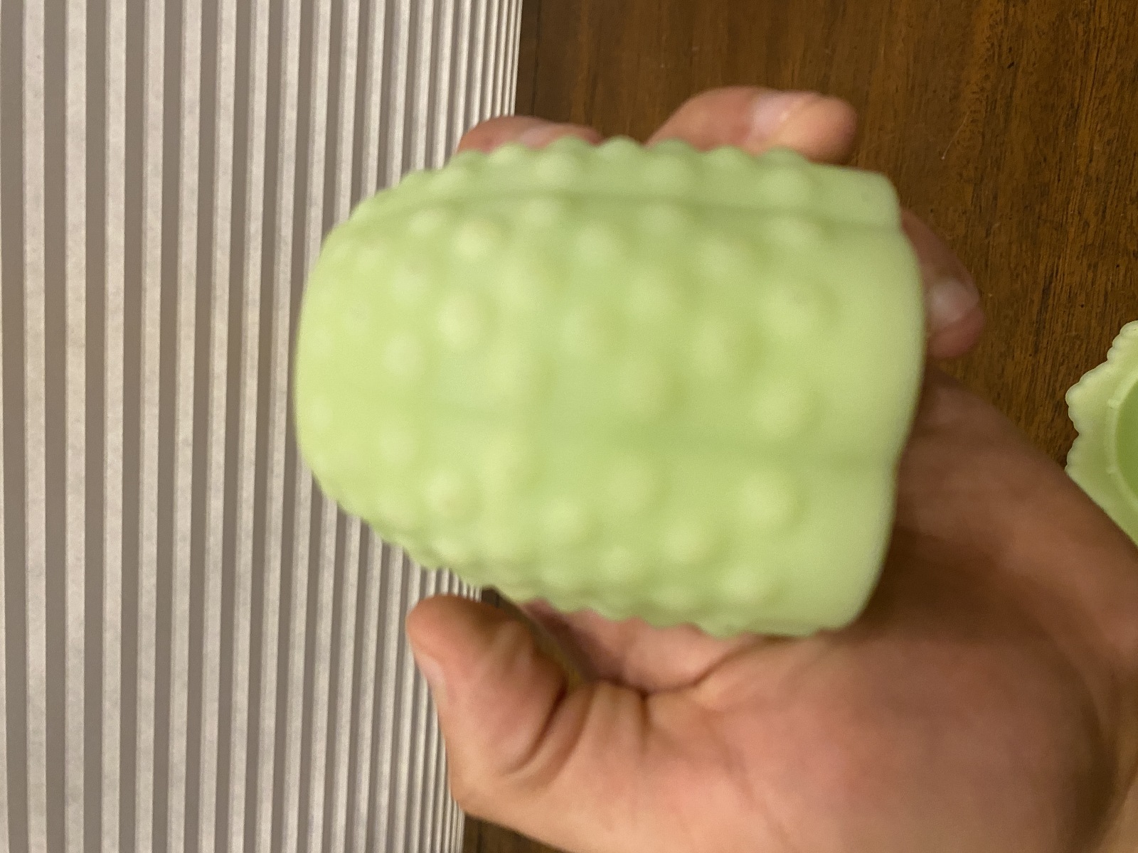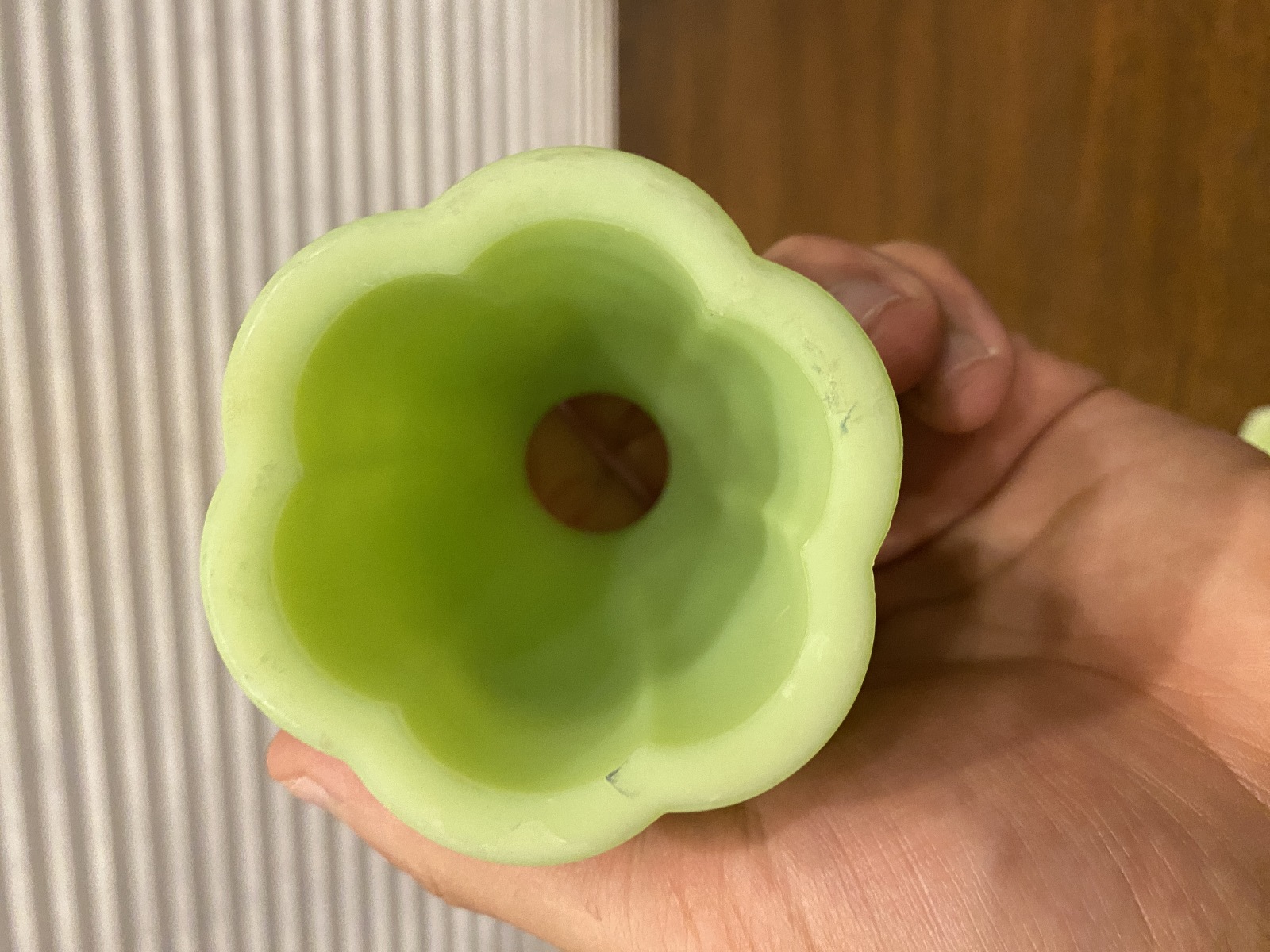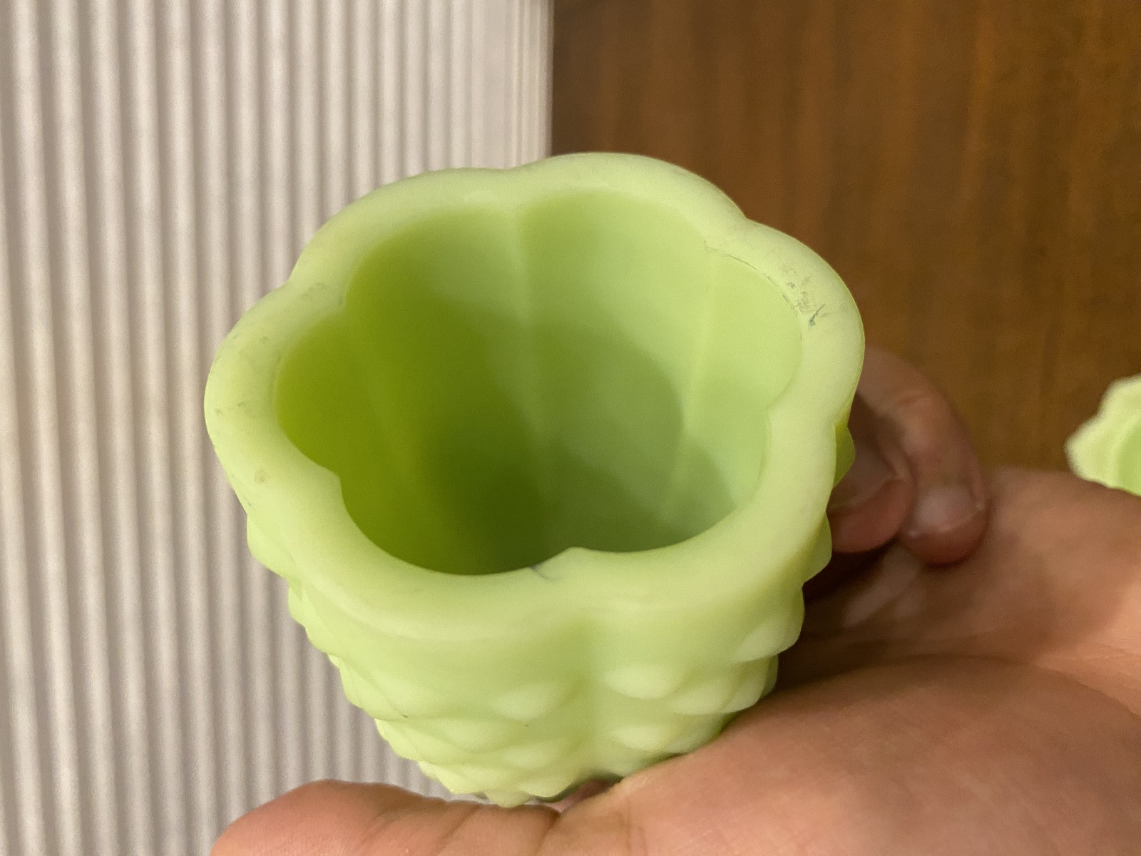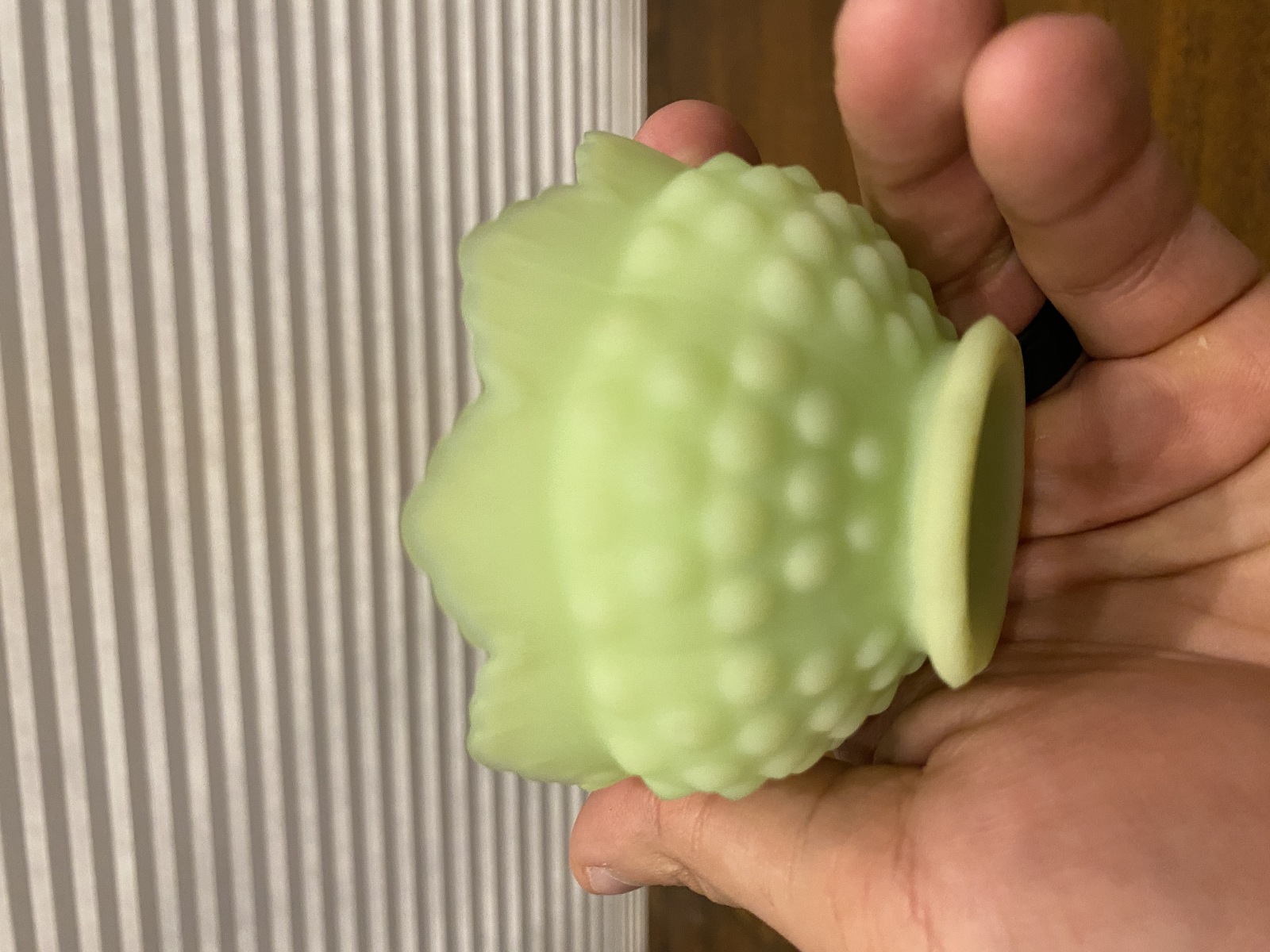 VINTAGE UV REACTIVE FENTON Lime Green Custard Glass Hobnail Fairy Lamp 4.5"H