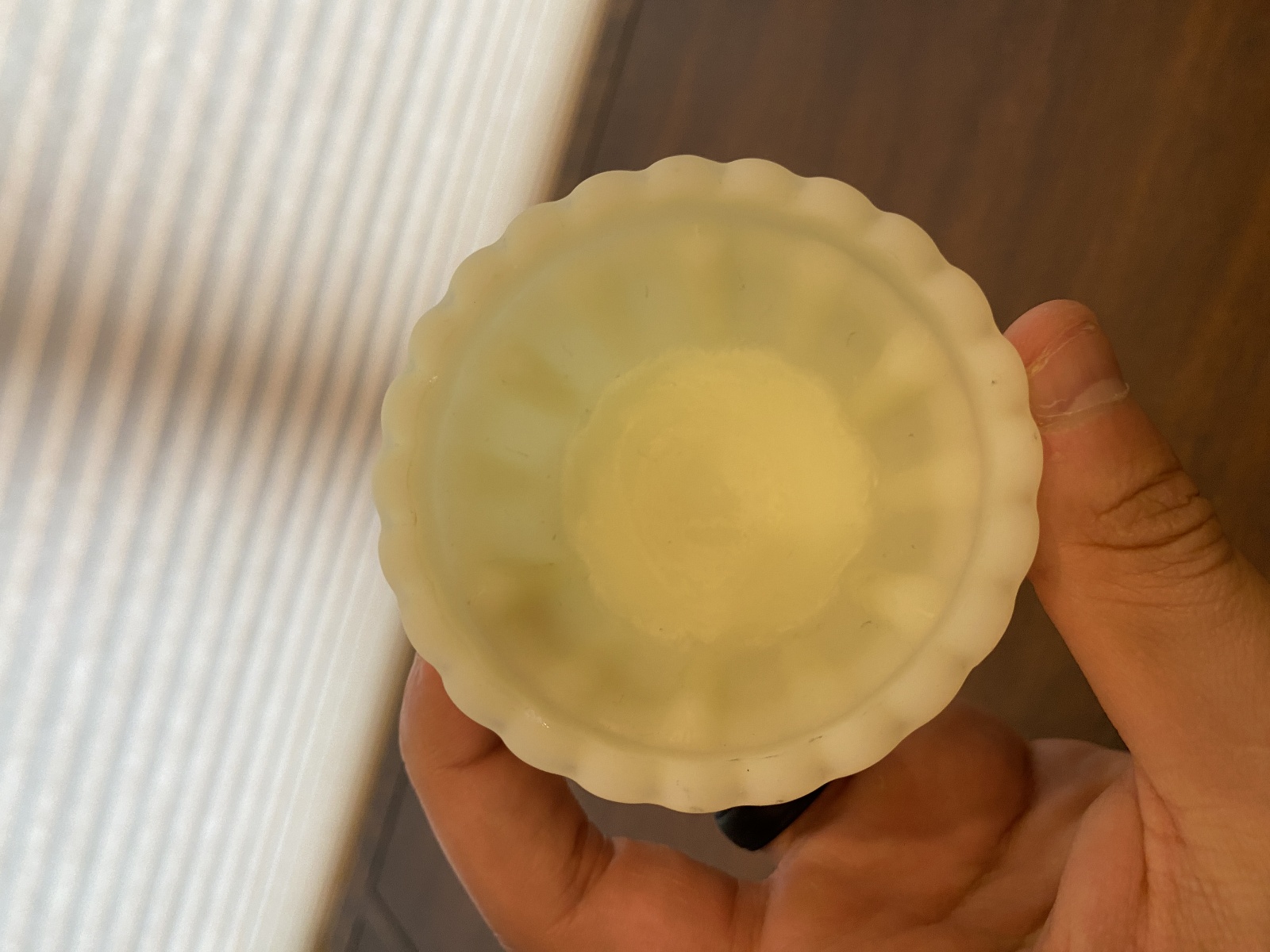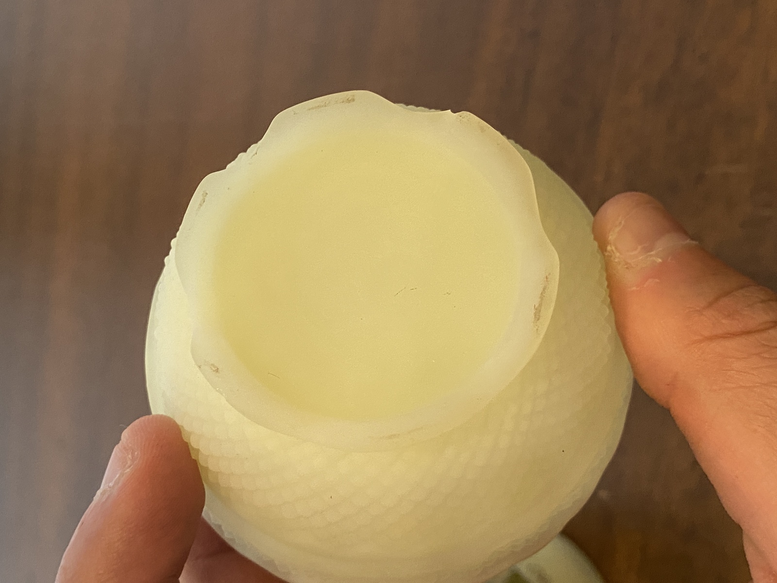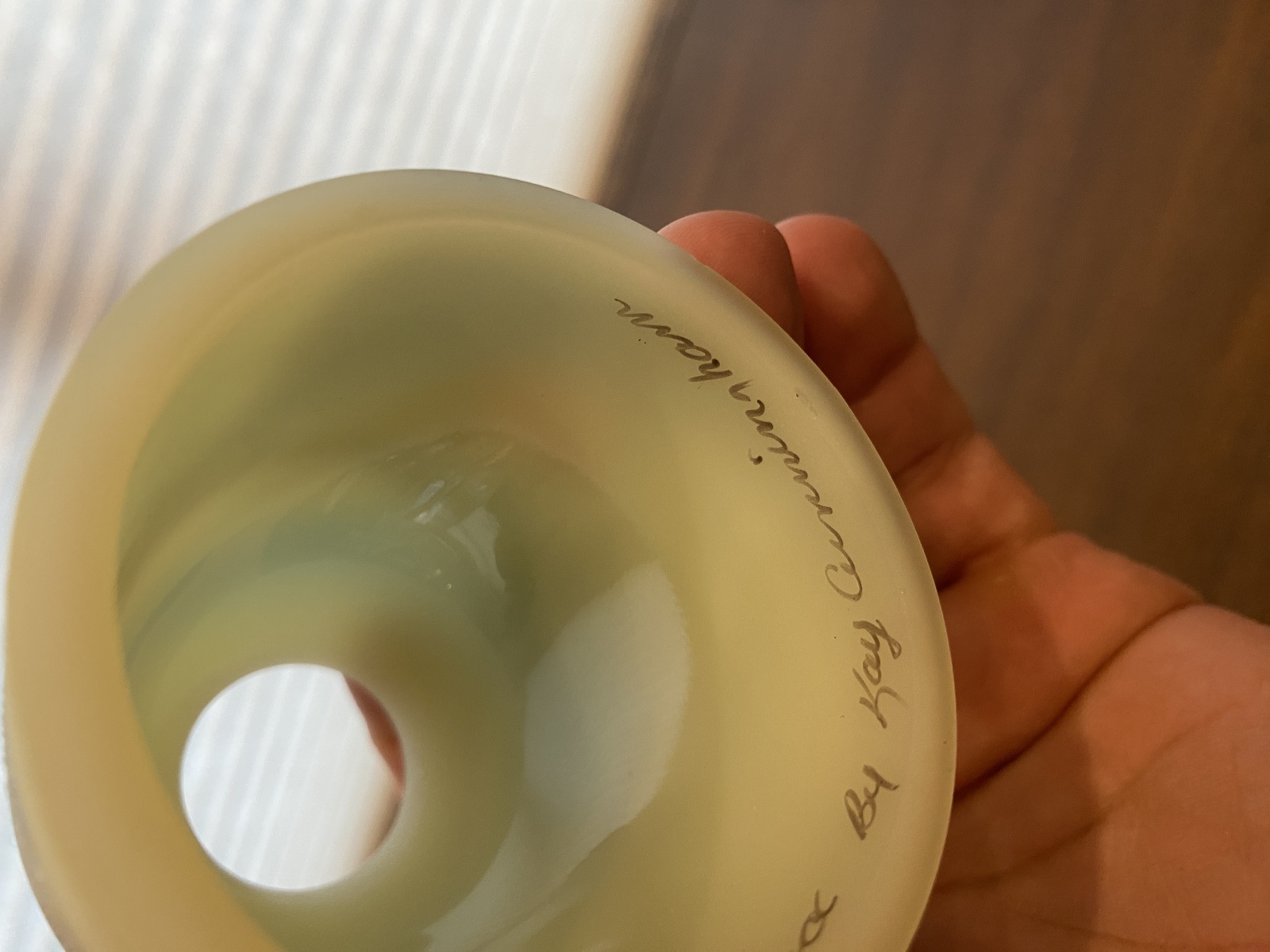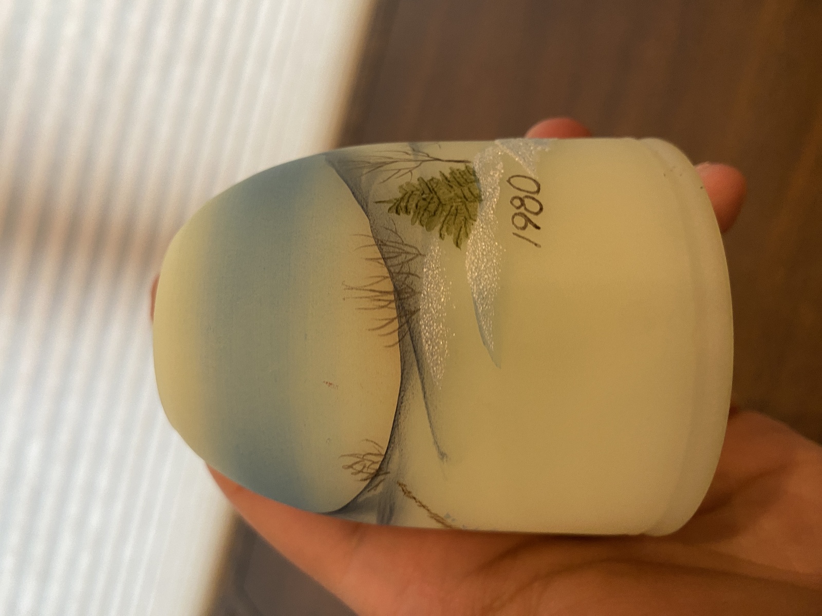GOOD/FAIR condition (There are some little chip marks on the base and on the lid of this piece and some scratching and some wear marks from its many years of love, noted in the photos, and the rim of the lid has some light bite marks around the rims (common for these pieces). But overall in good display shape). (Please refer back to the photos for condition and feel free to message me if you have any questions. Thank you) LOOKS BRIGHT GREEN WHEN EXPOSED TO 365NM FREQUENCY UV LIGHT(SHOWN IN THE PHOTOS)