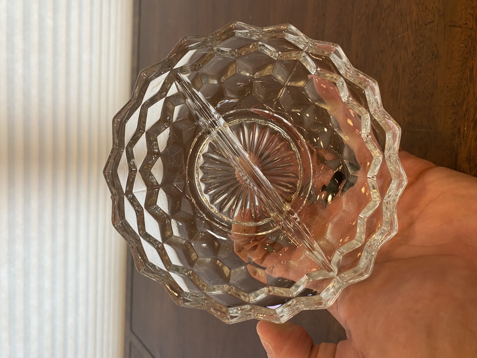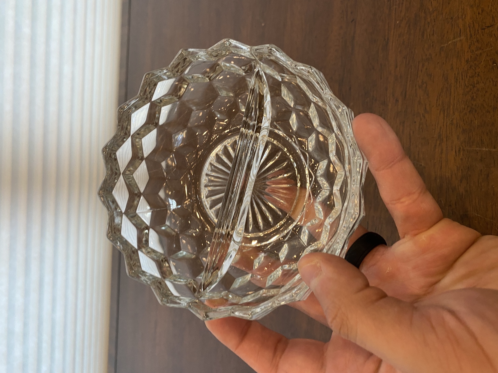VTG AMERICAN FOSTORIA Cubist Pattern 2-Part Mayo Bowl 5.25"W