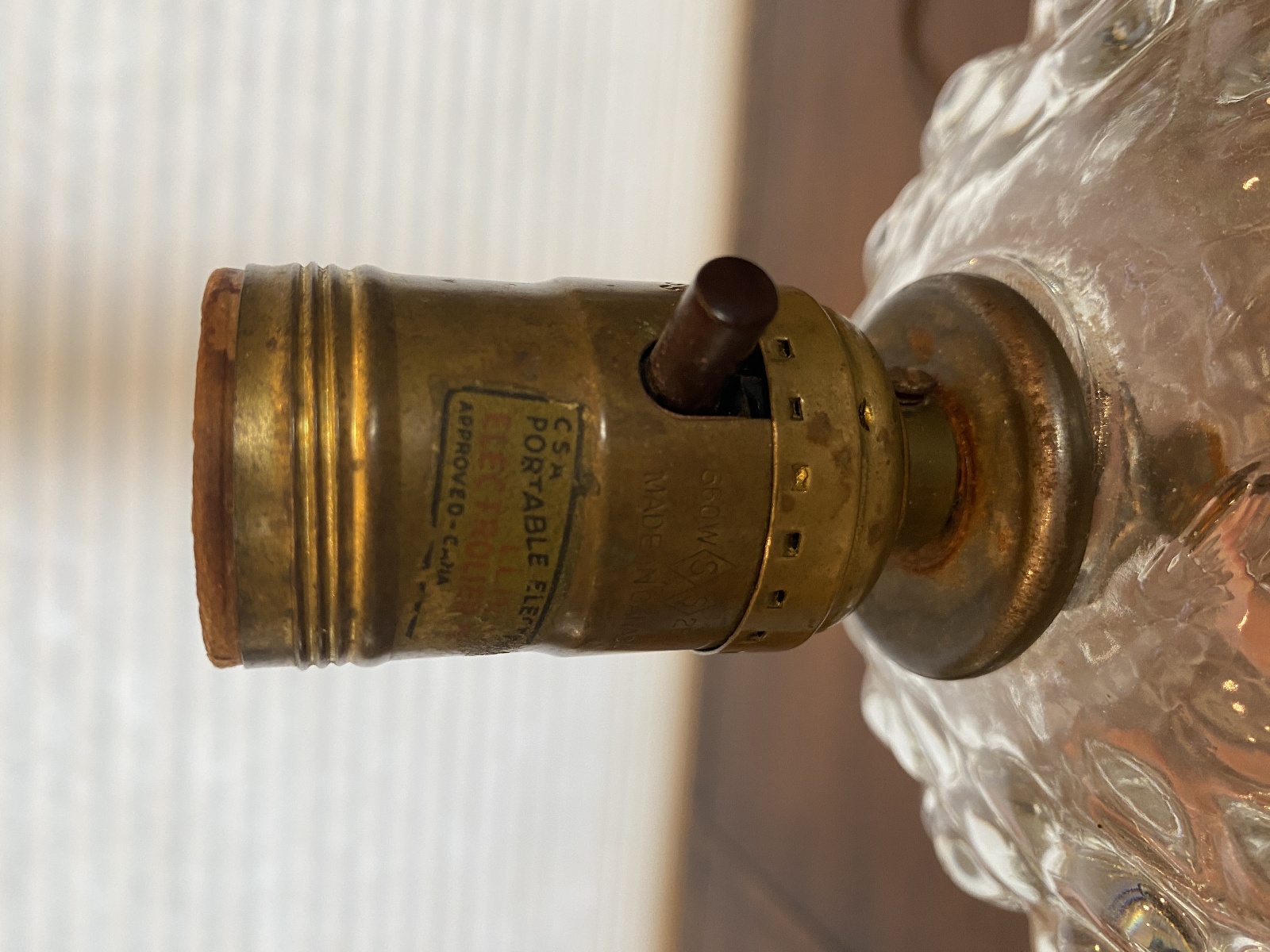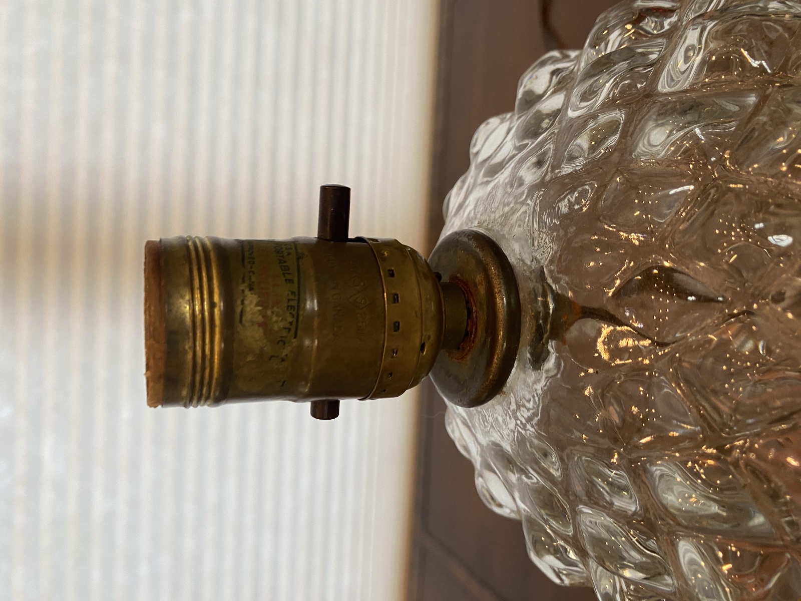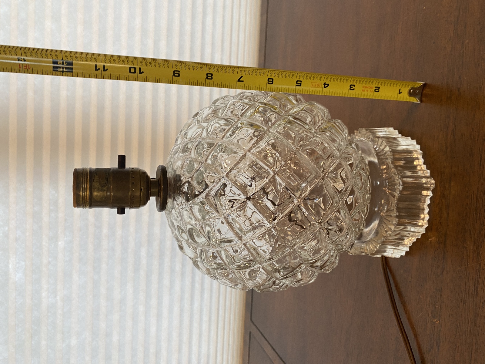 VTG Clear Diamond Quilted Glass Electric Lamp Base 11.75"H