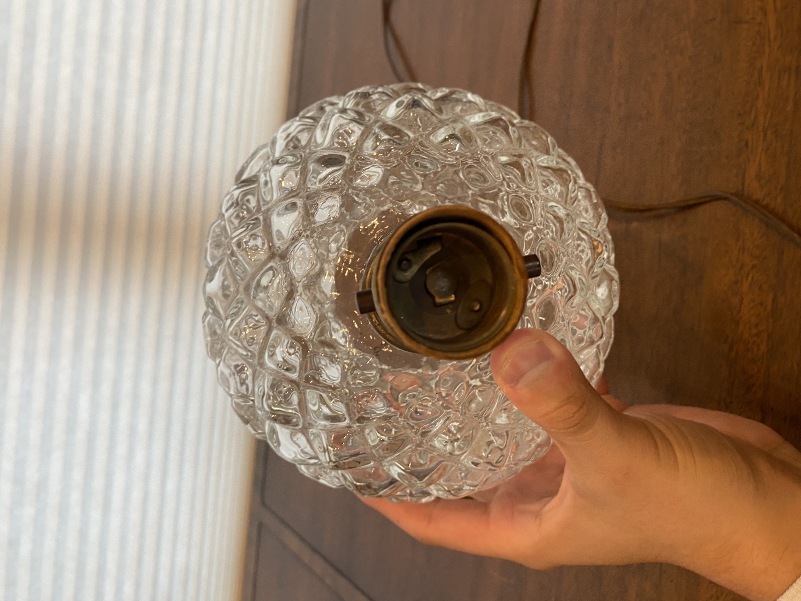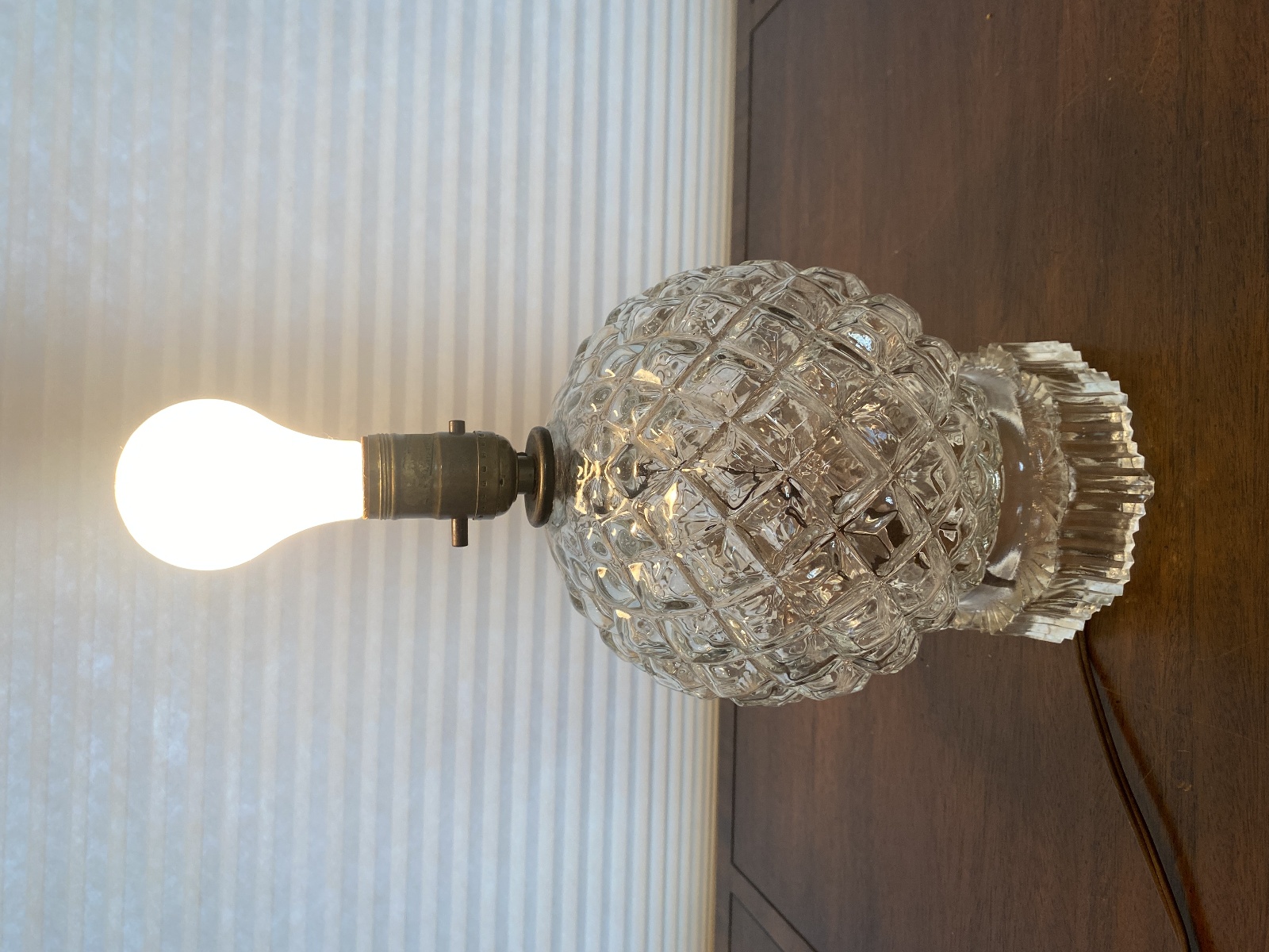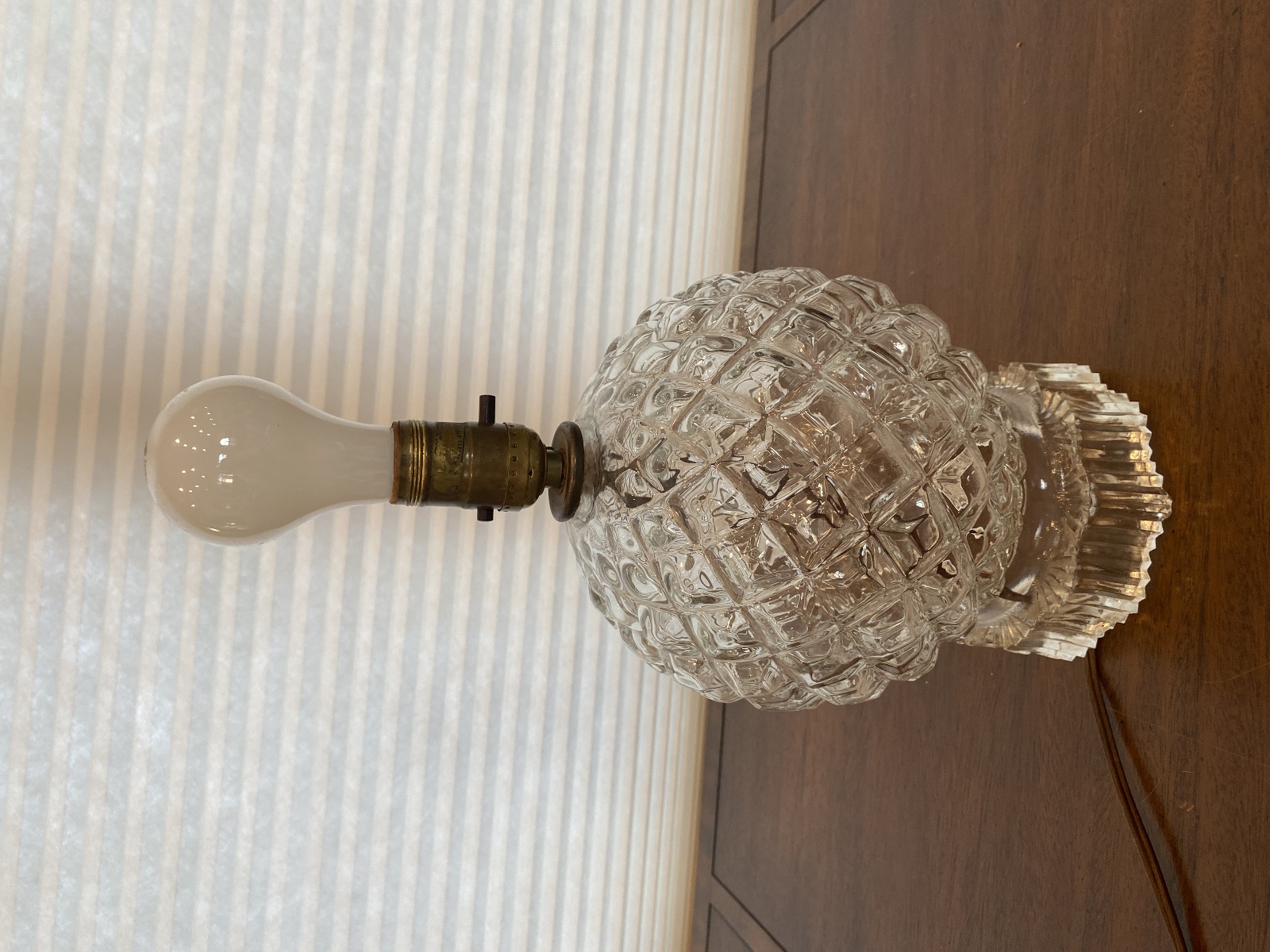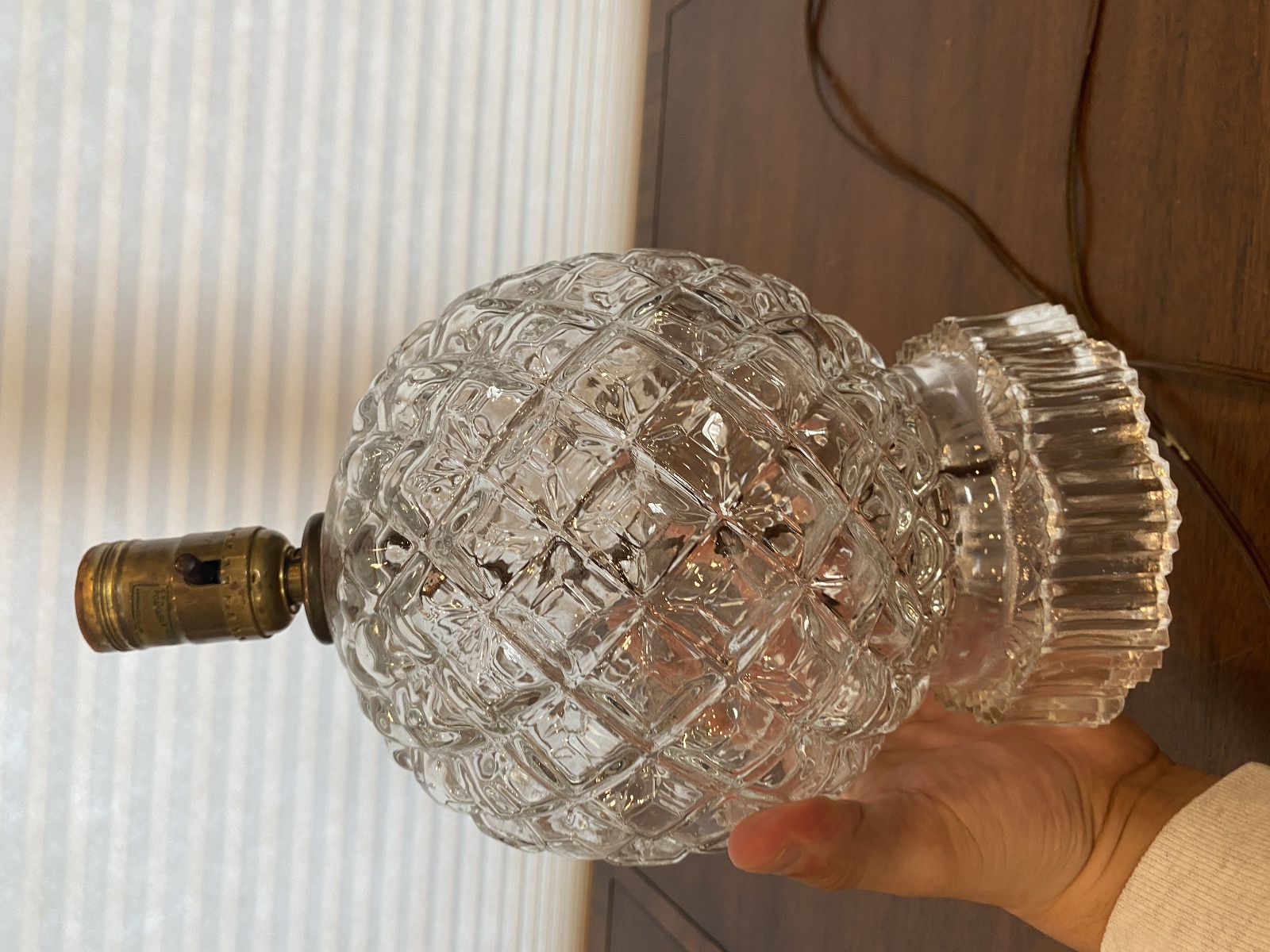 VTG Clear Diamond Quilted Glass Electric Lamp Base 11.75"H