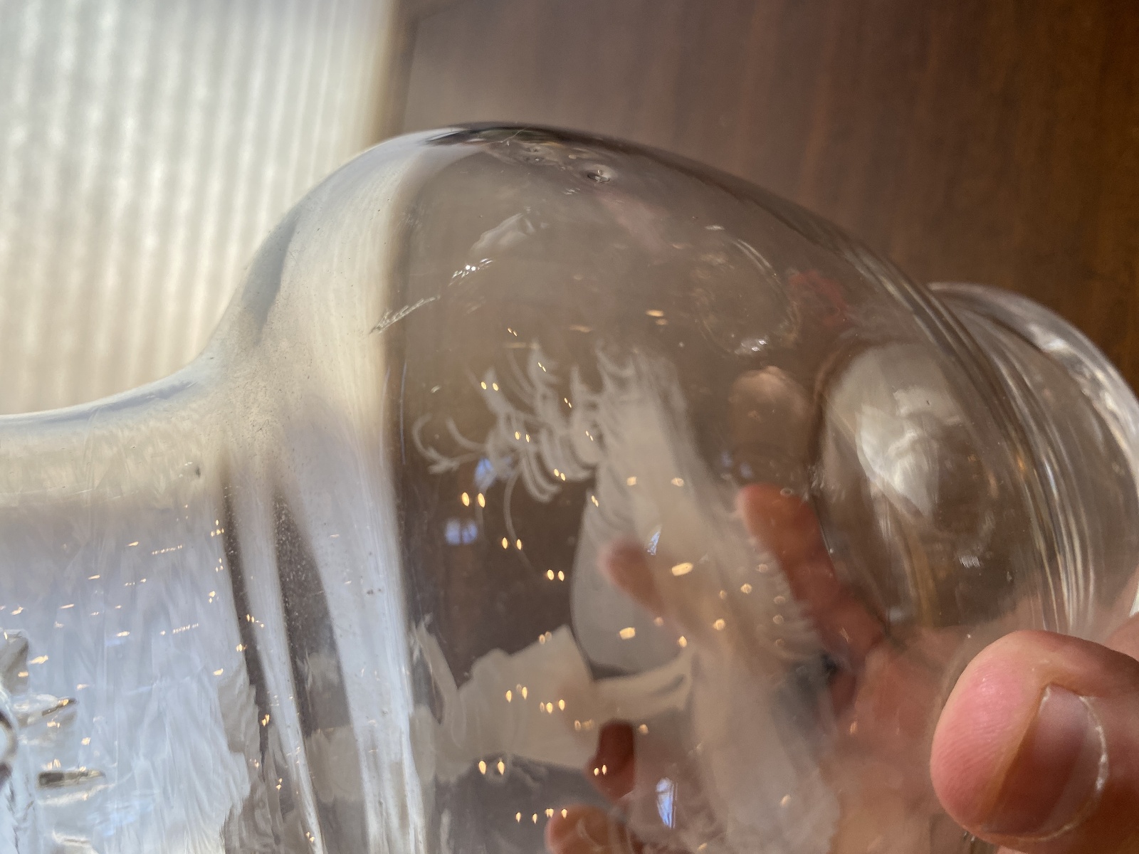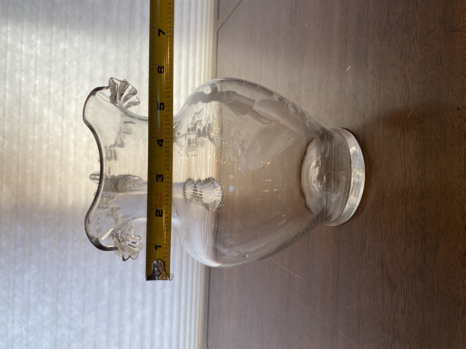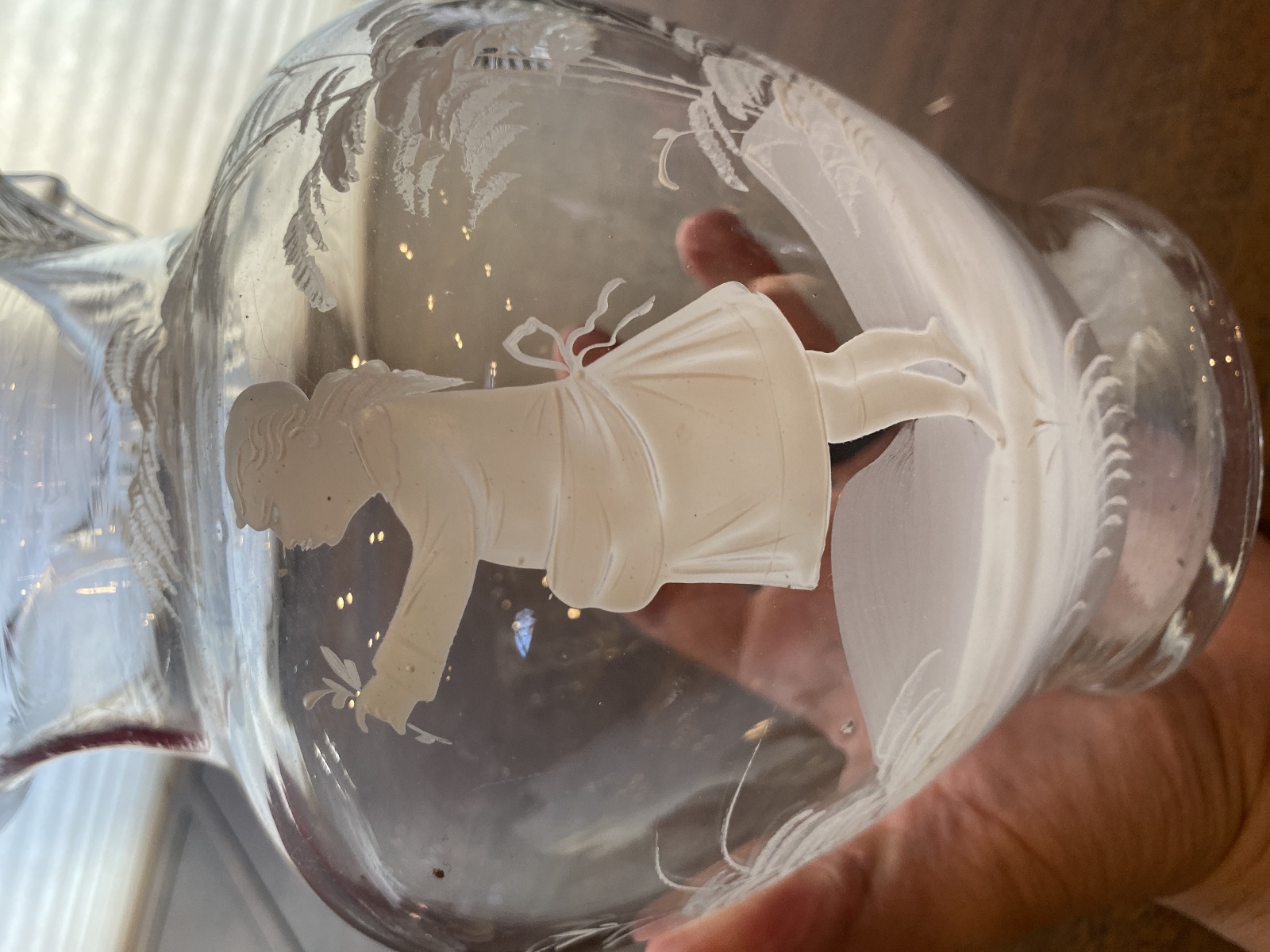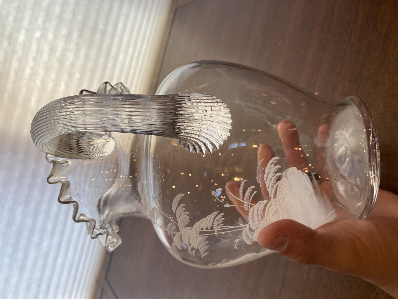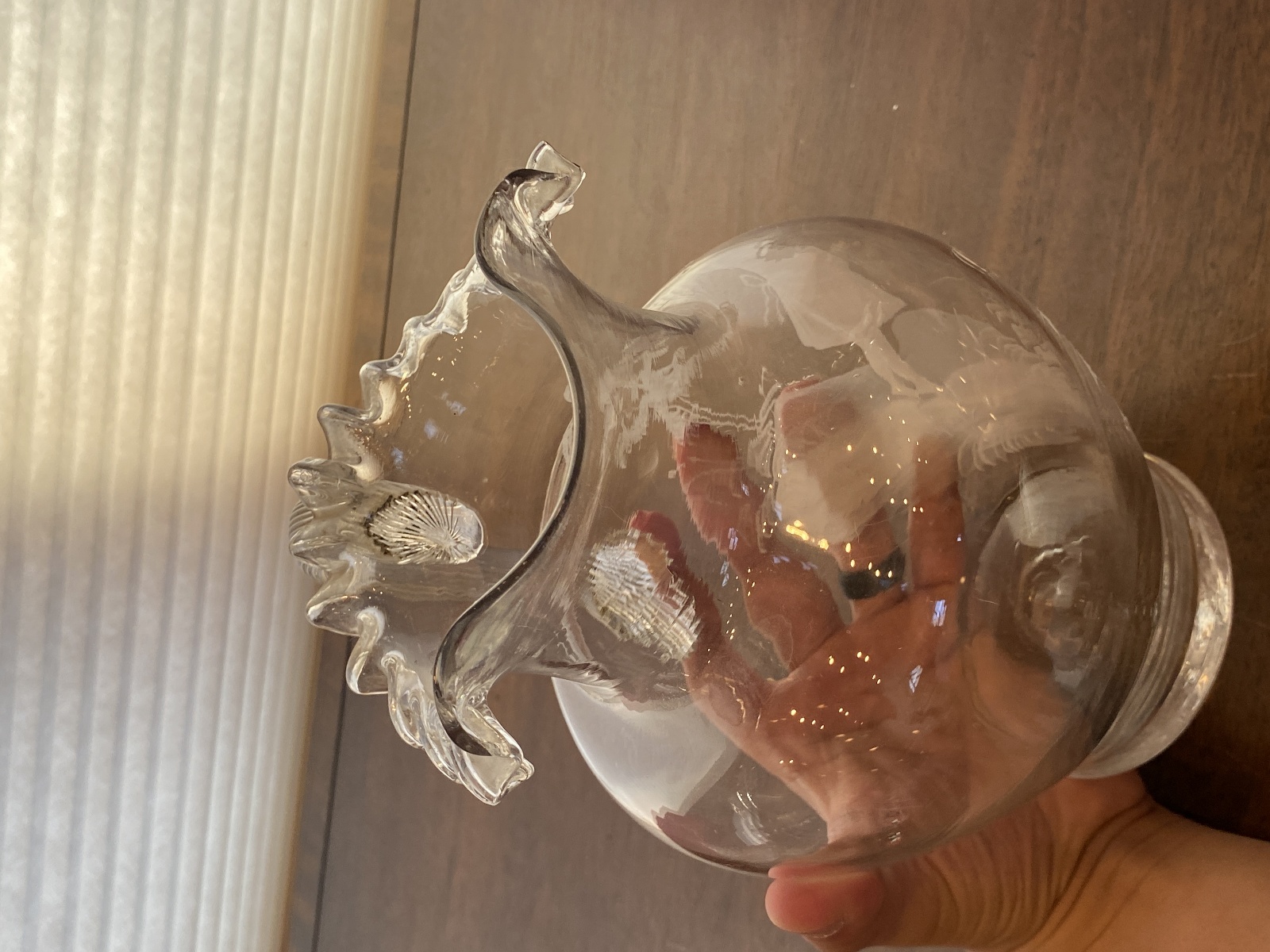 VTG Clear MARY GREGORY Nature Scene Glass Pitcher HAND PAINTED 9"H