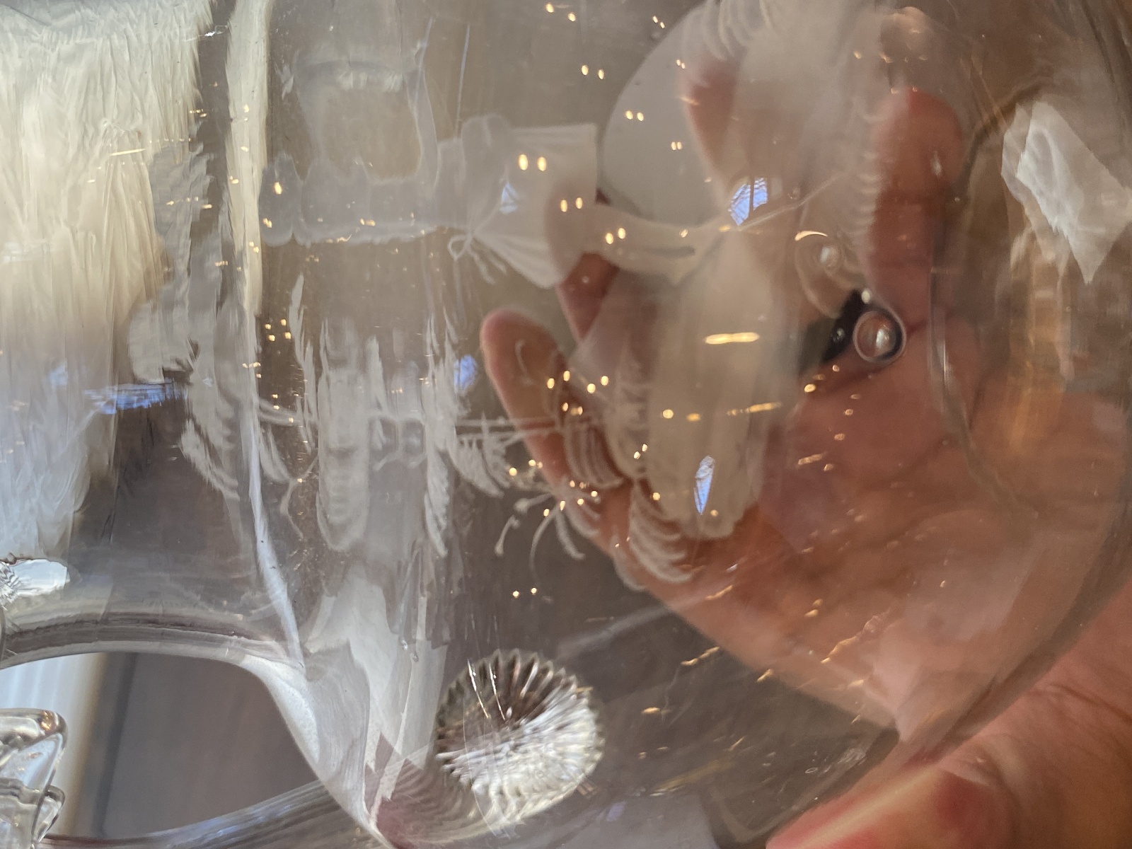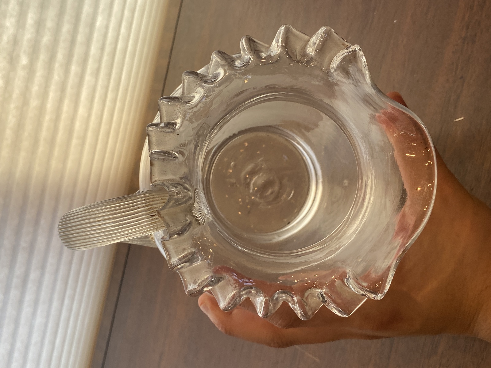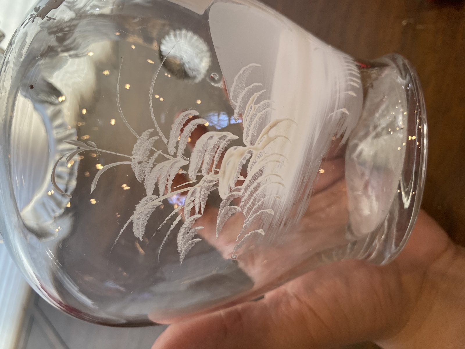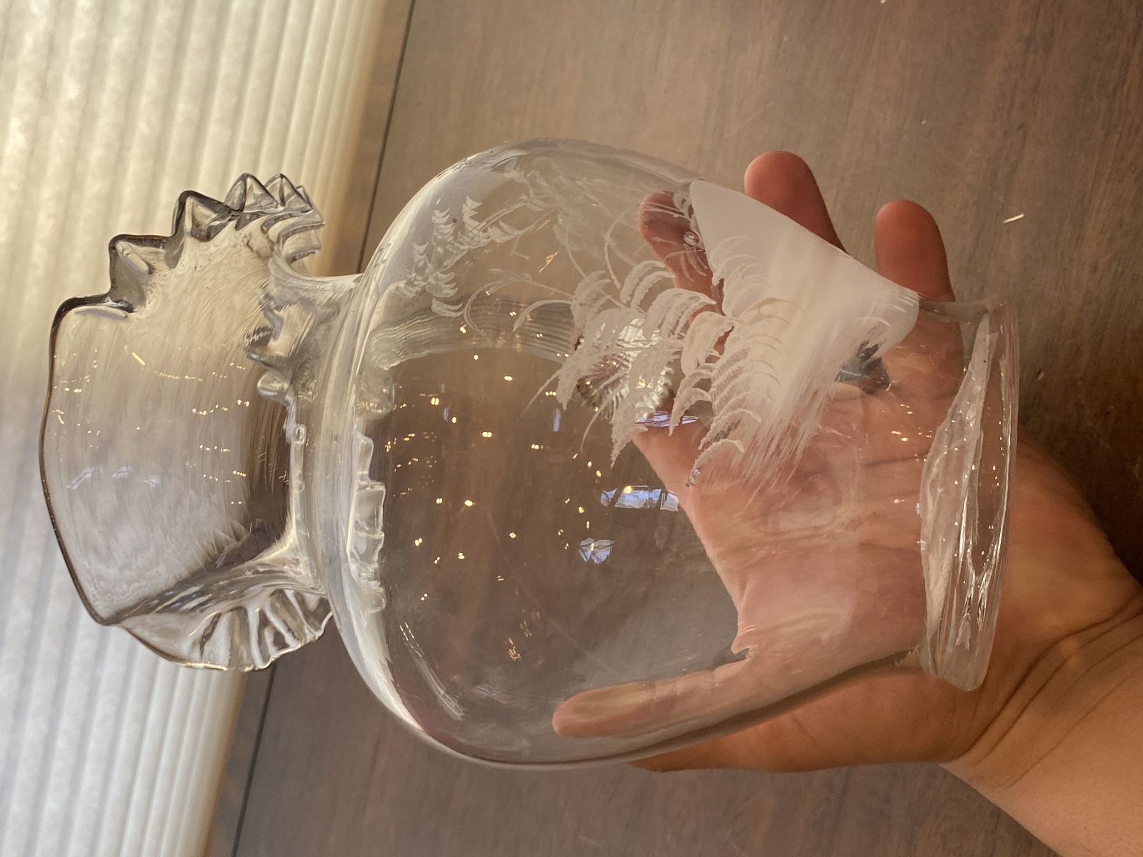 VTG Clear MARY GREGORY Nature Scene Glass Pitcher HAND PAINTED 9"H