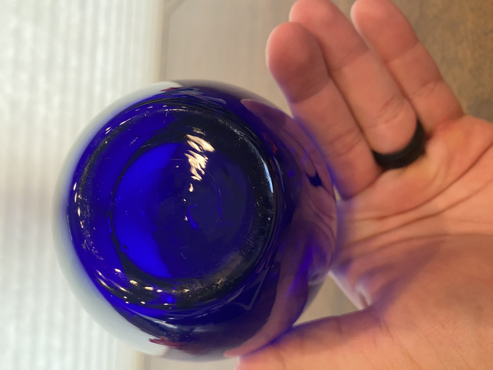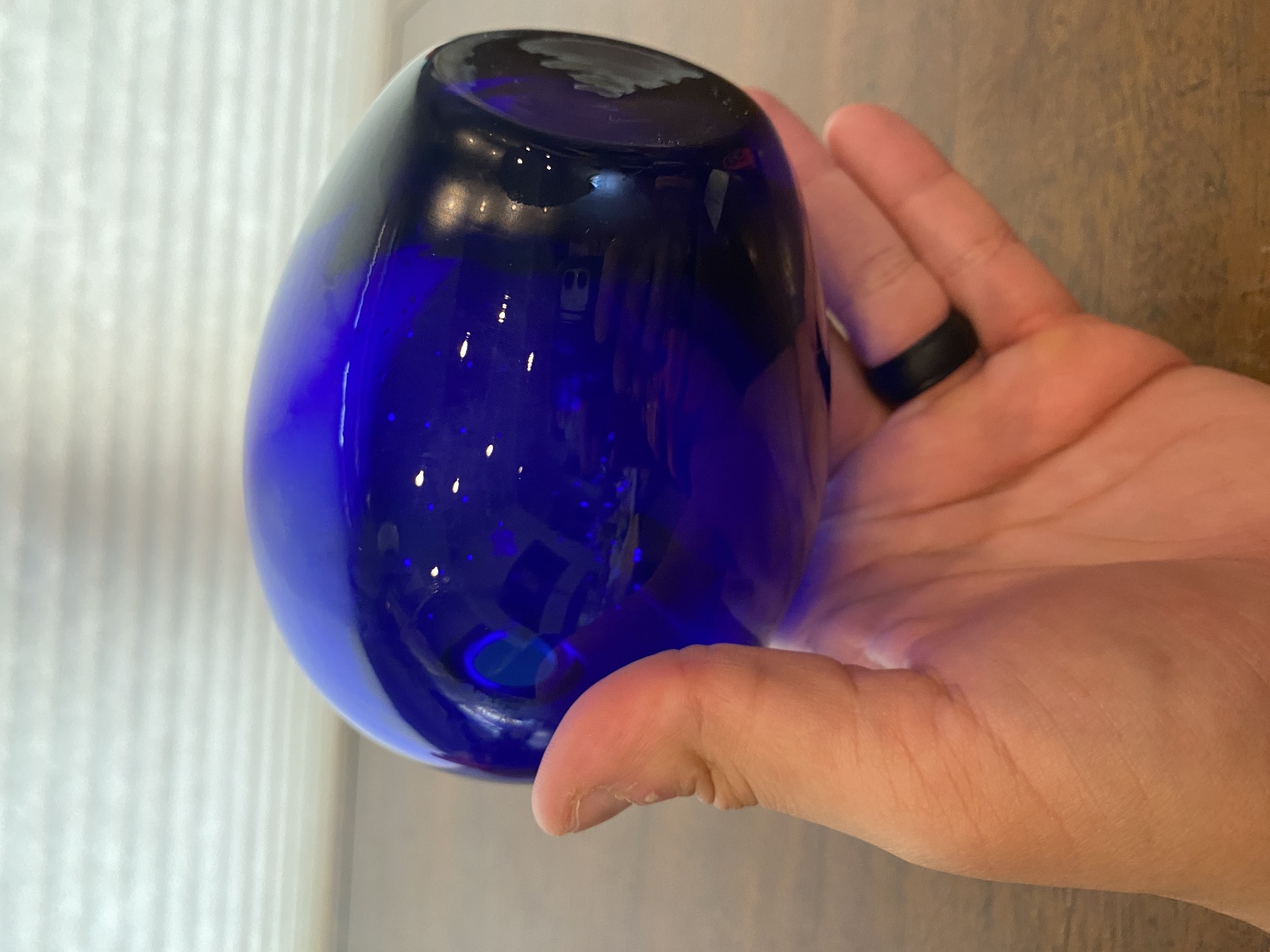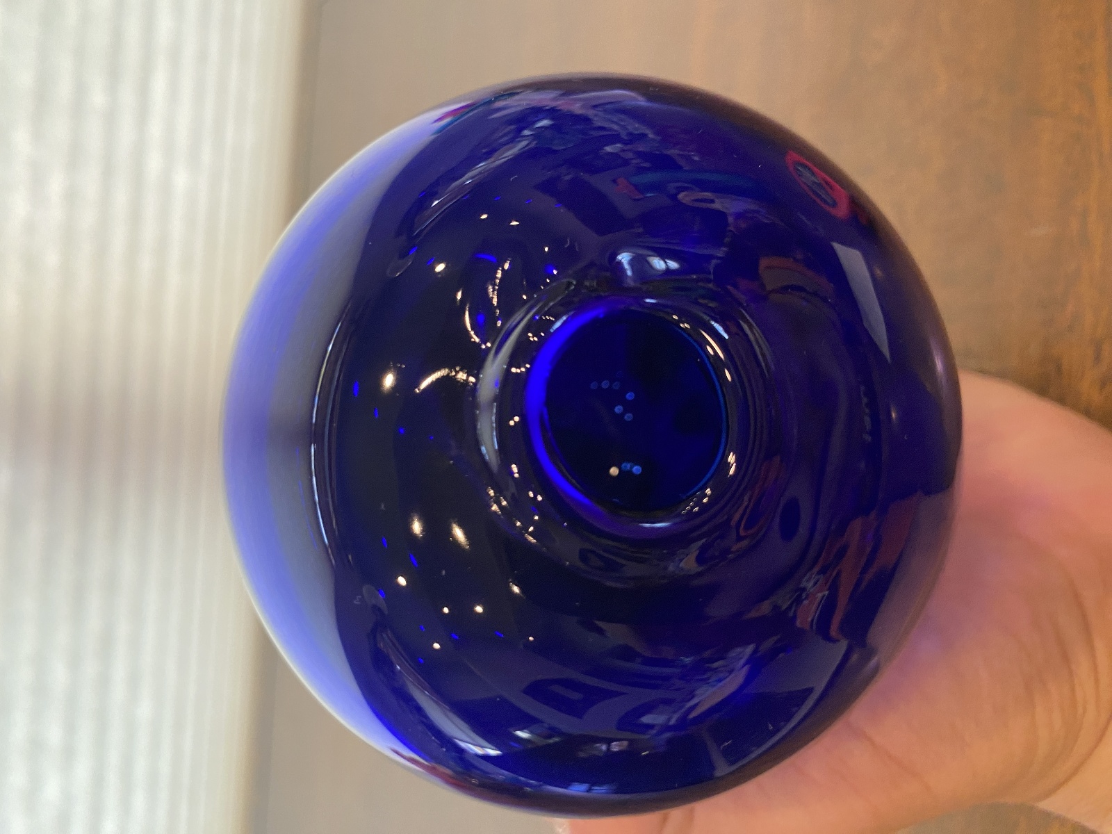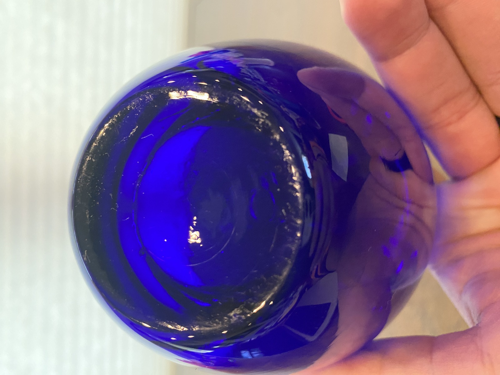 VTG Cobalt Blue Hand Blown Art Glass Vase 5.5"H