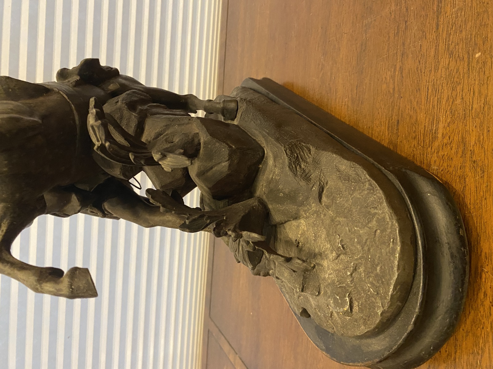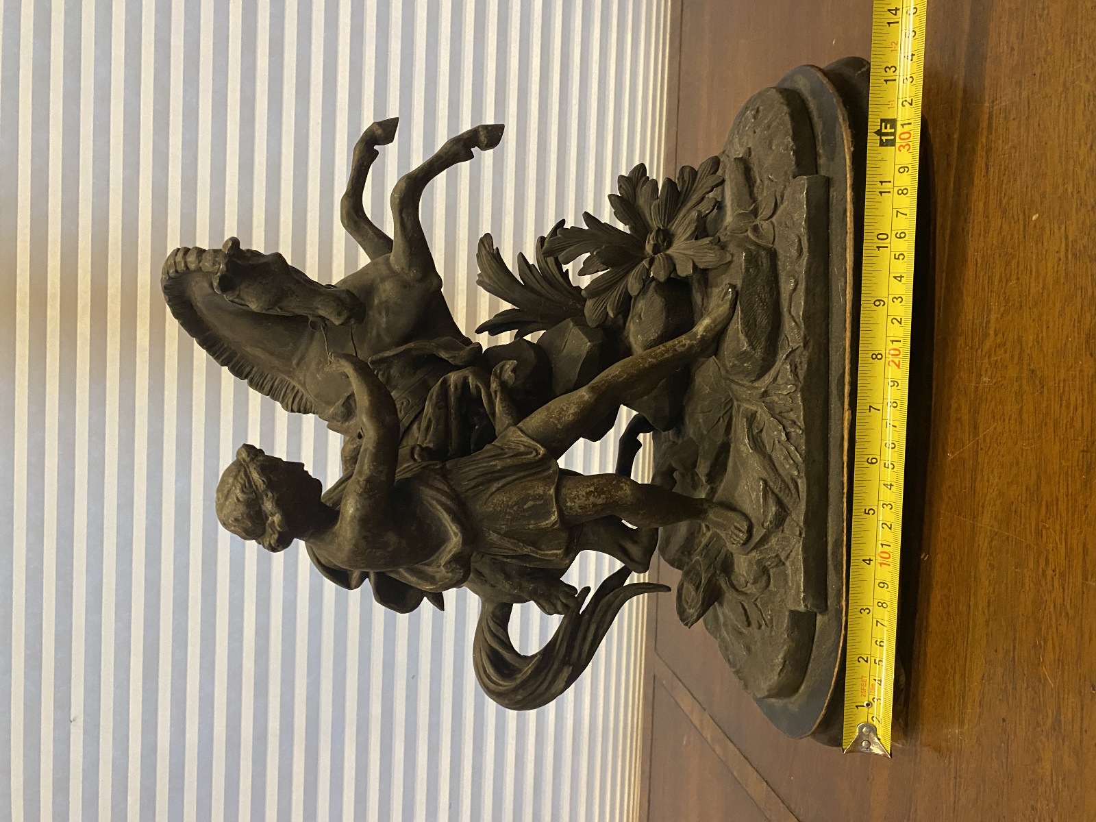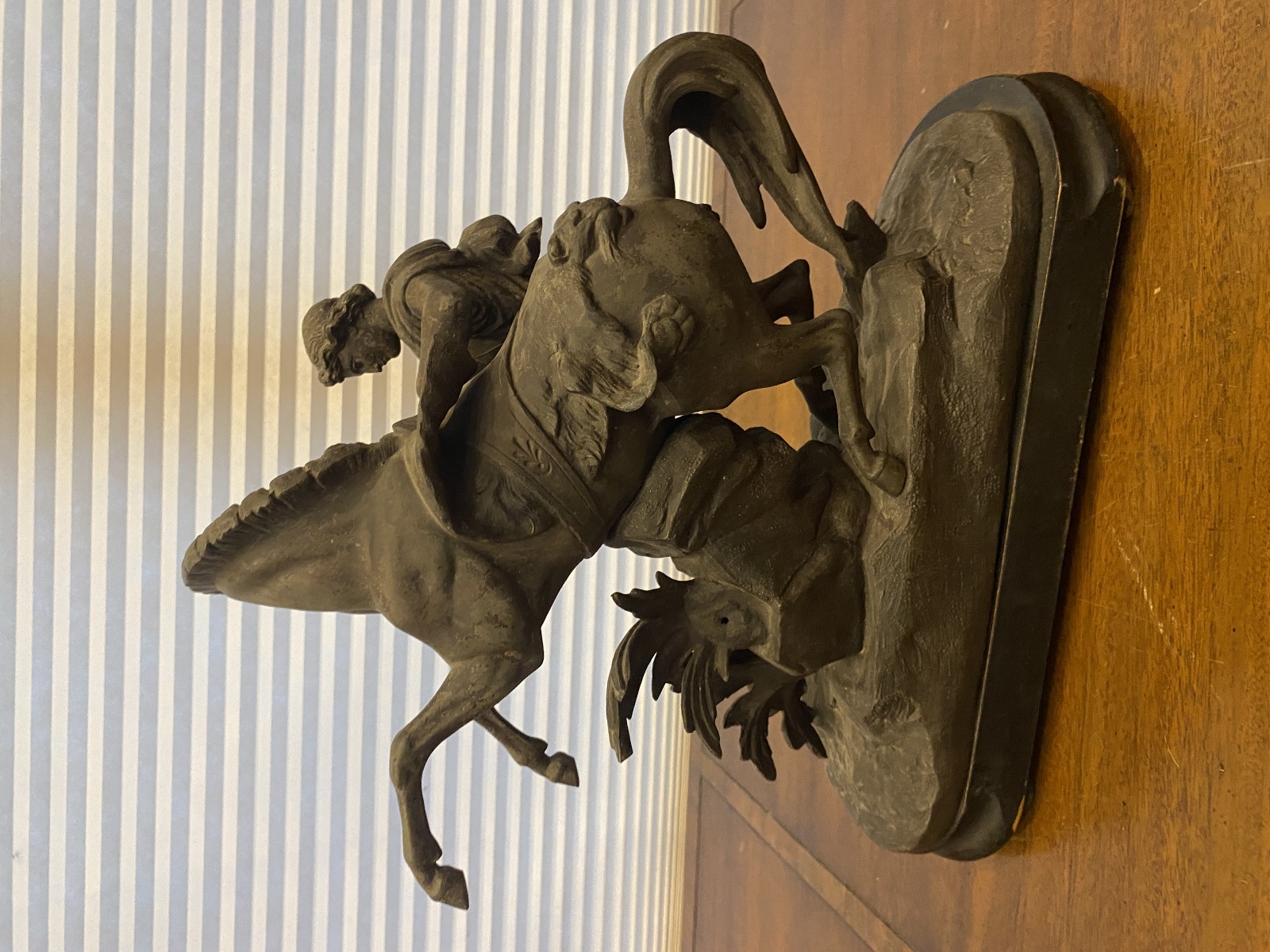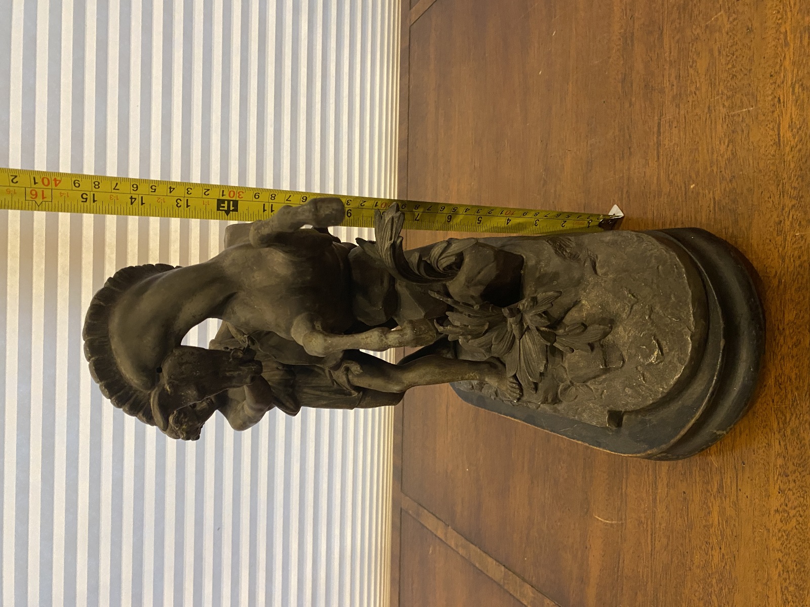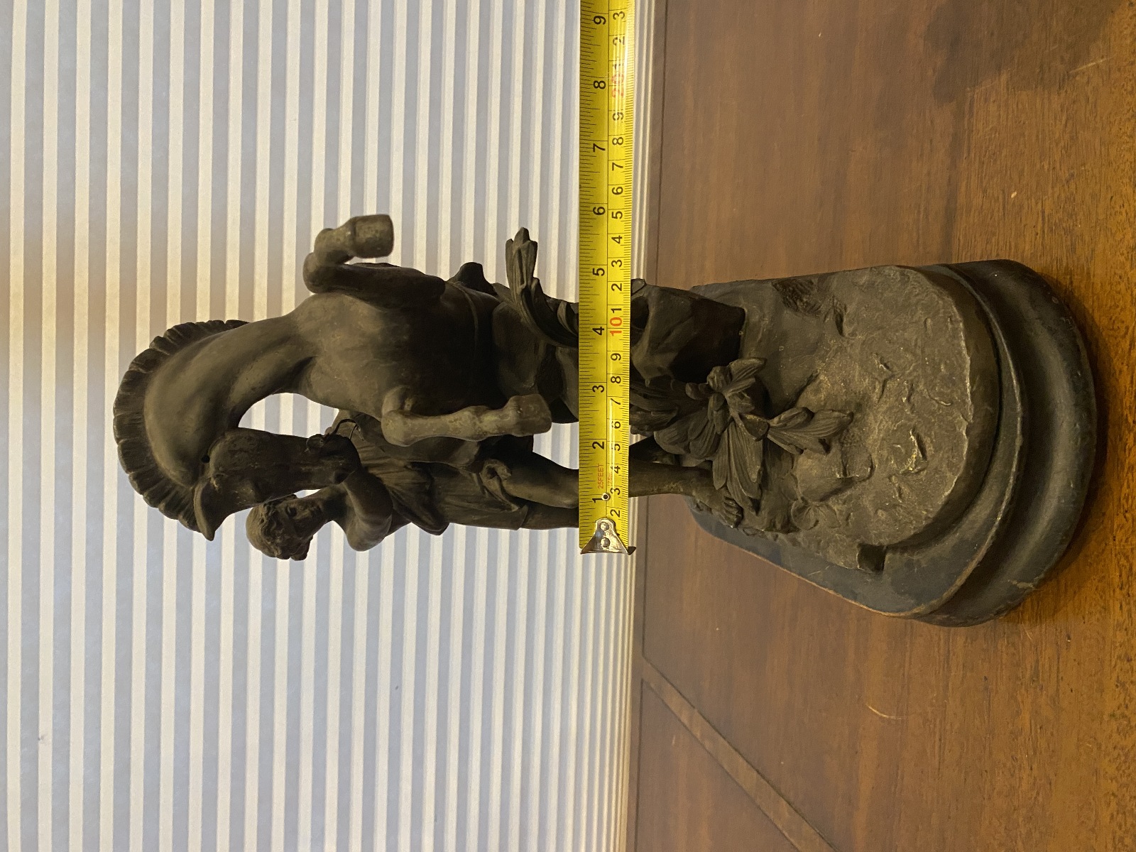 VTG MARLY HORSE Roman Warrior Restraining Horse Metal Sculpture, Wooden Base 15"