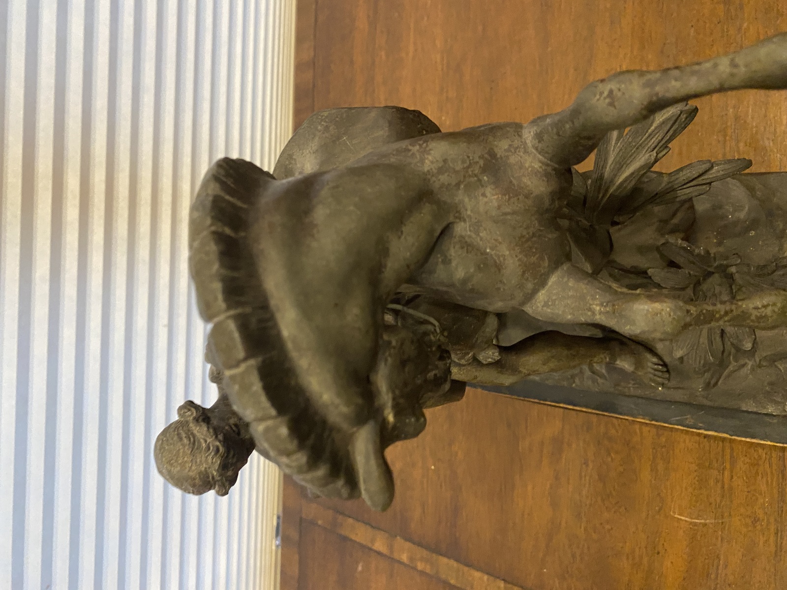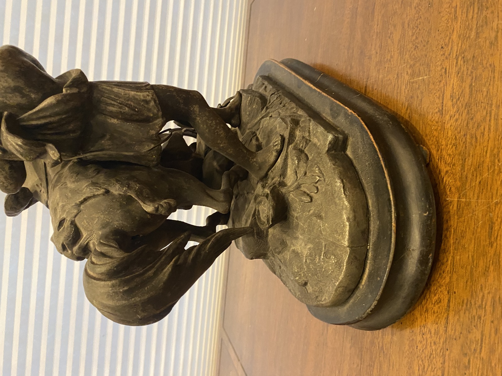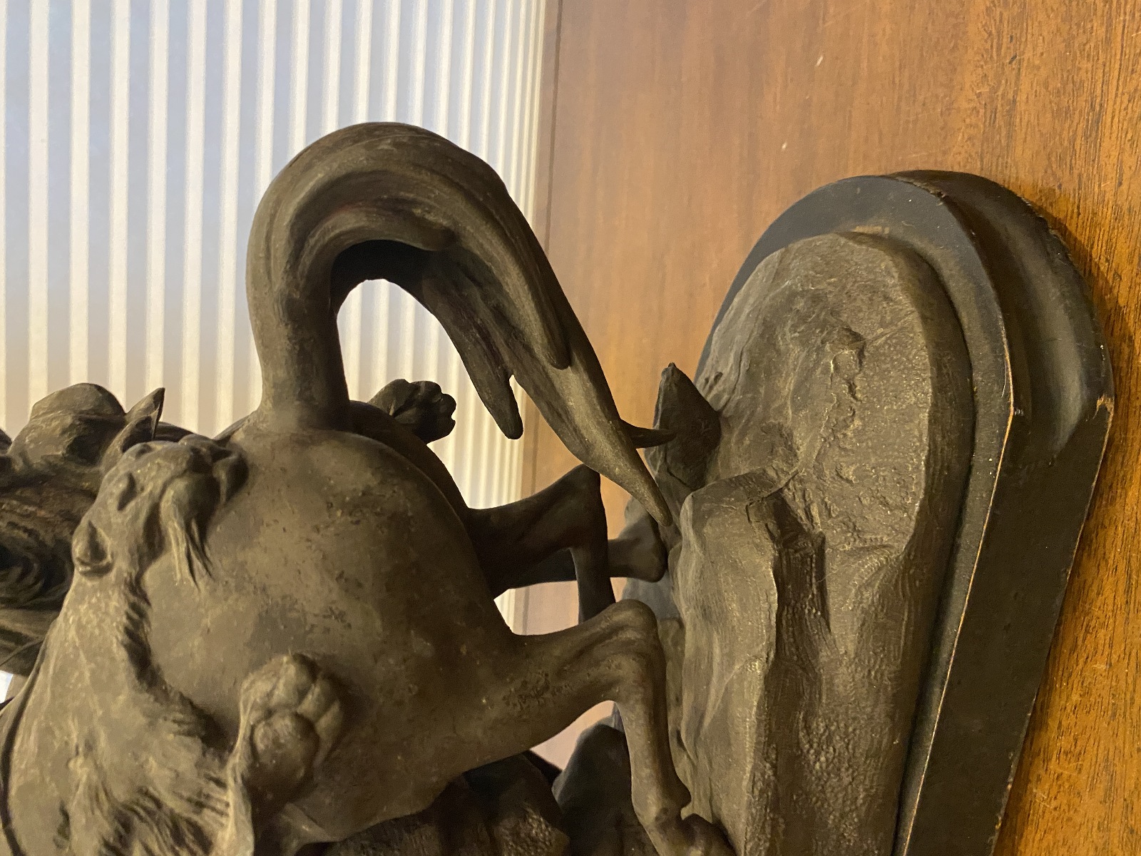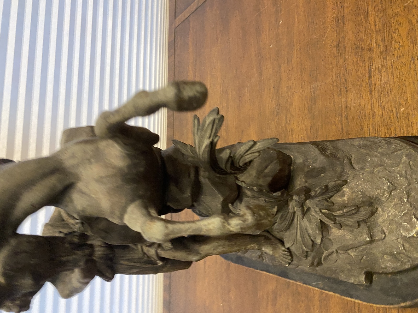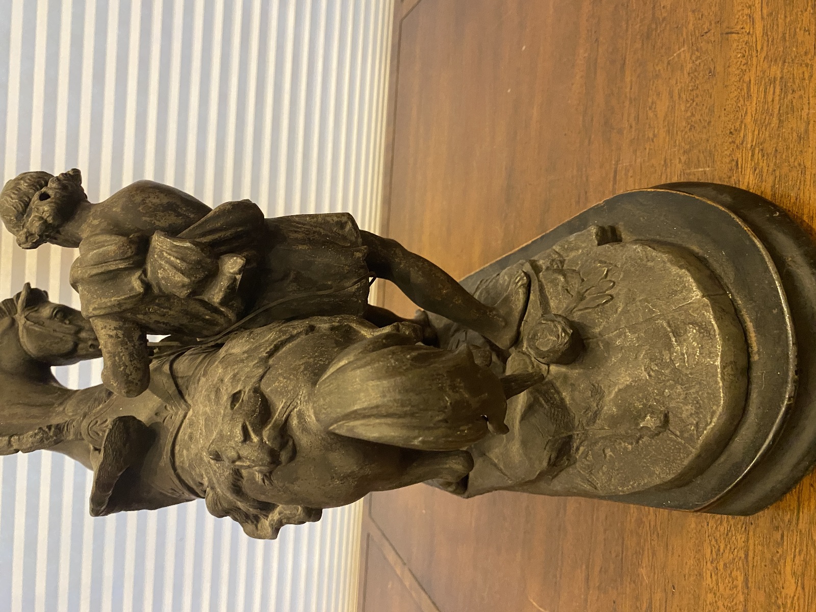 VTG MARLY HORSE Roman Warrior Restraining Horse Metal Sculpture, Wooden Base 15"