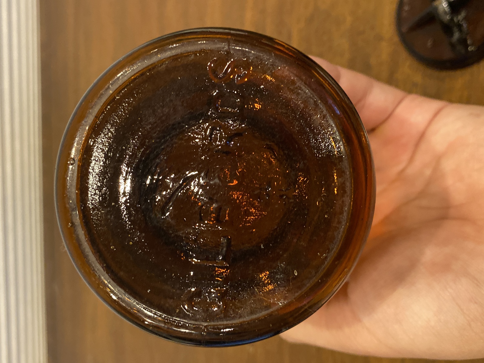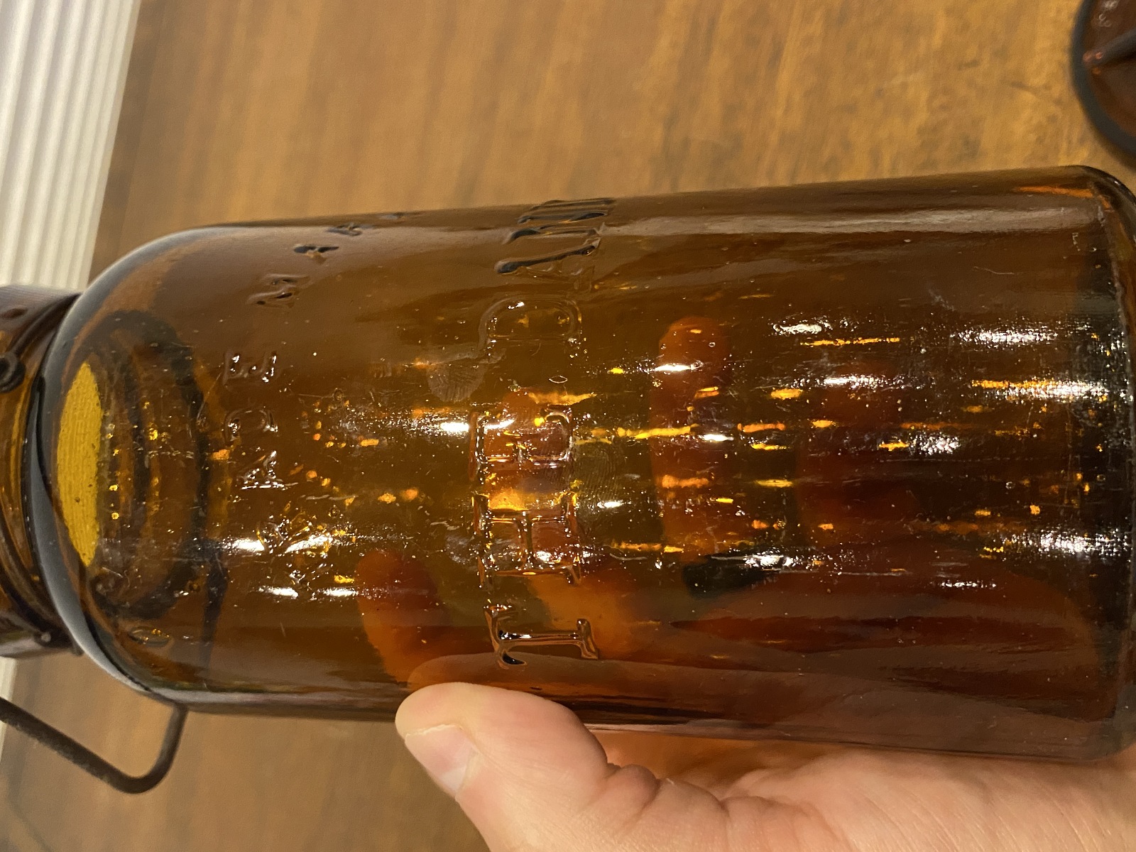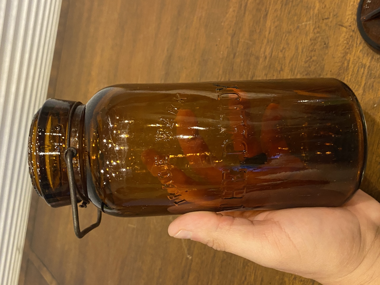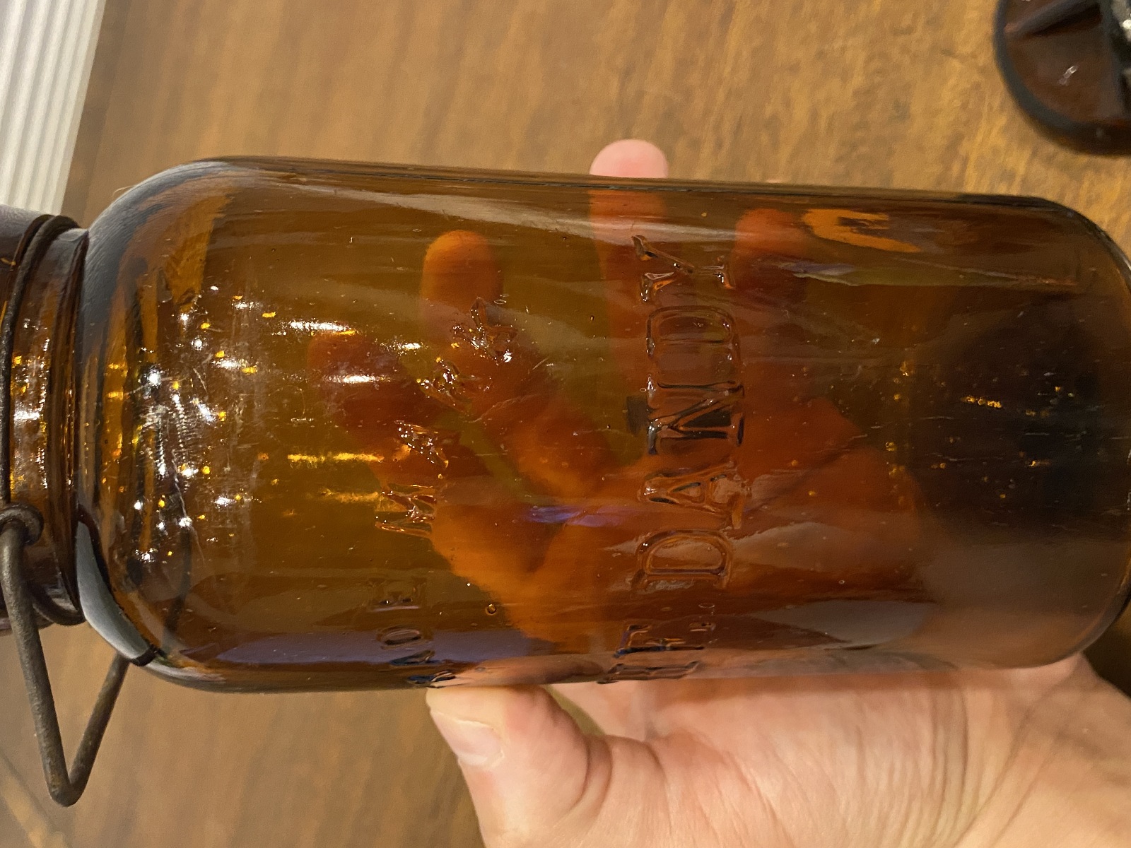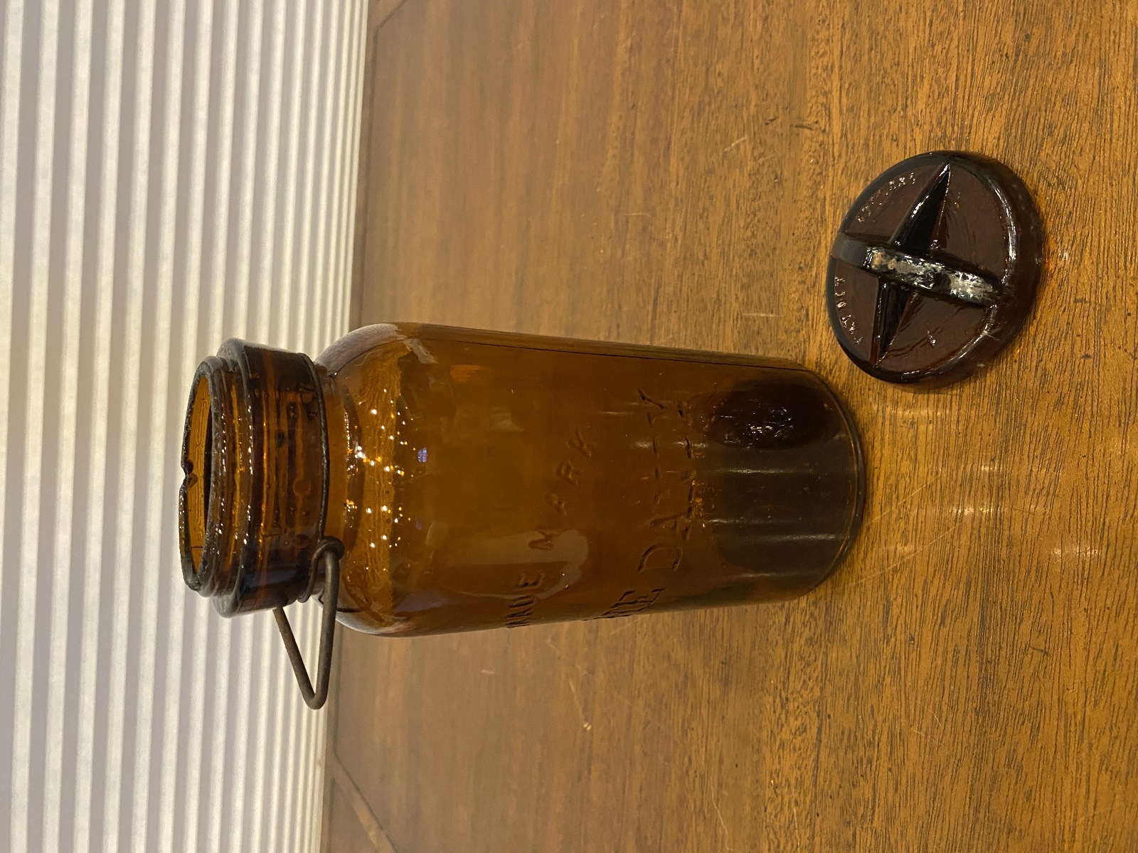 ANTIQUE TRADEMARK THE DANDY Dark Amber Fruit Jar PAT OCT 13TH 1885 8.75"H