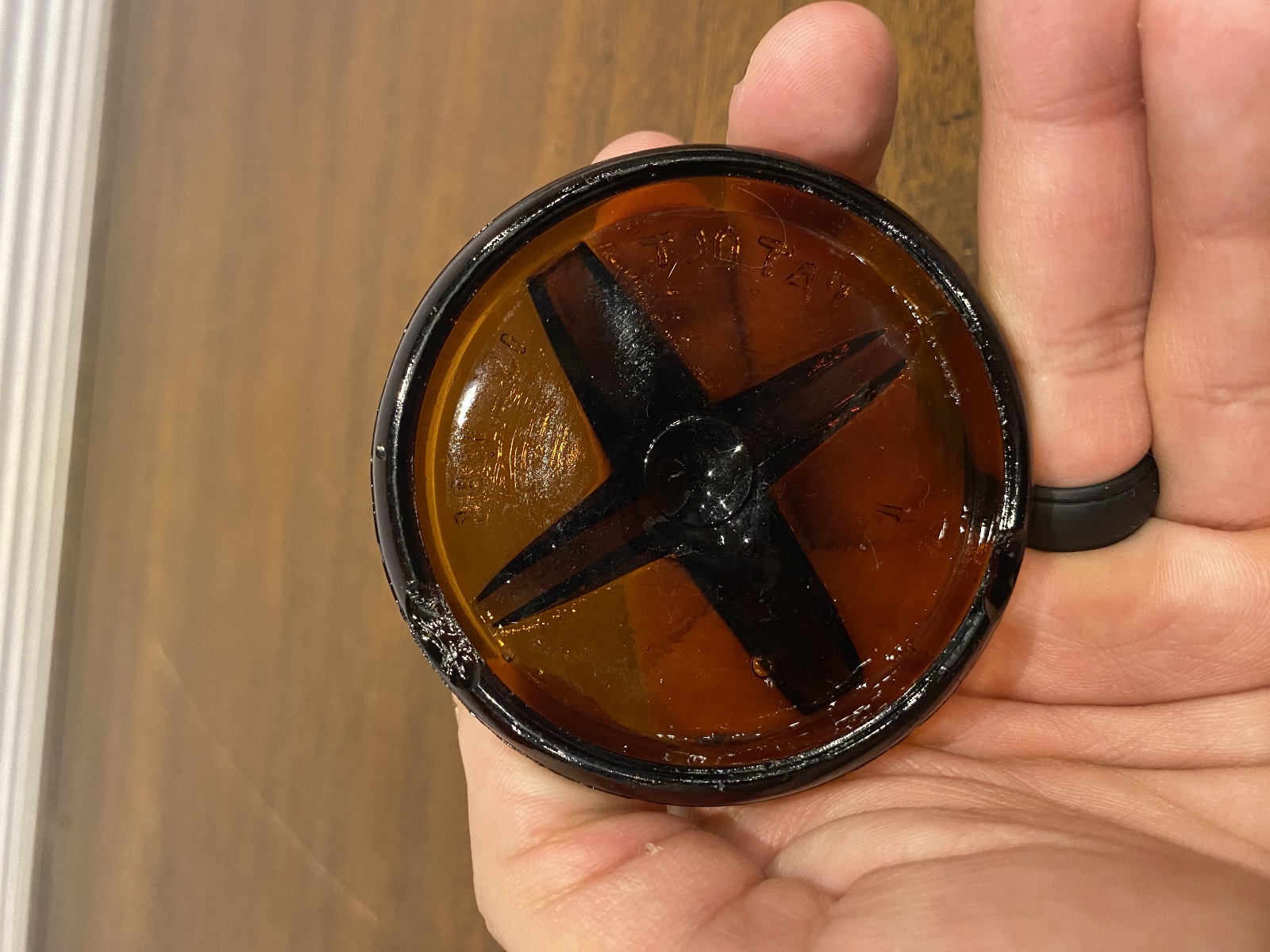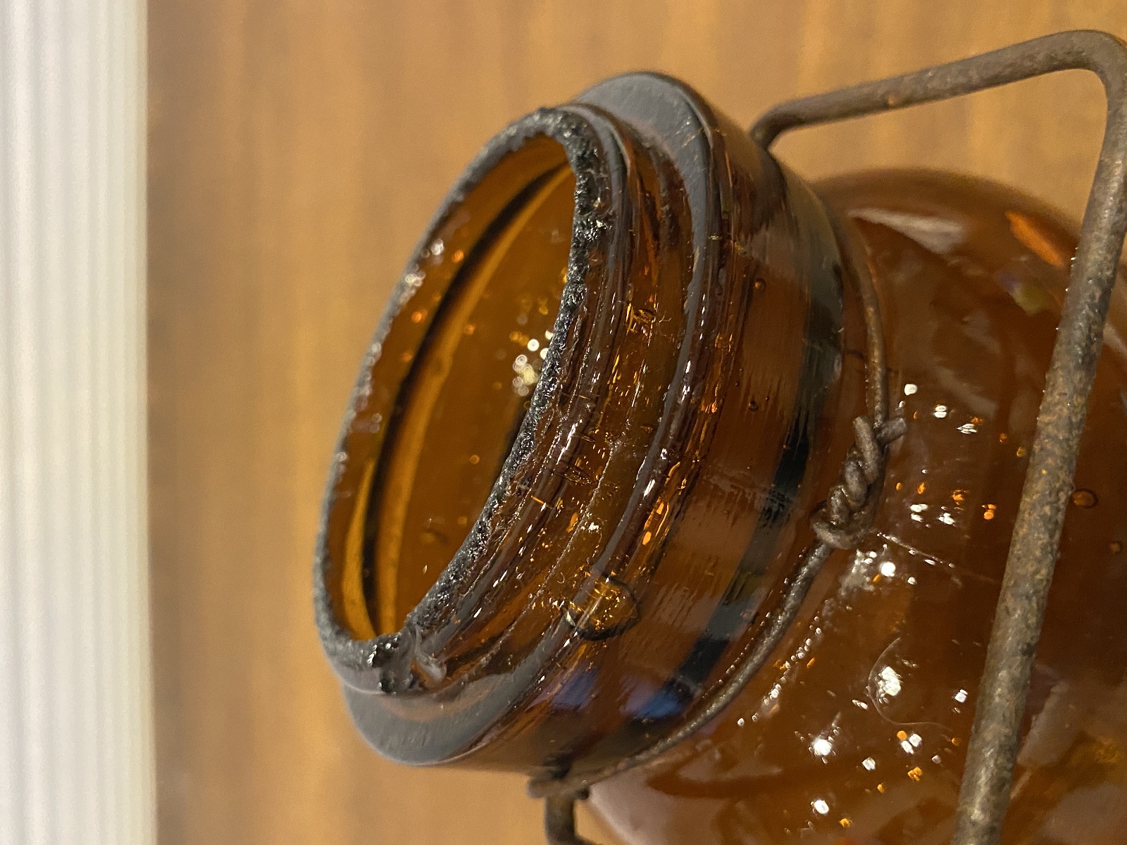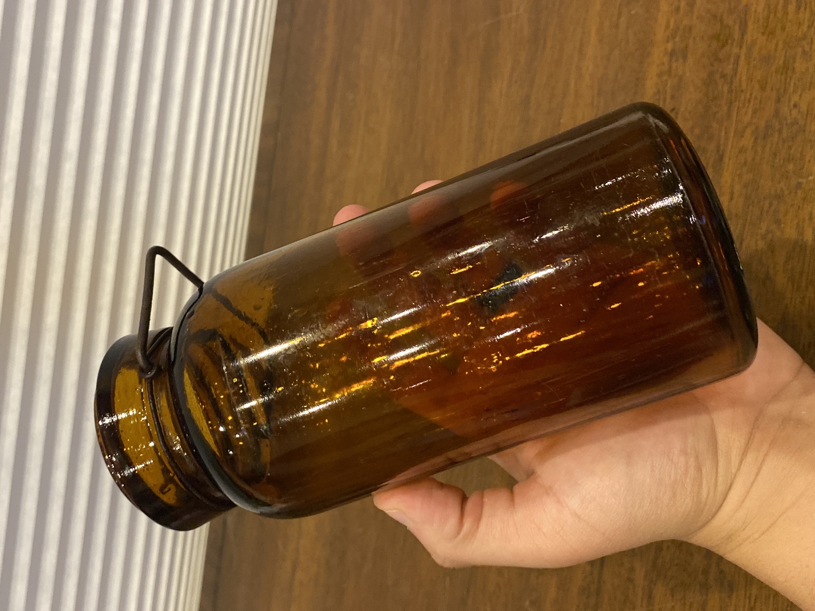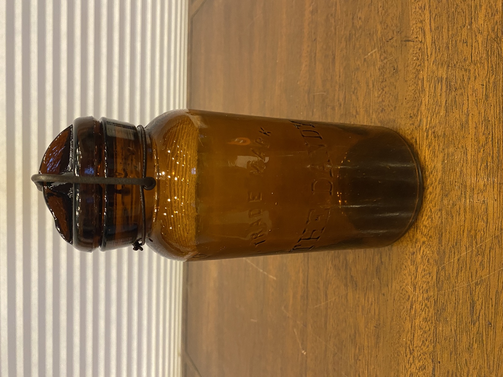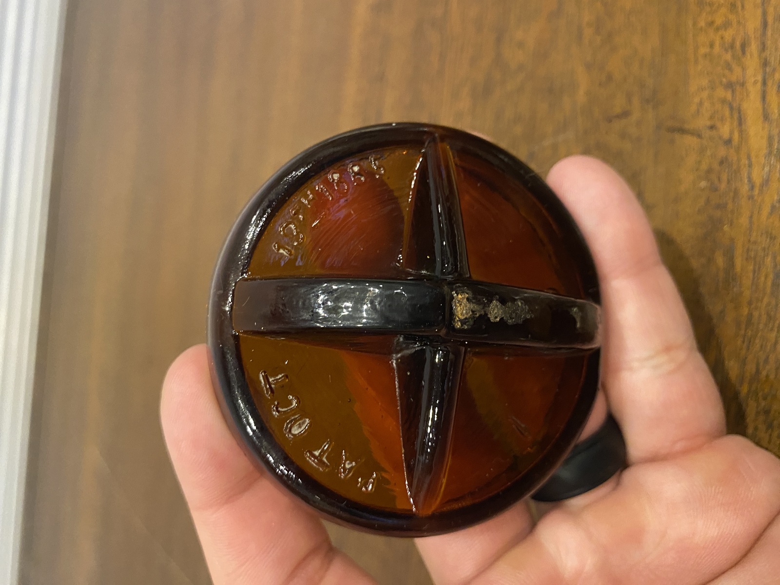 ANTIQUE TRADEMARK THE DANDY Dark Amber Fruit Jar PAT OCT 13TH 1885 8.75"H
