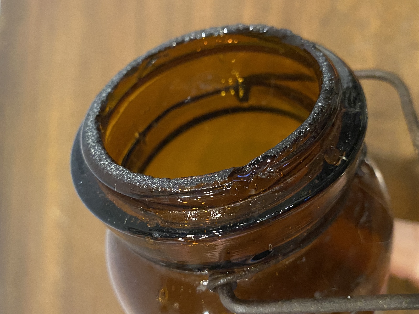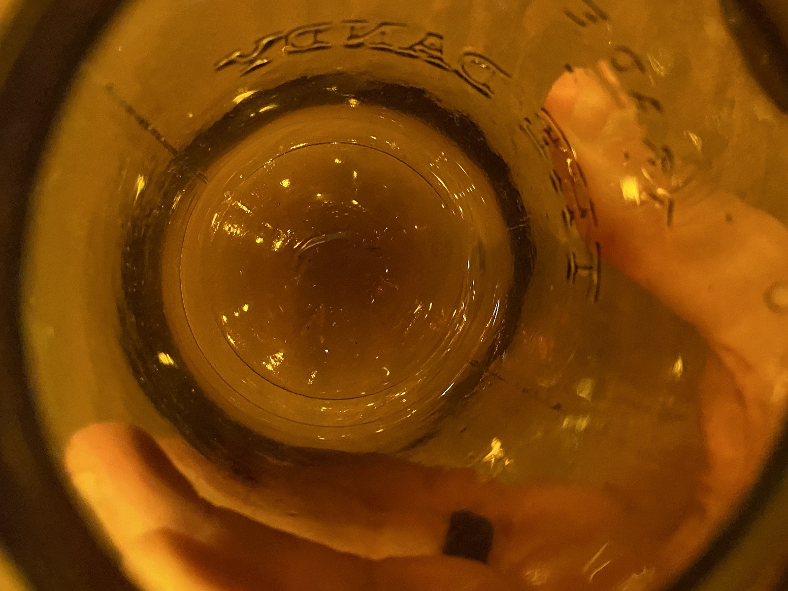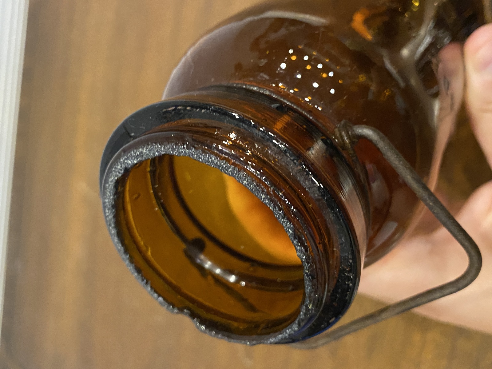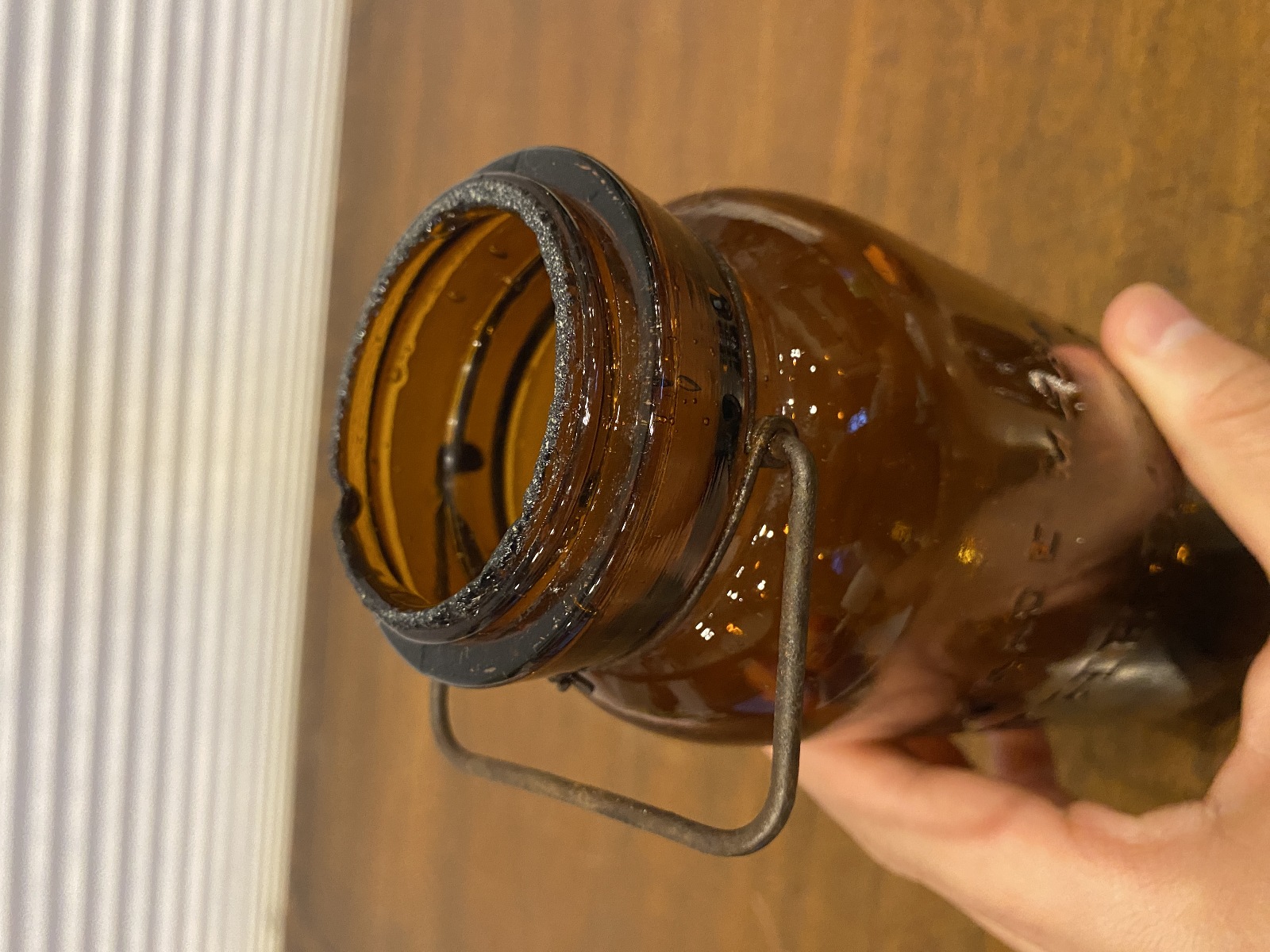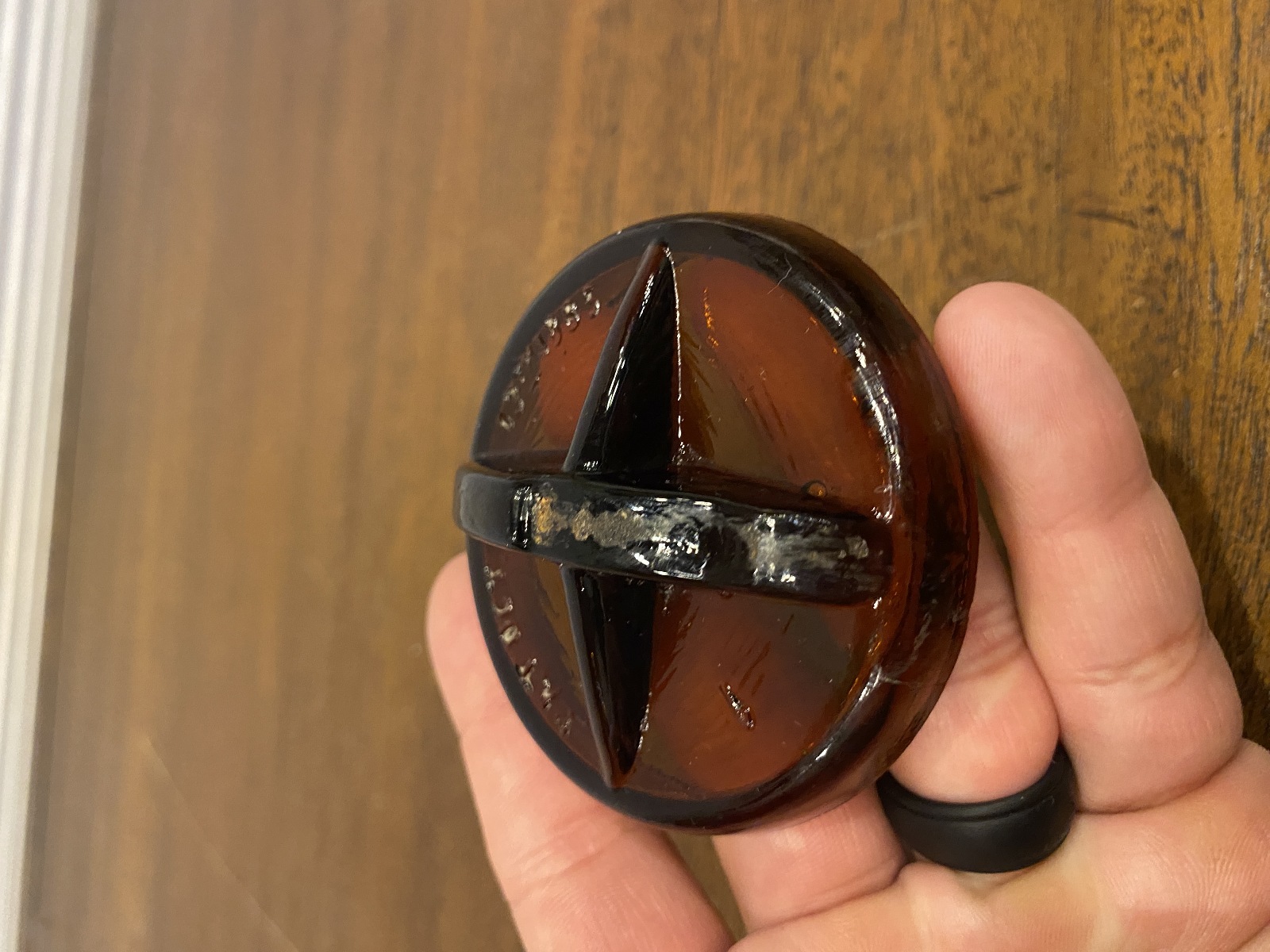 ANTIQUE TRADEMARK THE DANDY Dark Amber Fruit Jar PAT OCT 13TH 1885 8.75"H
