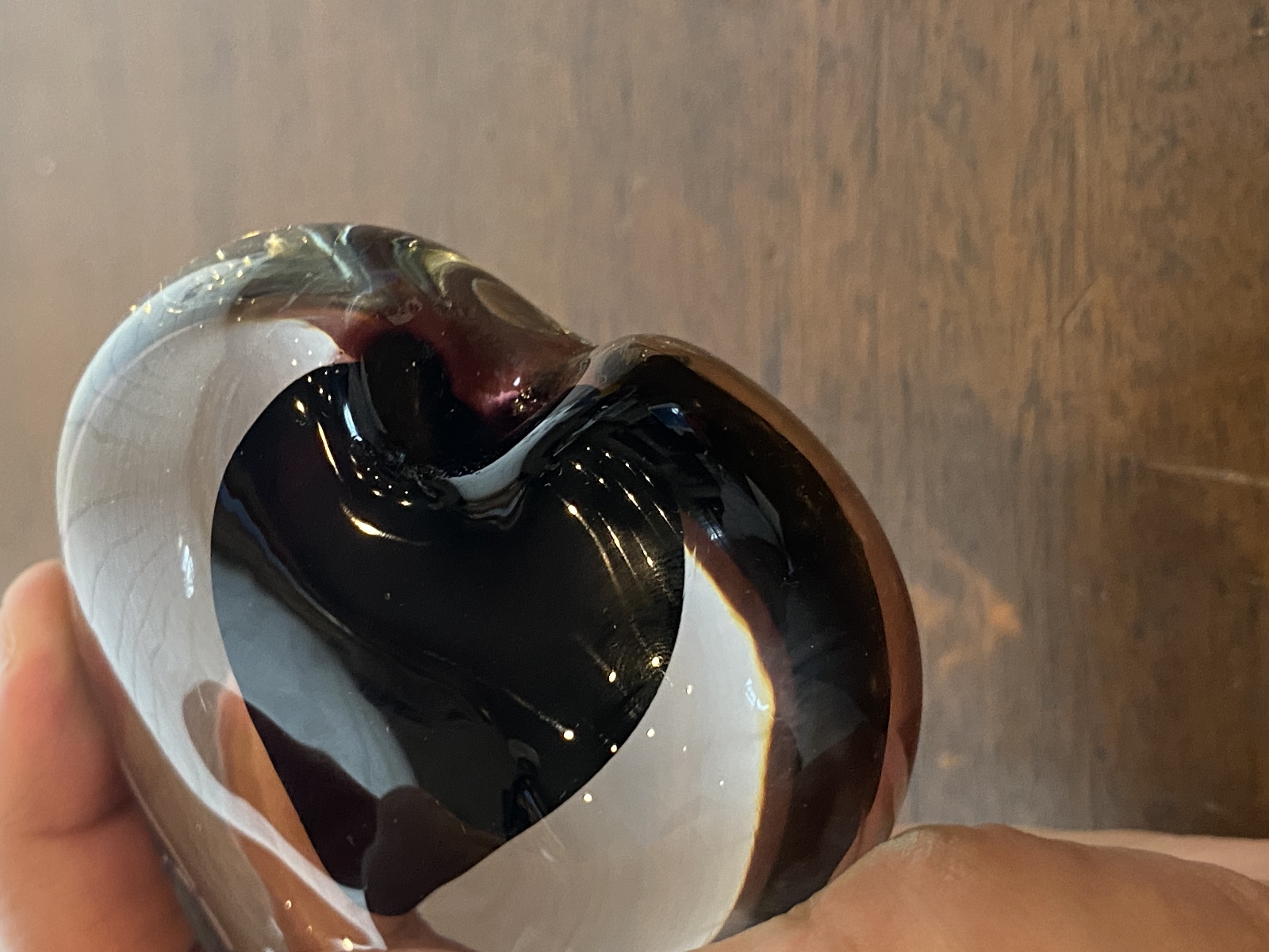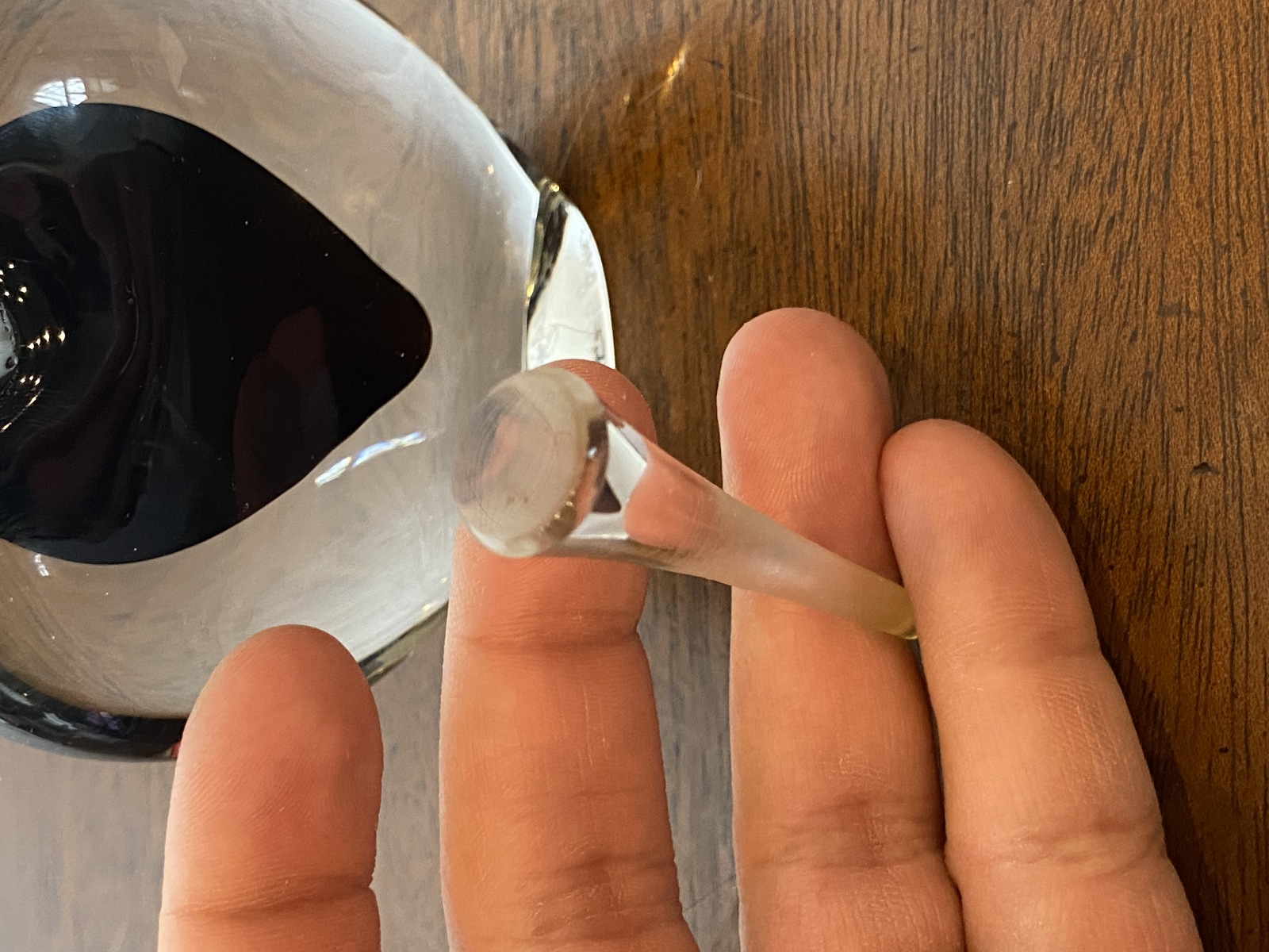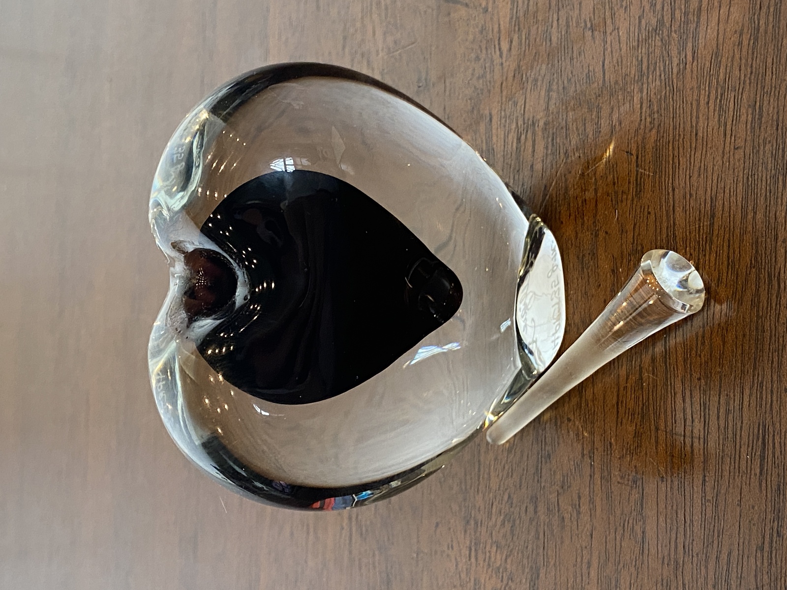 VTG ZELLIQUE STUDIO Heart Shaped Art Glass Perfume Bottle W/Dauber SIGNED 3.75"H