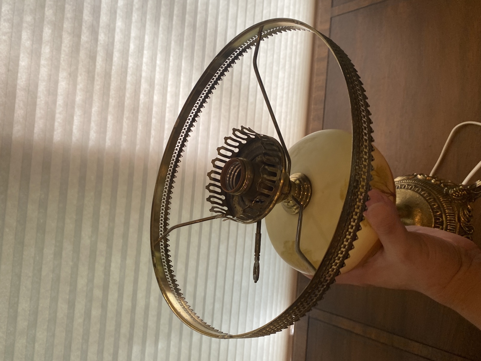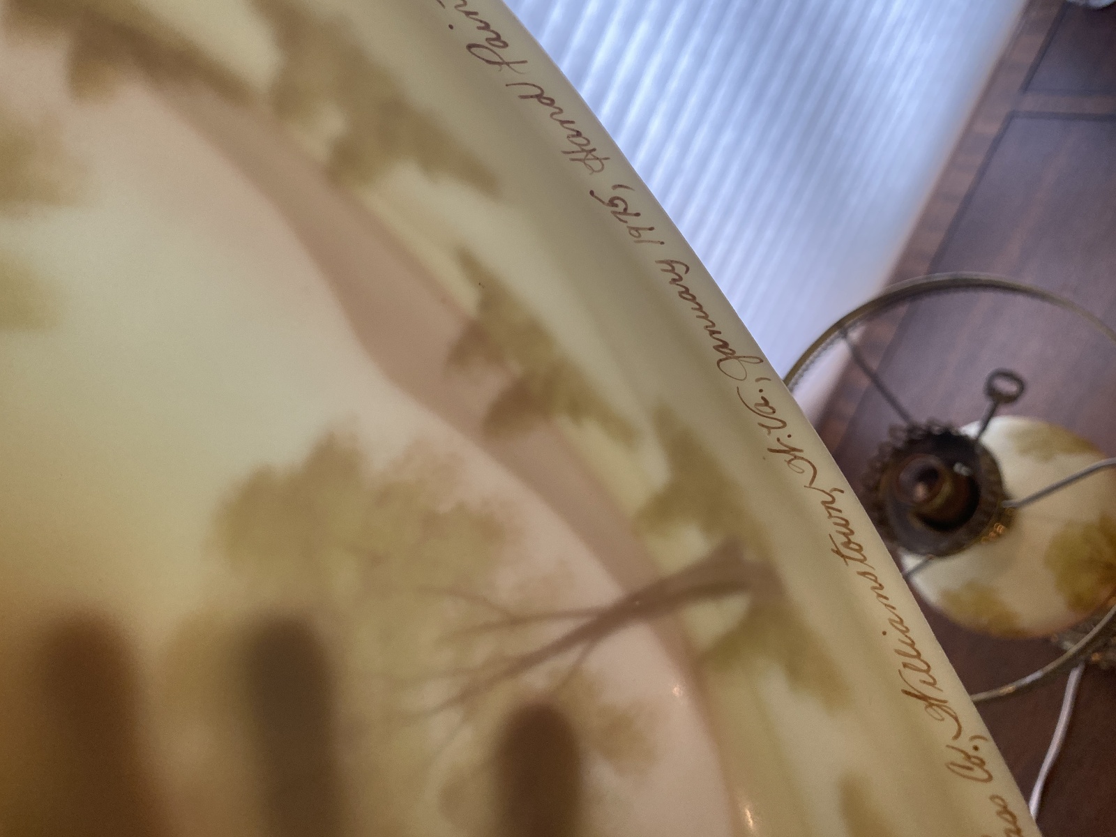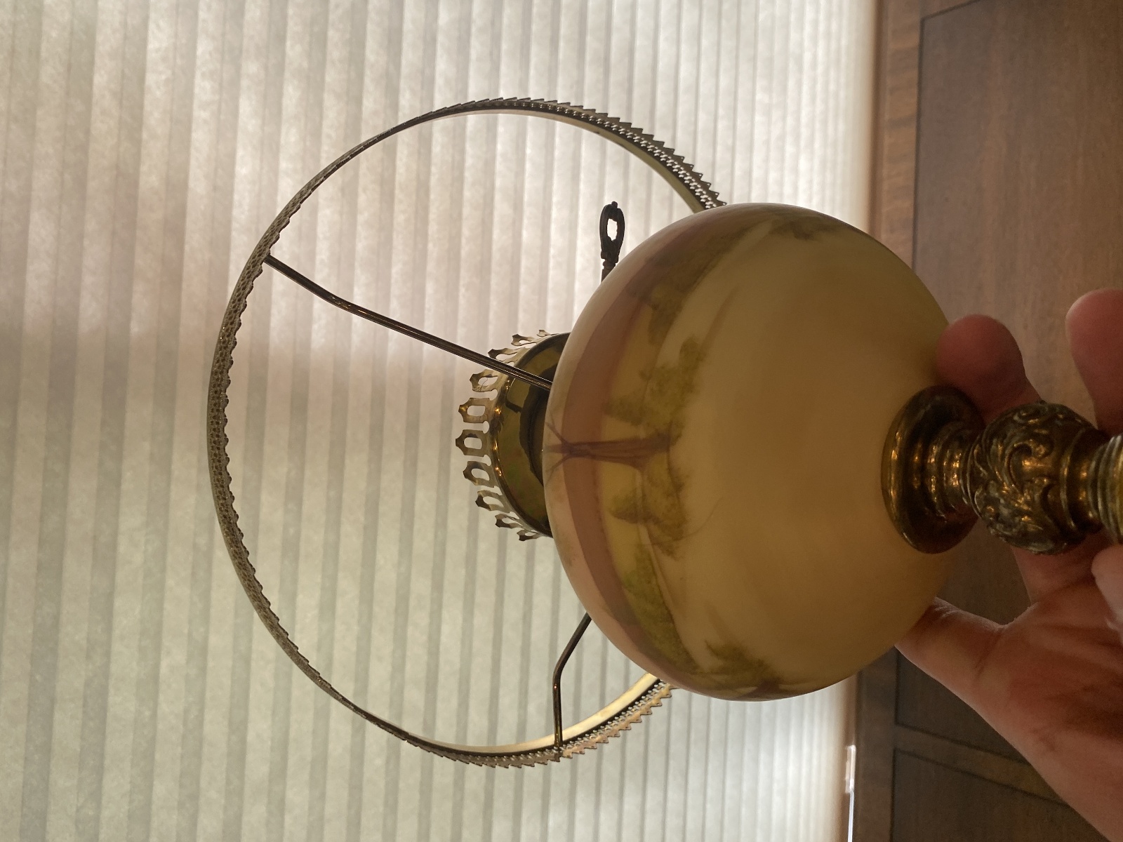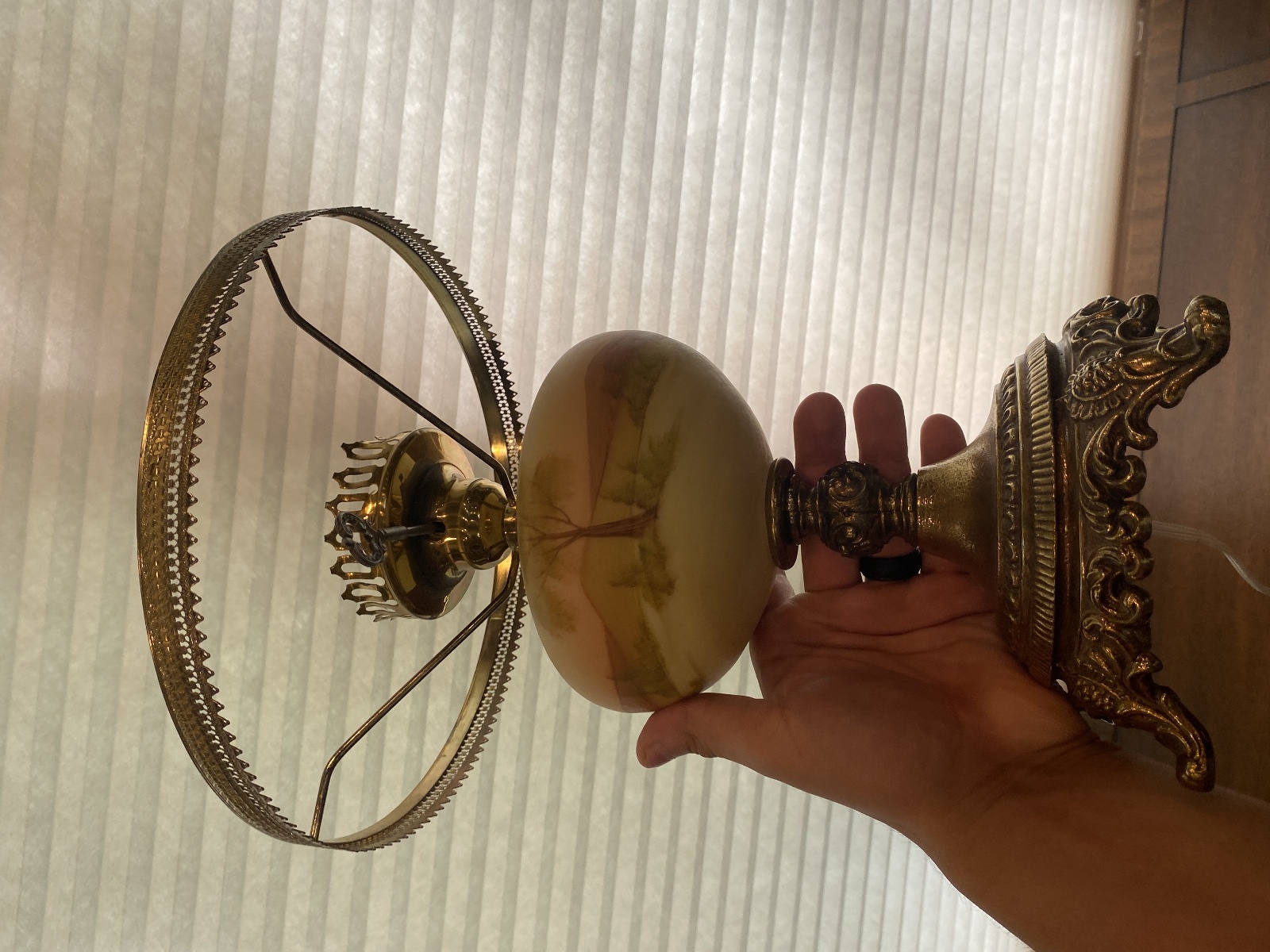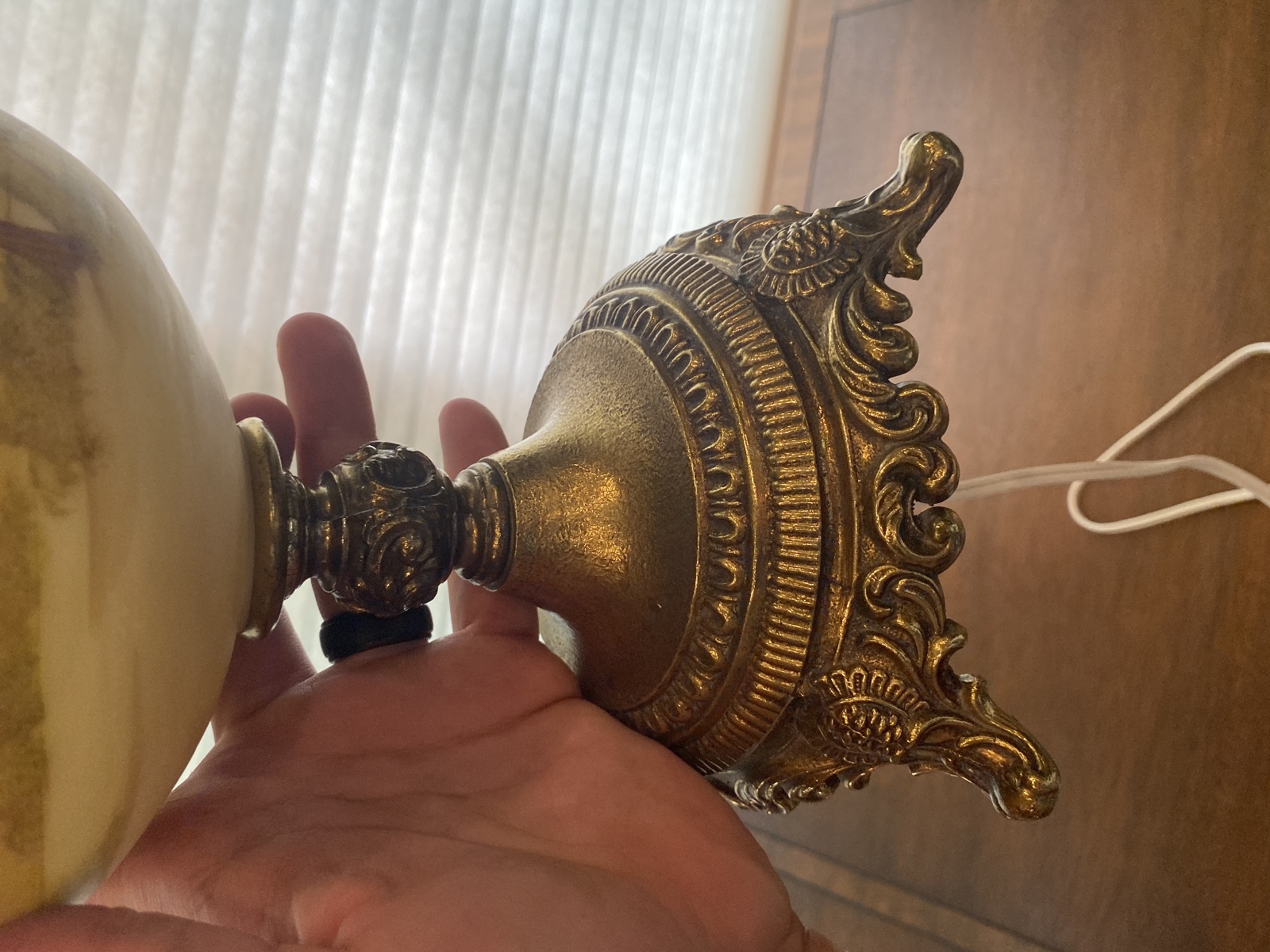 Great used condition (very few minor if any tiny bite/chip marks around the globe from its many years of love(age), common for these pieces, and light scratching and general wear on the metal from its age, but overall this piece is in really great shape for its age. (Please refer back to the photos for condition and feel free to message me if you have any questions. Thank you)!