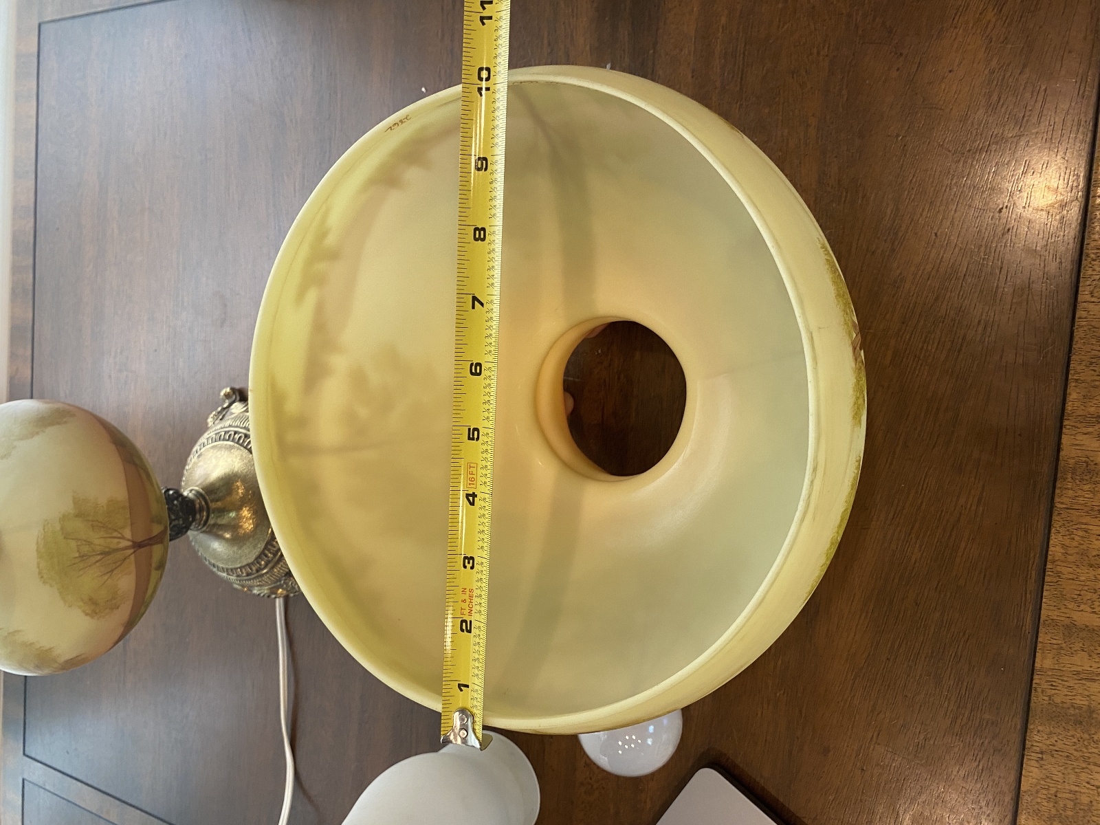Approximate measurements 10.5"W x 19.5"H(Top of the shade) (12.5"H(Top of the base part). 100% of the proceeds go to the registered non profit Cards of Love Inc. and with your purchase you are helping raise money to fund scholarships for at risk youth. Thank you!