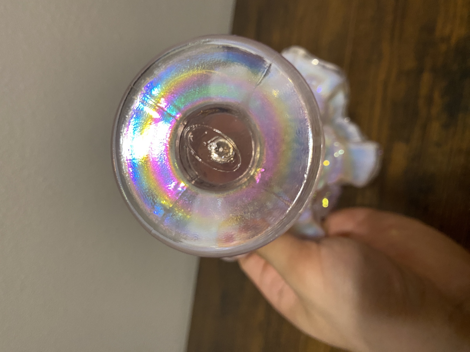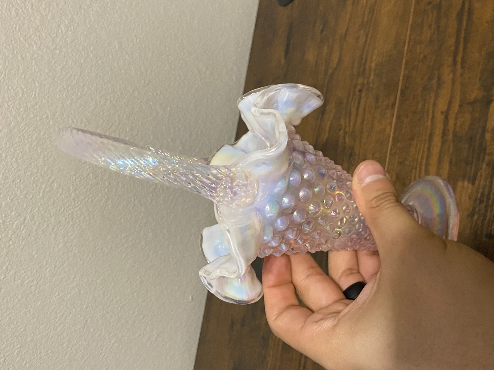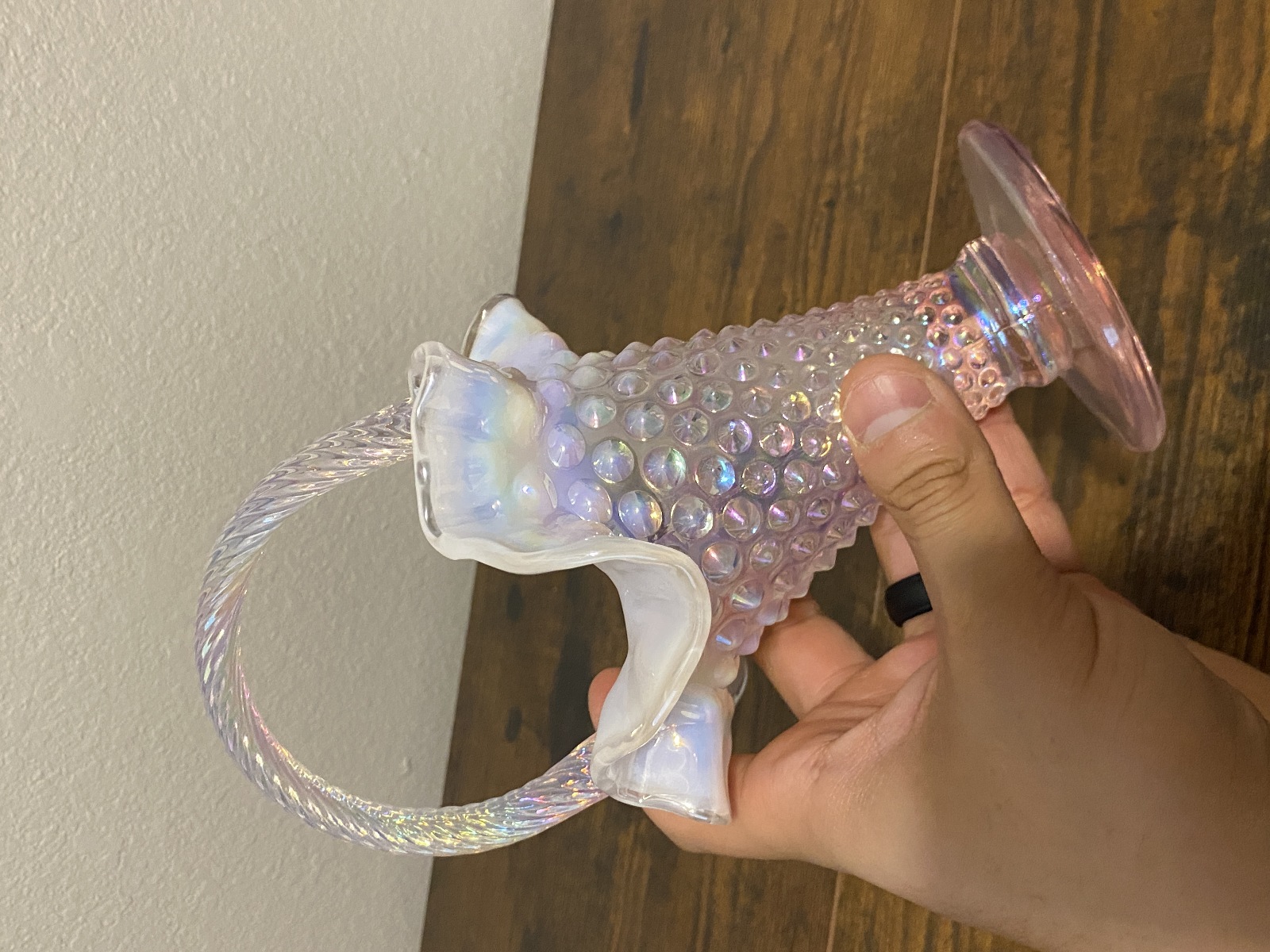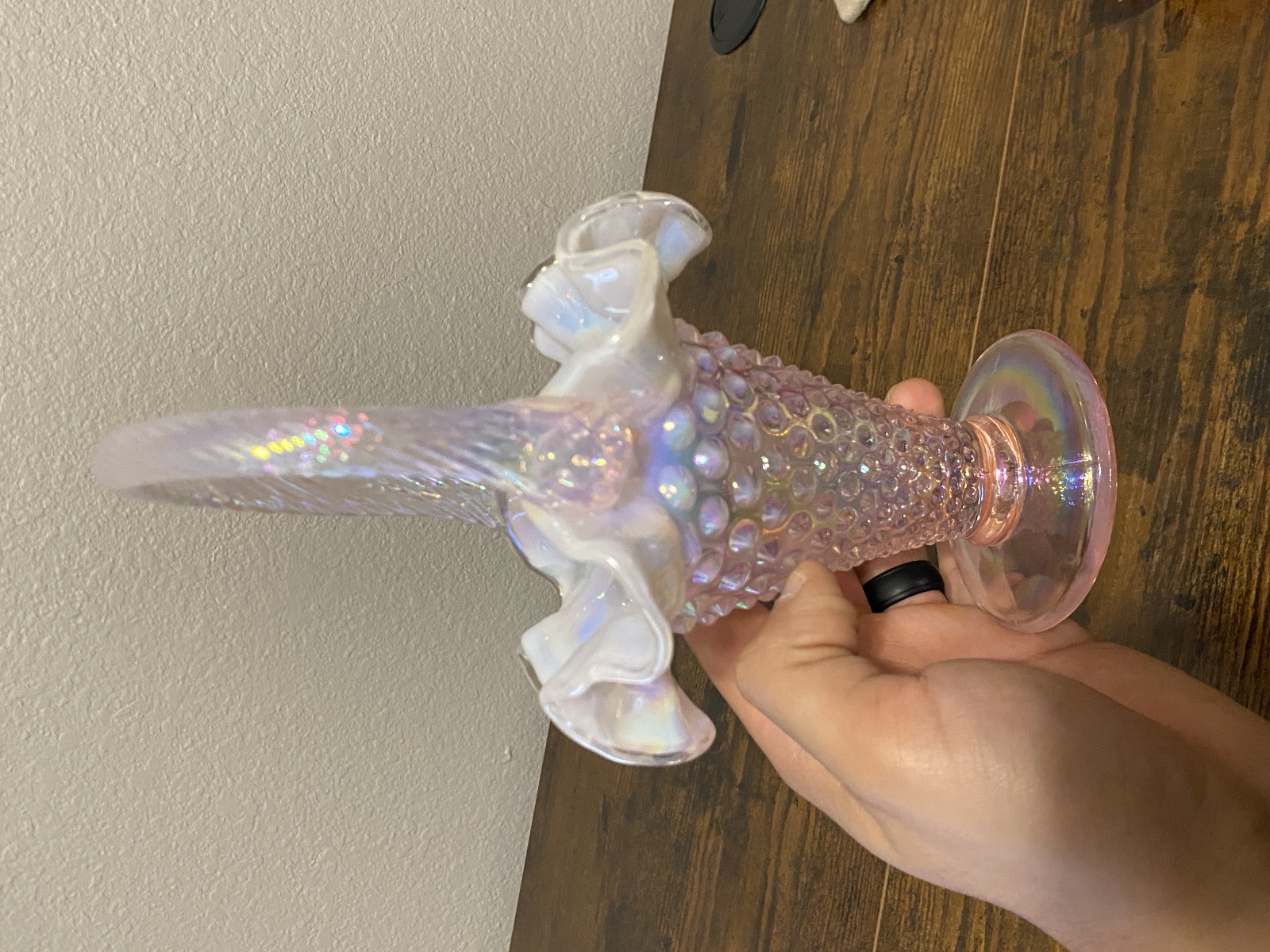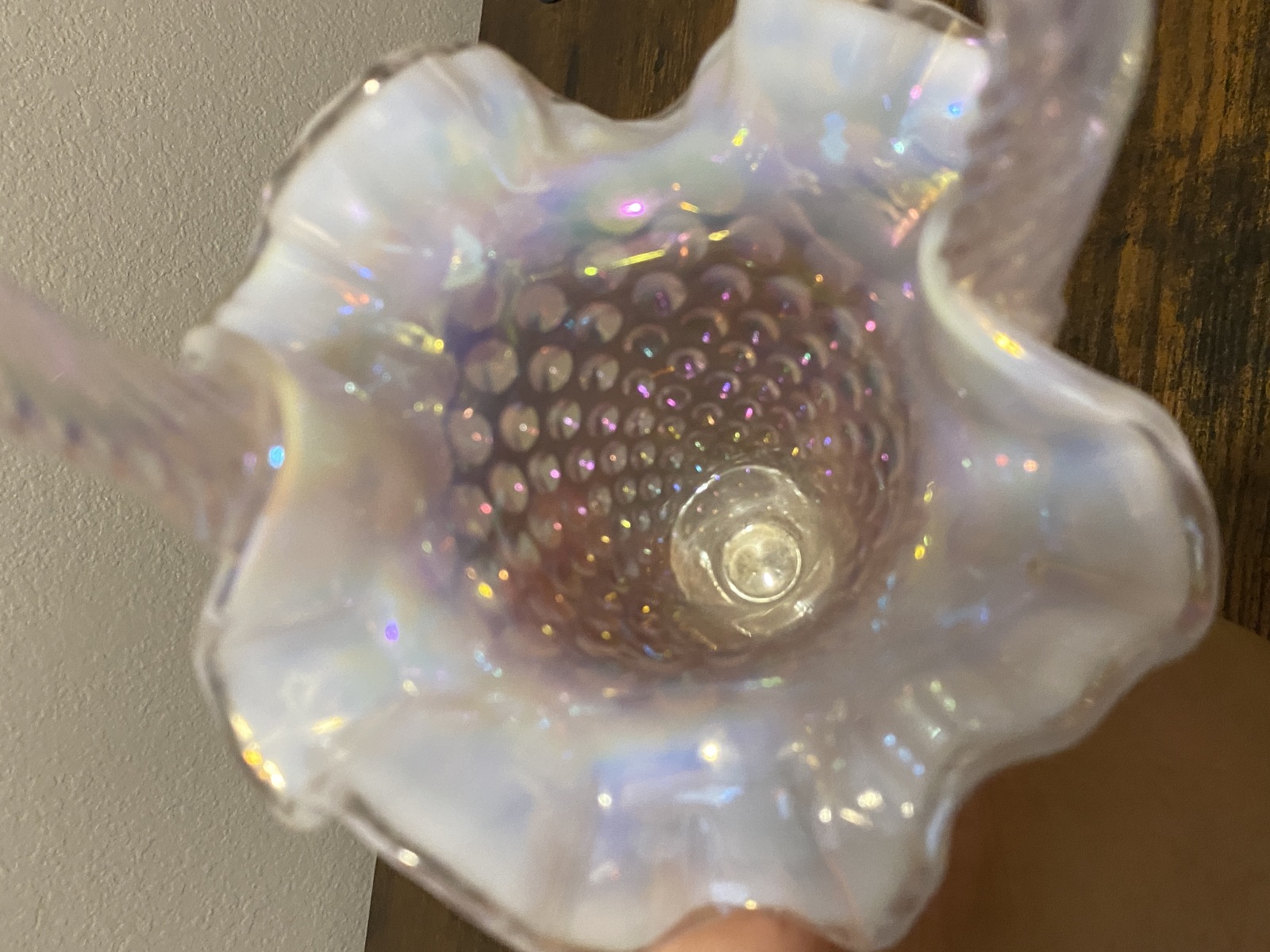 VTG FENTON Pink Opalescent Iridescent Hobnail Twisted Handle Basket 9"H