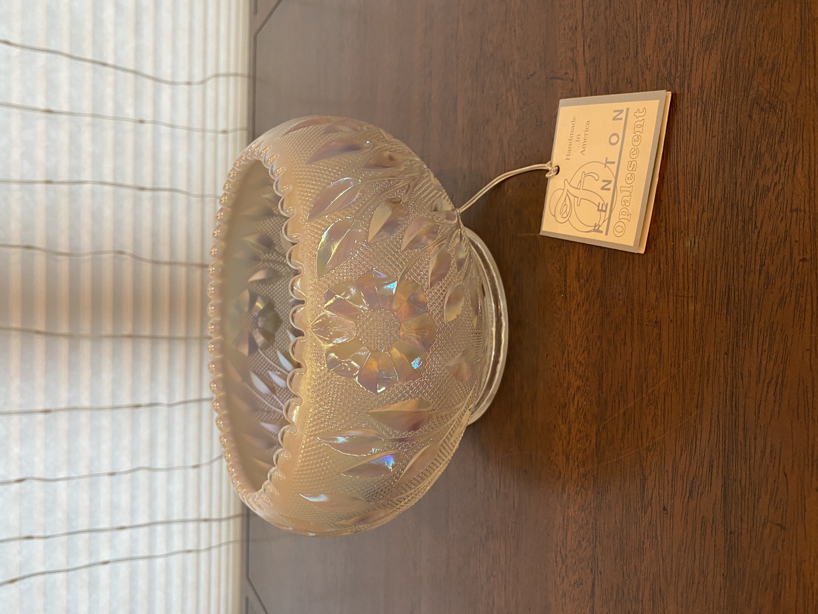 FENTON Pink/White Iridescent/Opalescent Ombre Flower & Leaves Glass Bowl 8"W