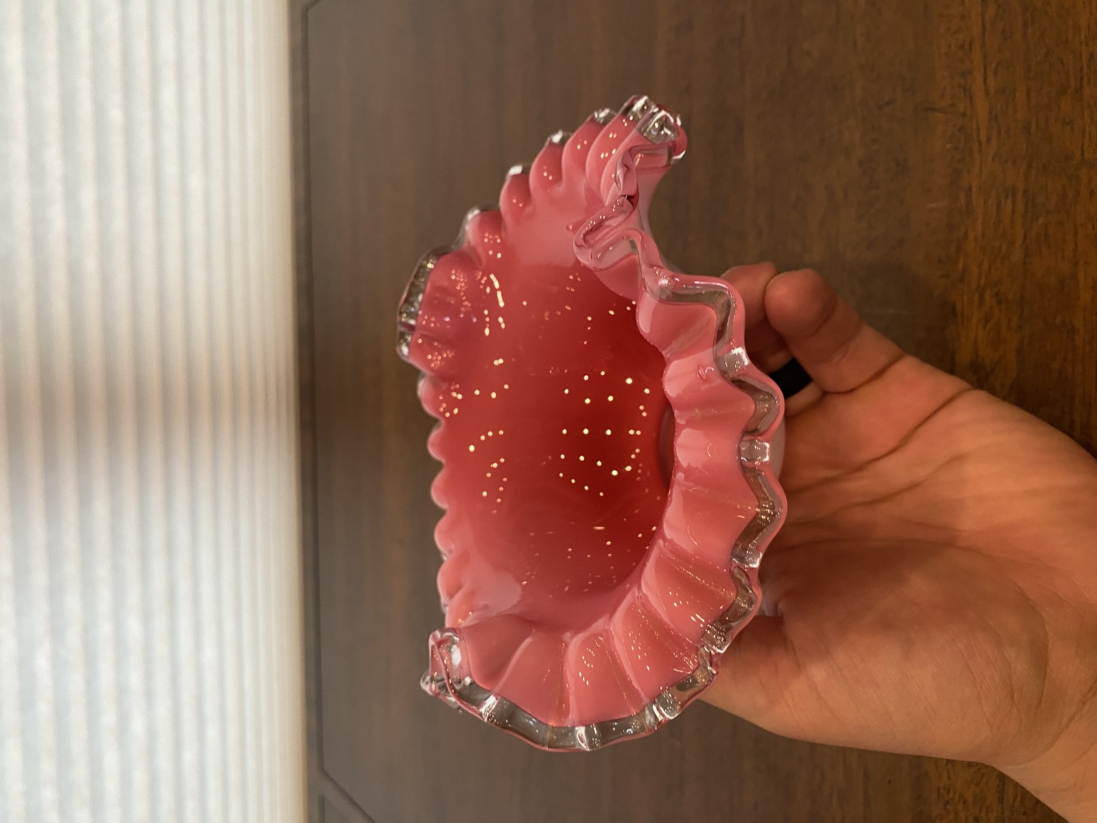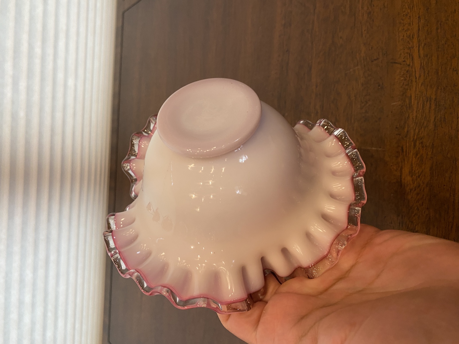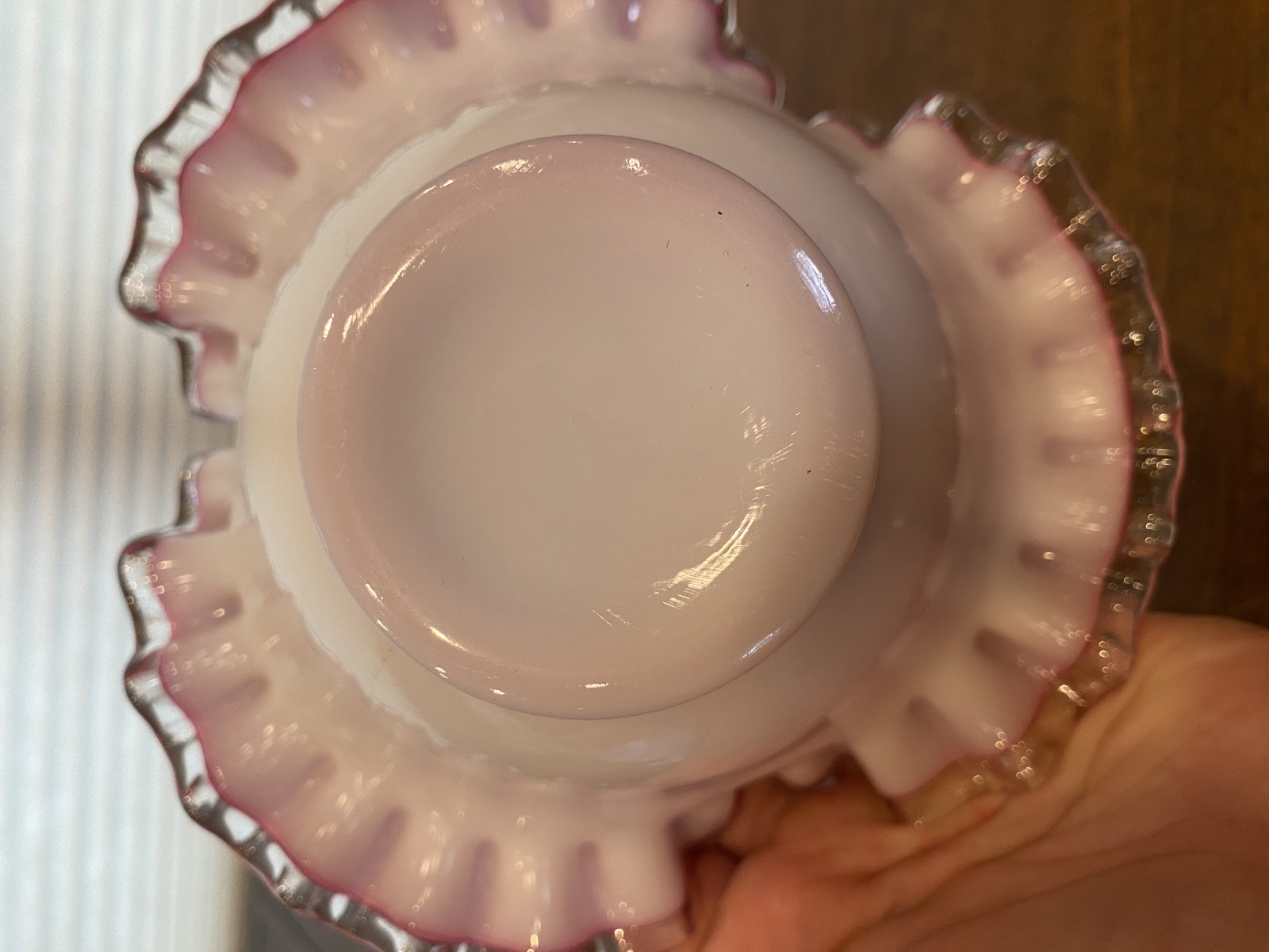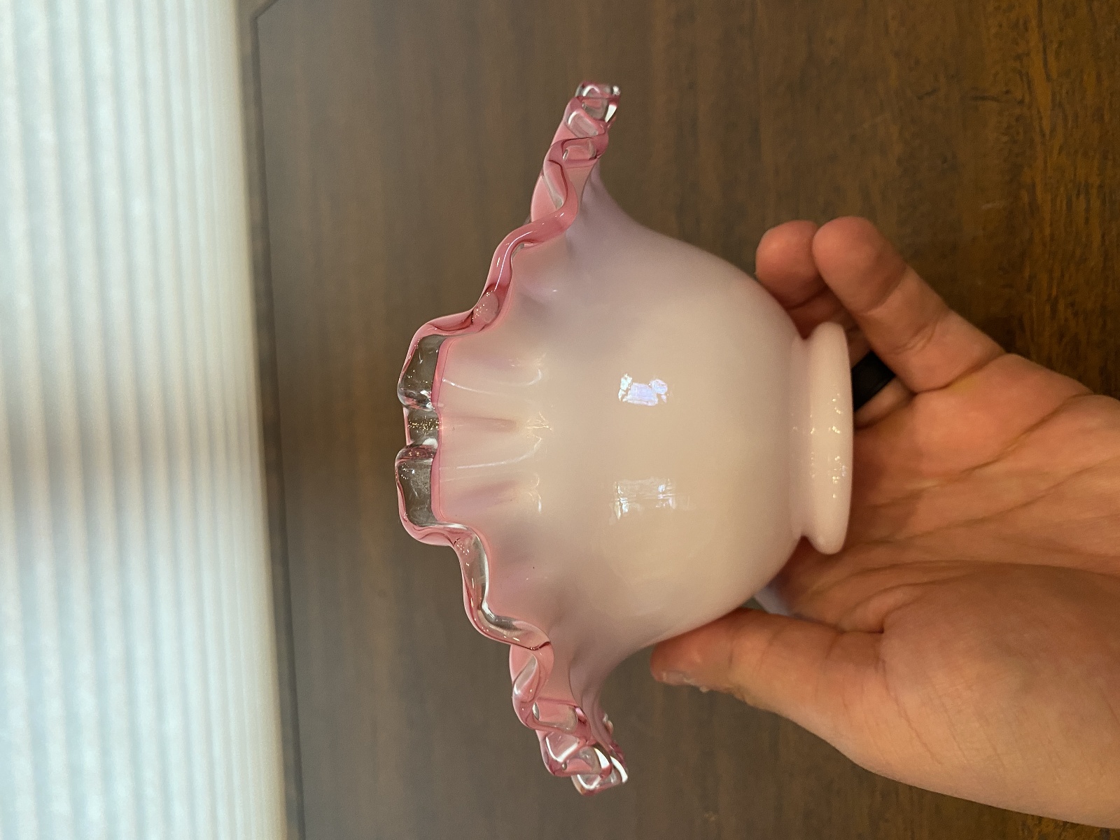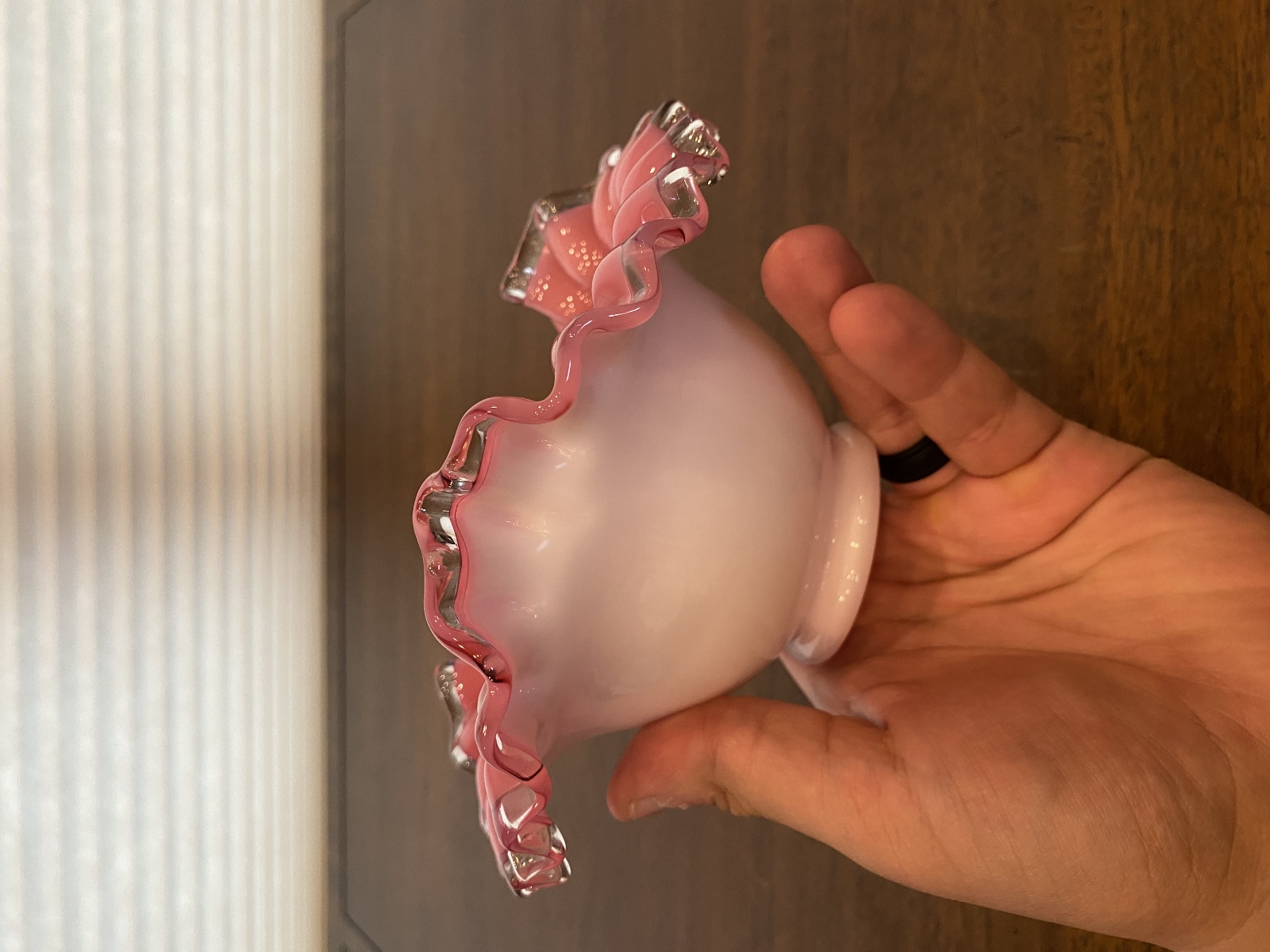 VTG FENTON Silver Crest PEACH BLOW Ruffled Rim Art Glass Vase 3.5"H