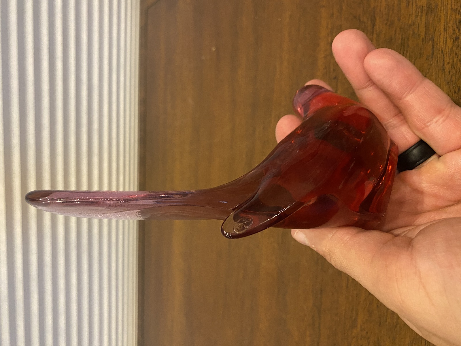 VTG FENTON Pink/Dusty Rose Glass Long Tail Bird Of Happiness Paperweight 5.25"L