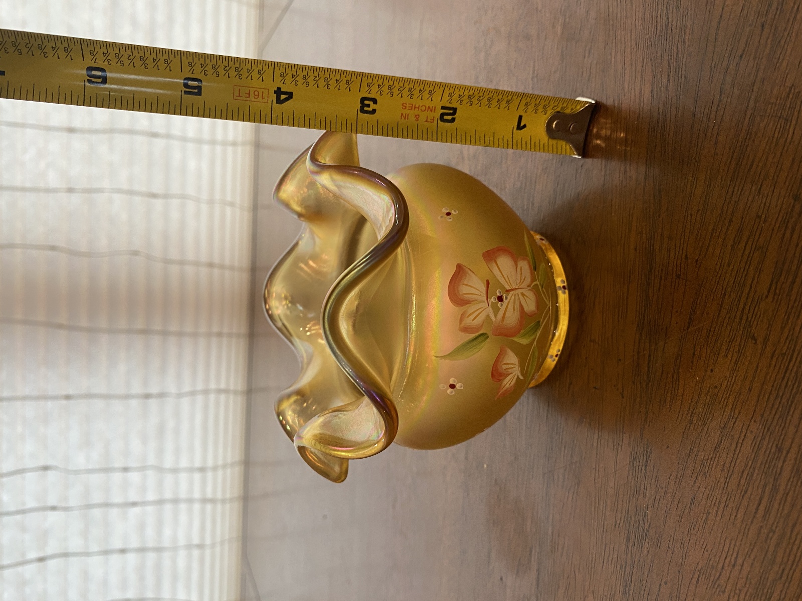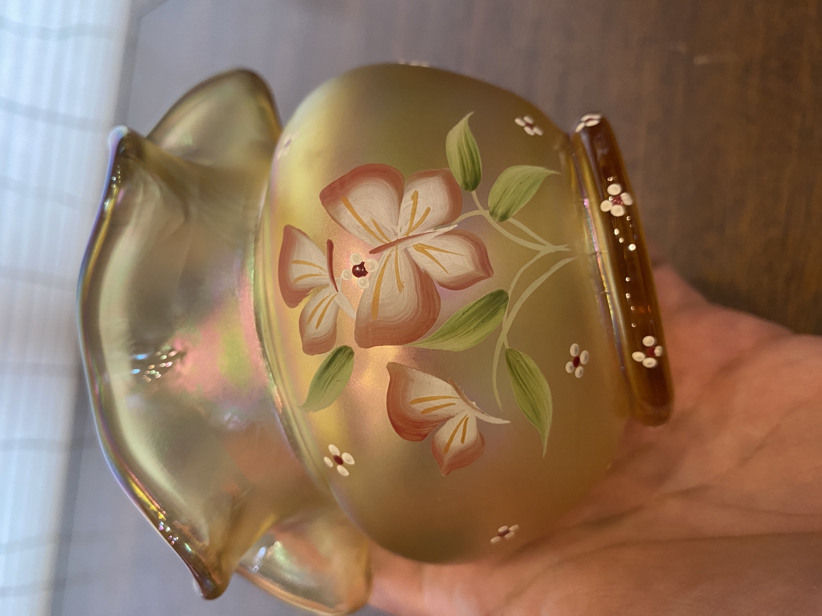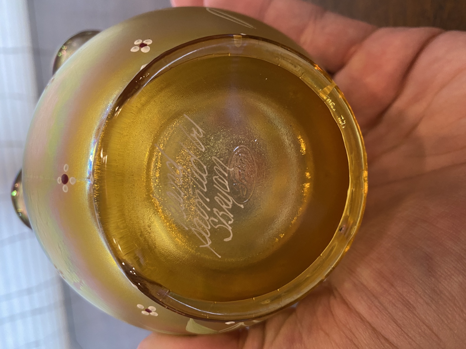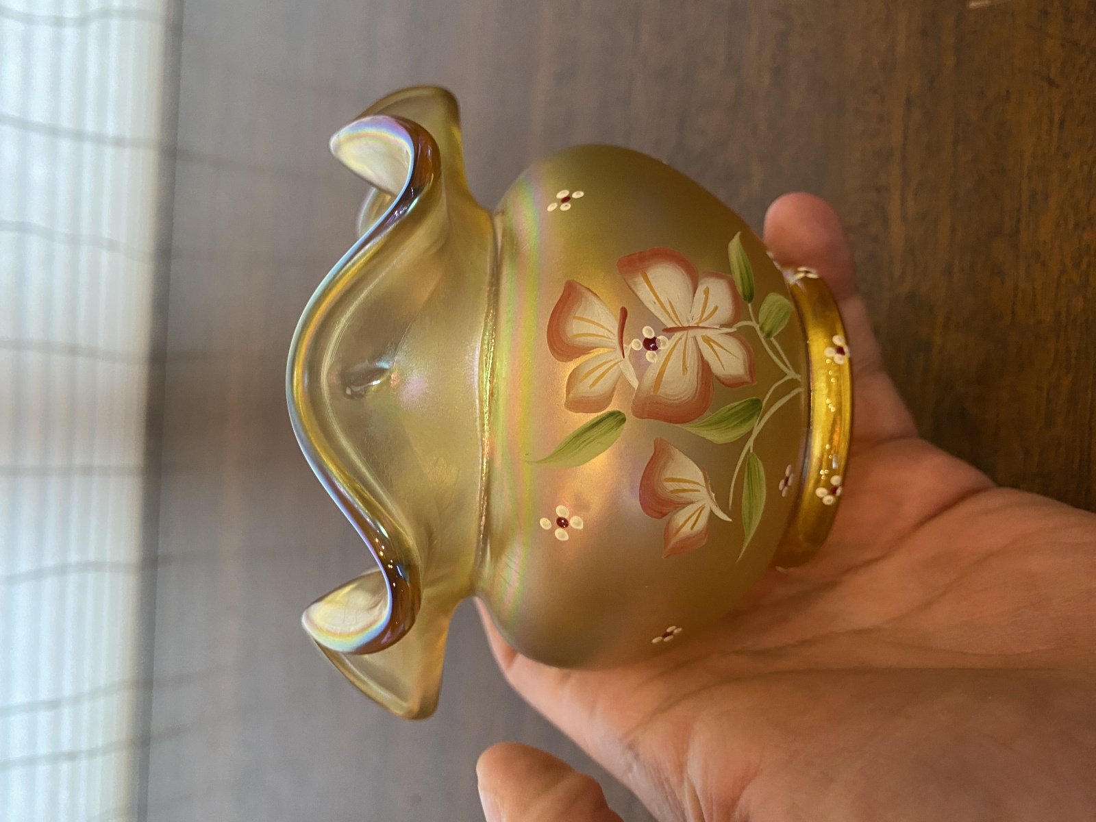 FENTON Gold Iridescent BUTTERFLY GARDEN Rose Bowl Vase 3.75"H SIGNED/PAINTED