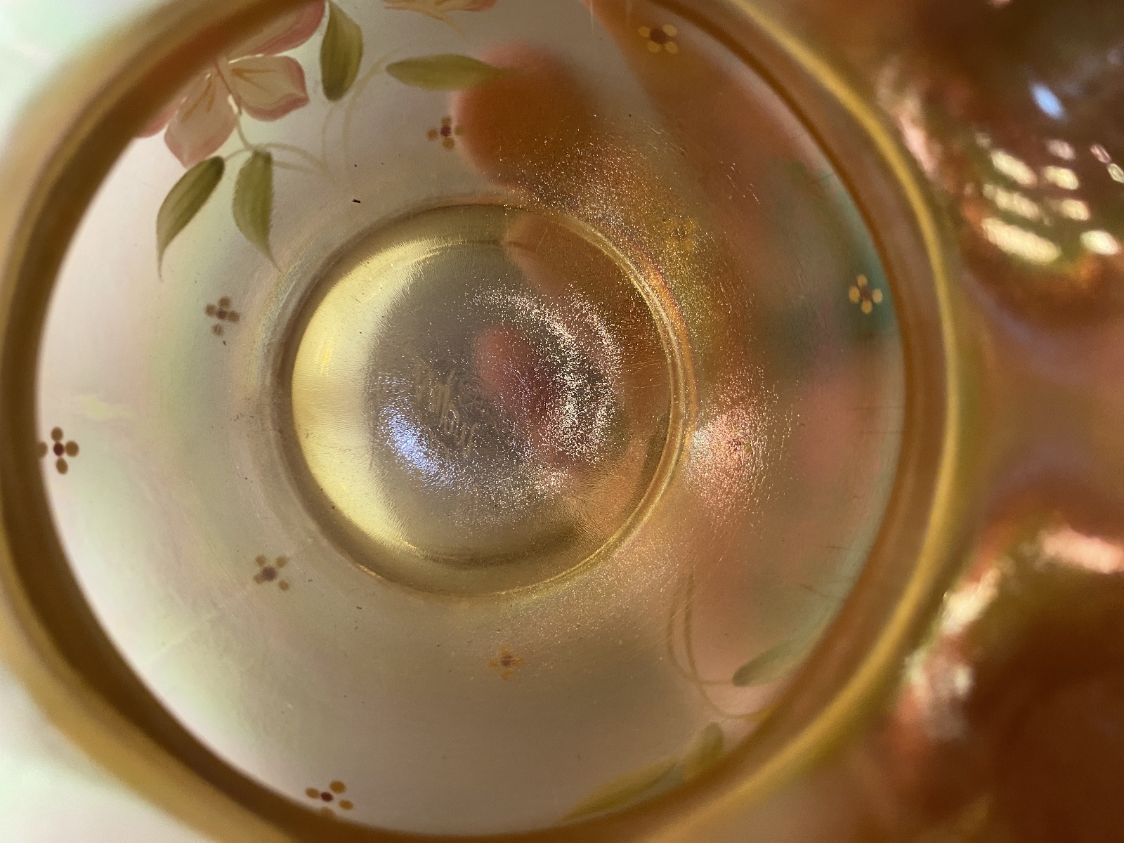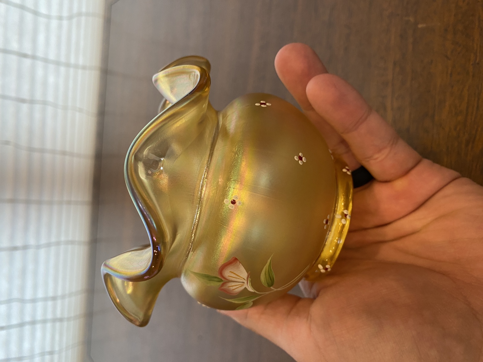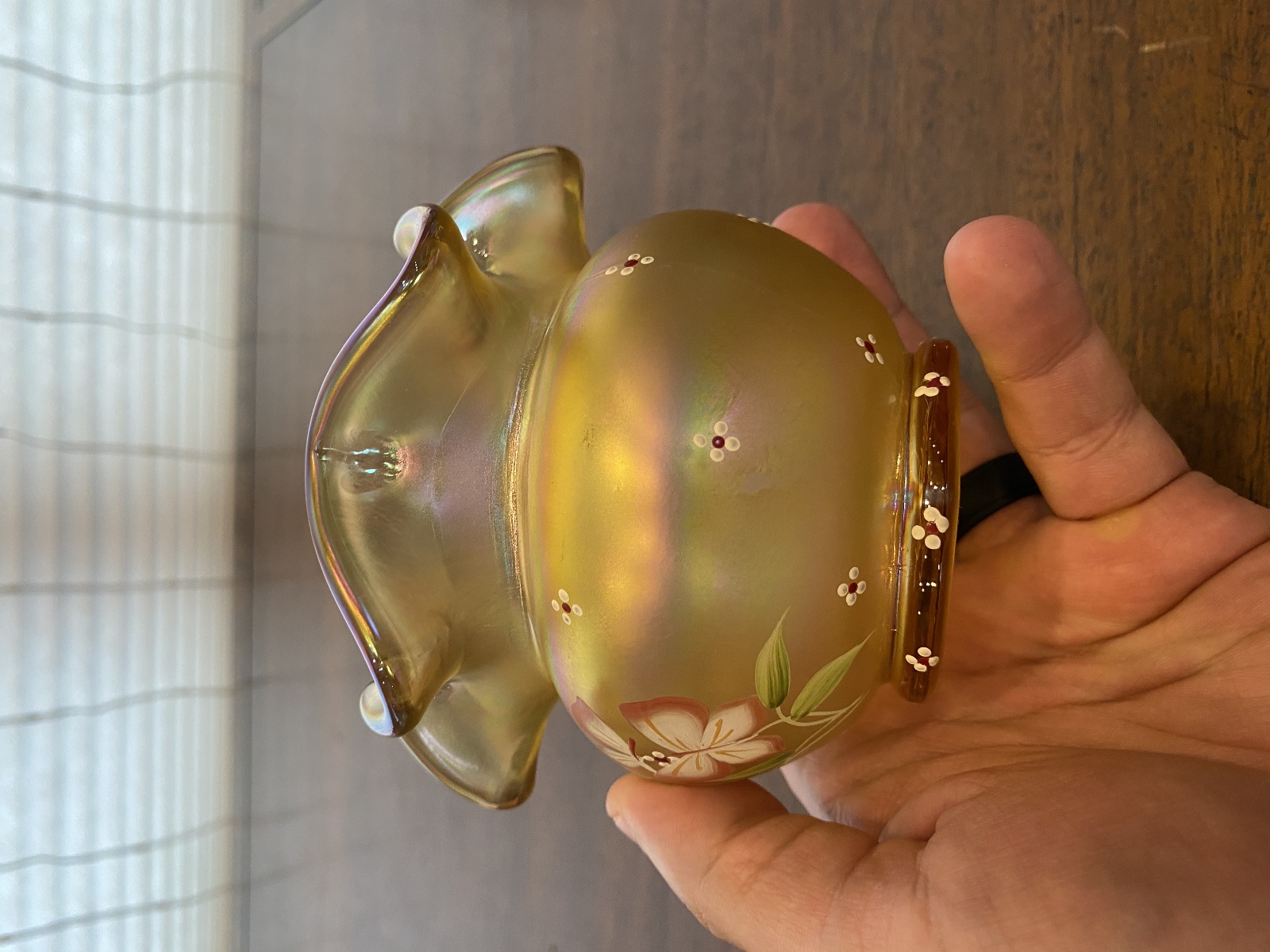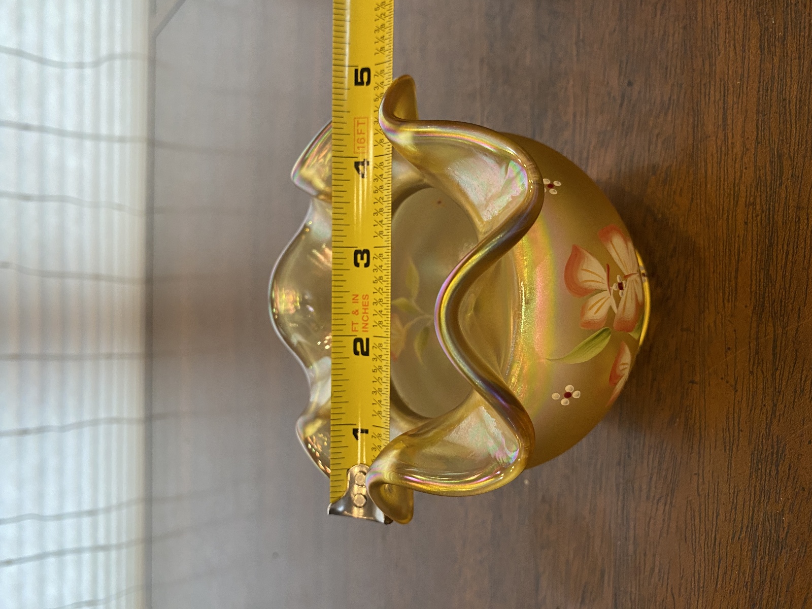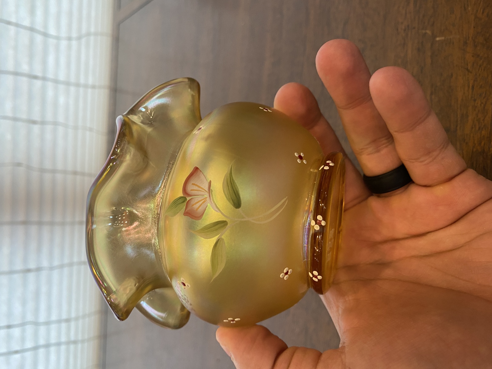 FENTON Gold Iridescent BUTTERFLY GARDEN Rose Bowl Vase 3.75"H SIGNED/PAINTED