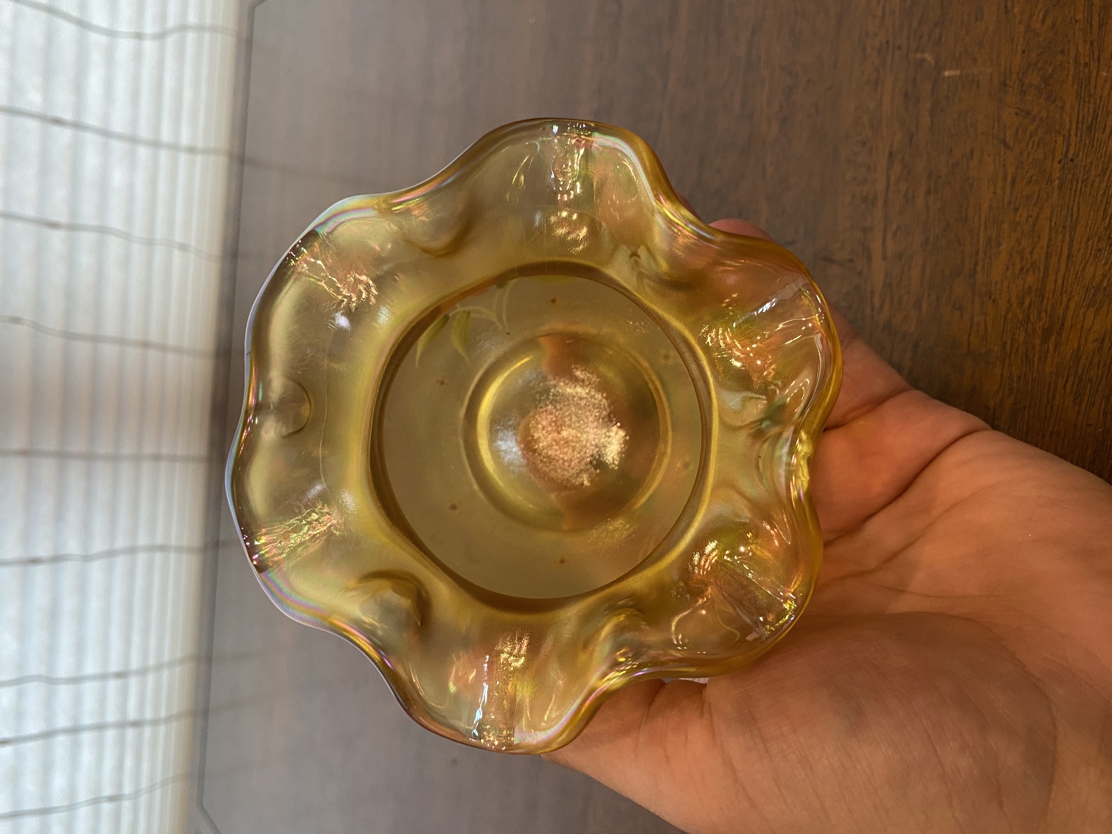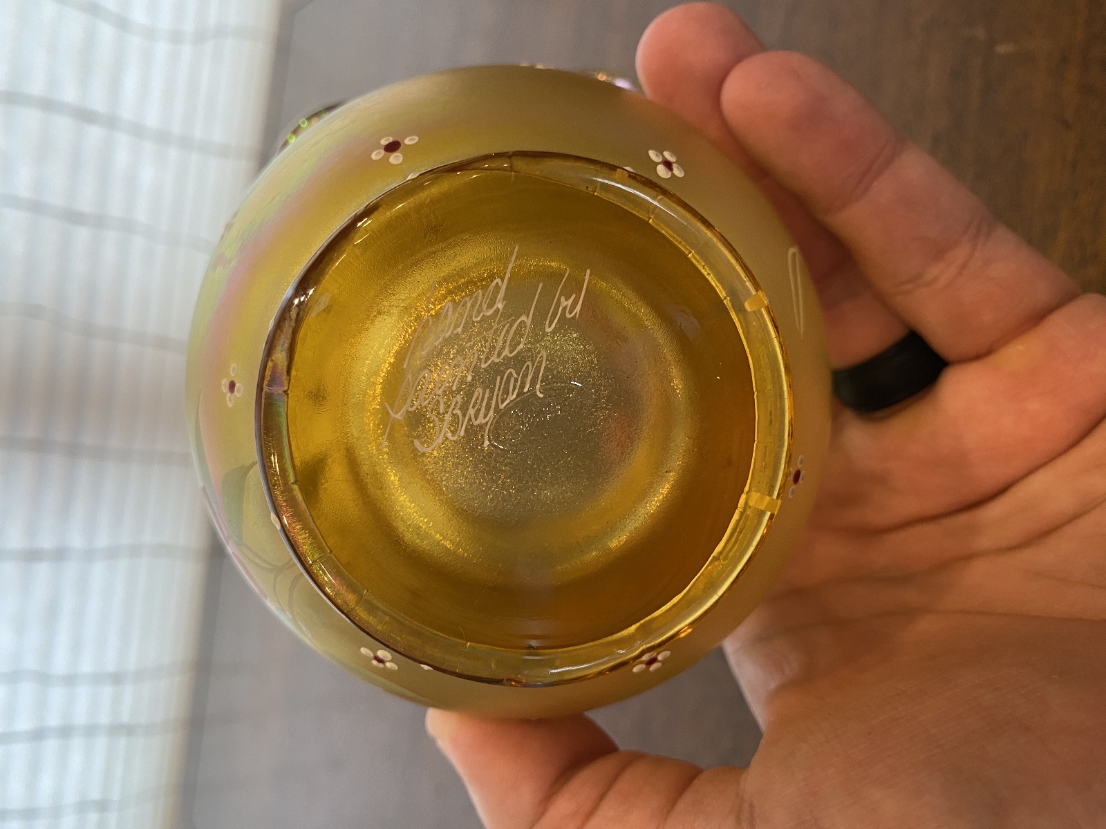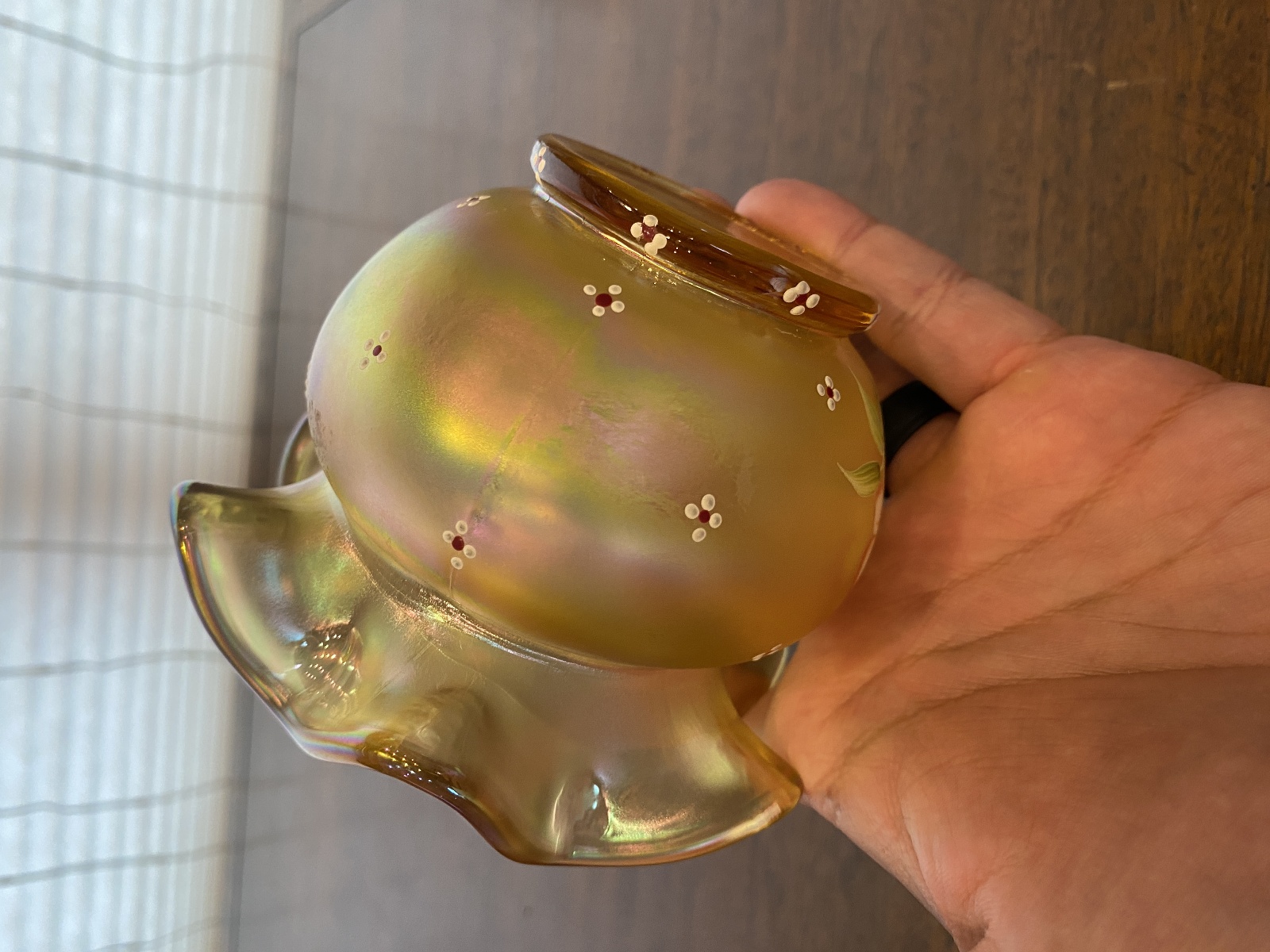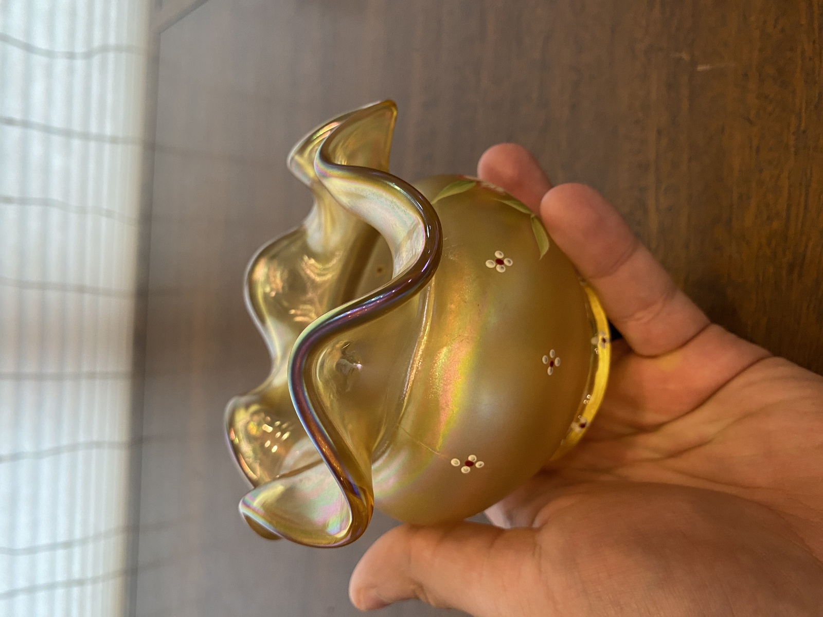 FENTON Gold Iridescent BUTTERFLY GARDEN Rose Bowl Vase 3.75"H SIGNED/PAINTED