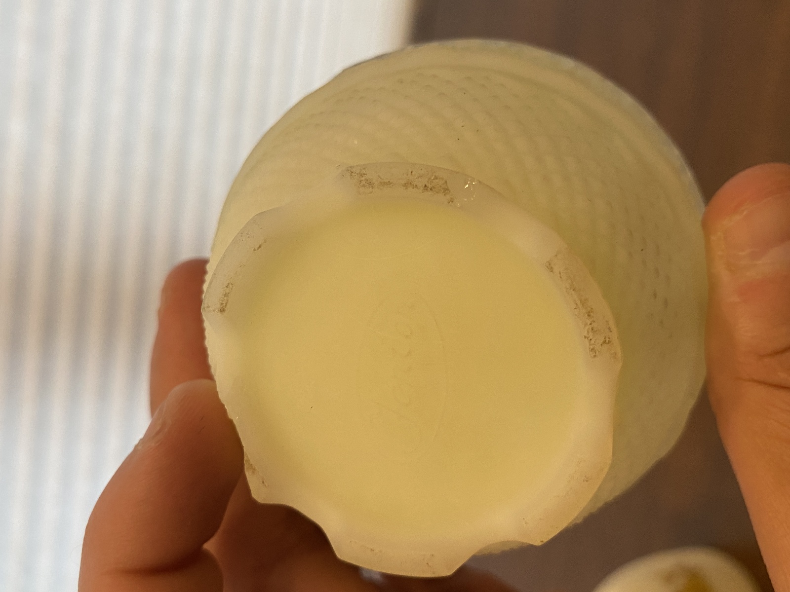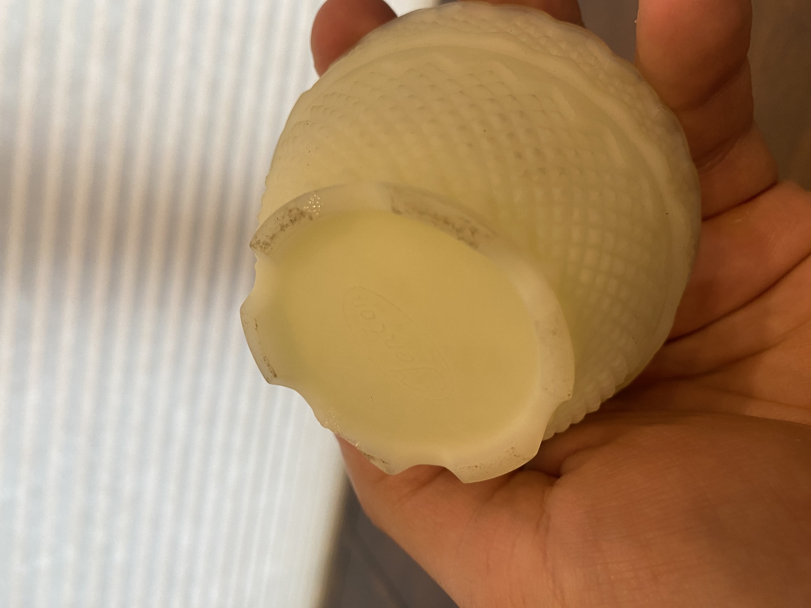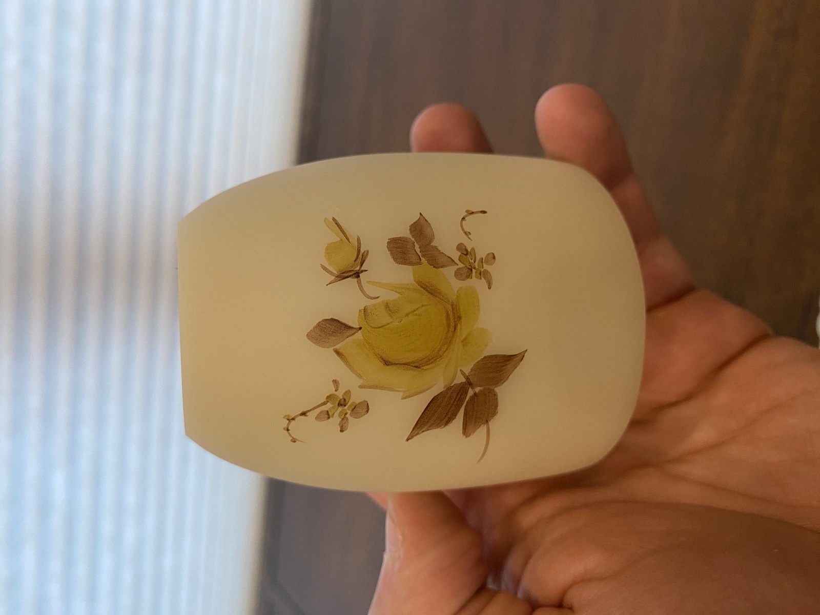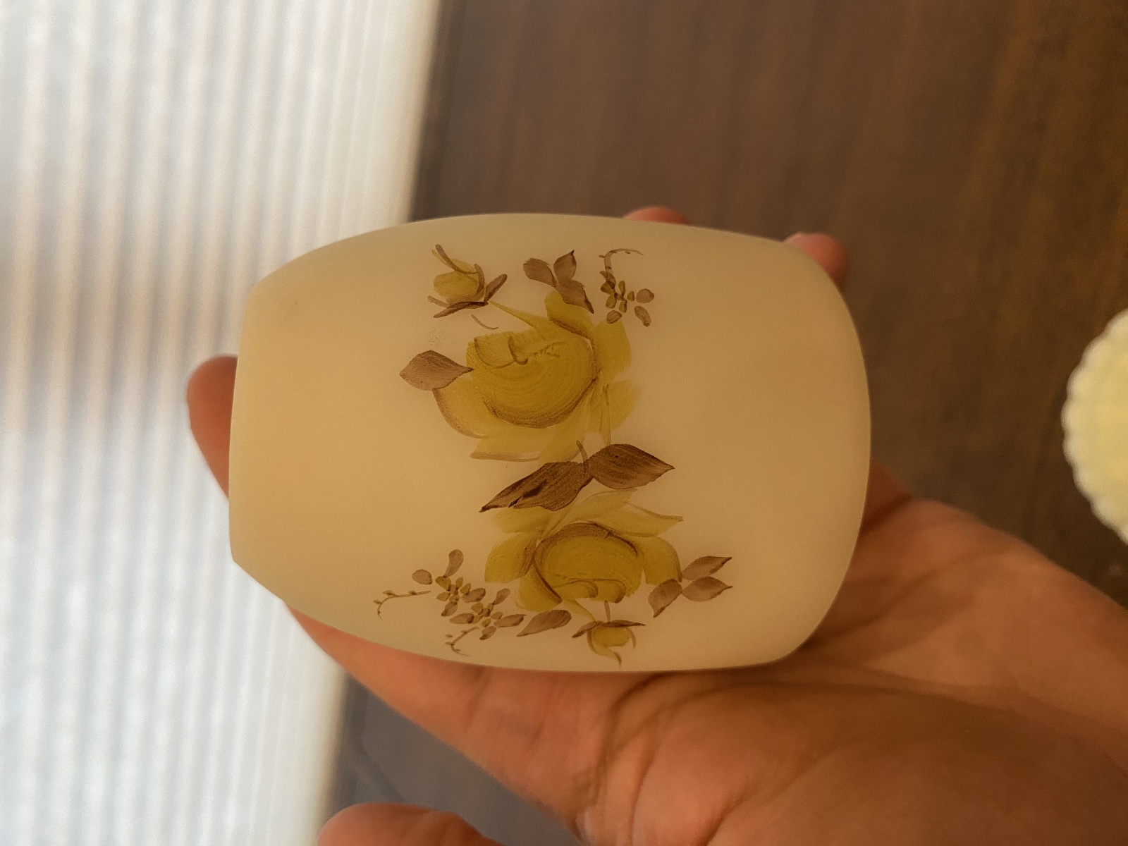 VTG FENTON Yellow Custard Satin Floral Glass Fairy Lamp PAINTED/SIGNED 4.5"H