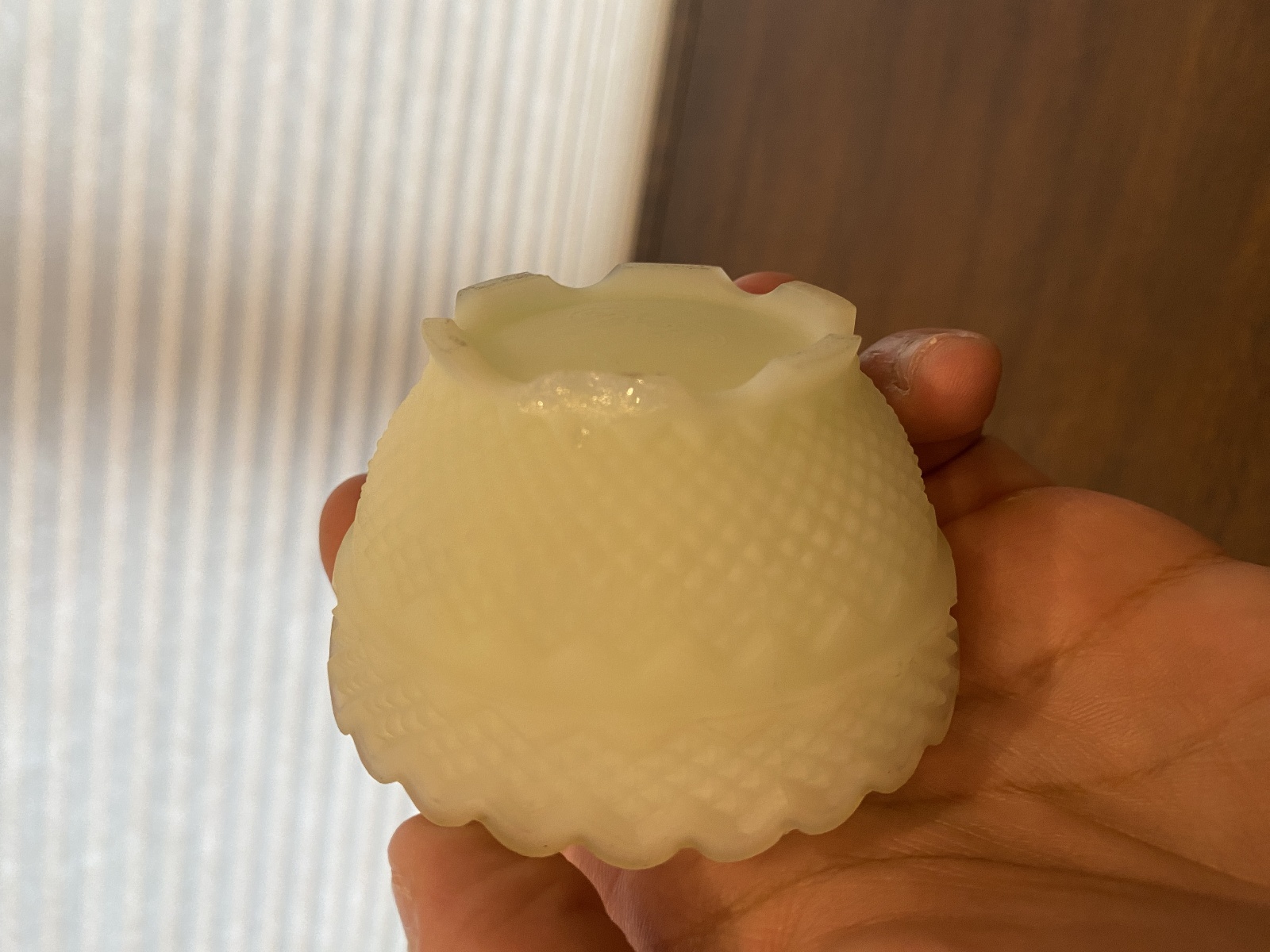 DAMAGED/FAIR CONDITION (PLEASE NOTE THAT THE BASE PIECE HAS CHIPS ON THE BOTTOM, AND SOME RESIDUE ON THE INSIDE, NOTED IN THE PHOTOS) (The top piece has very tiny hard to see bite marks along the rim (common in these pieces with age) and light scratching from age. (Would still make for a good display piece) (Please refer back to the photos for condition and feel free to message me if you have any questions. Thank you)