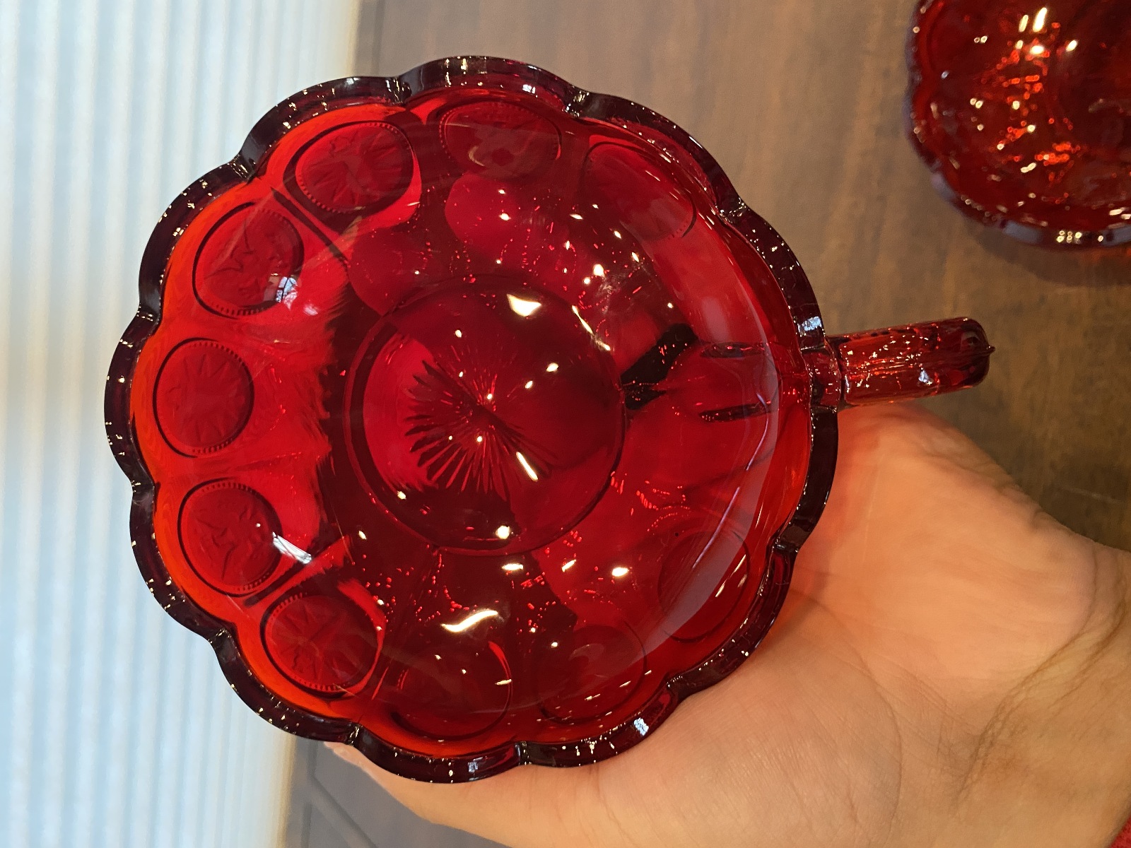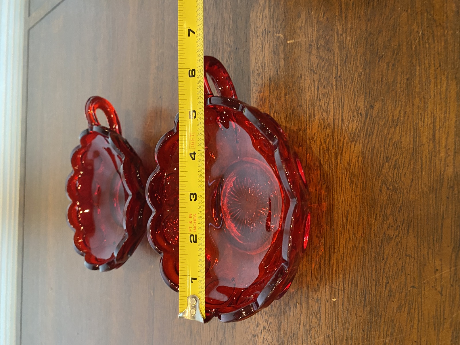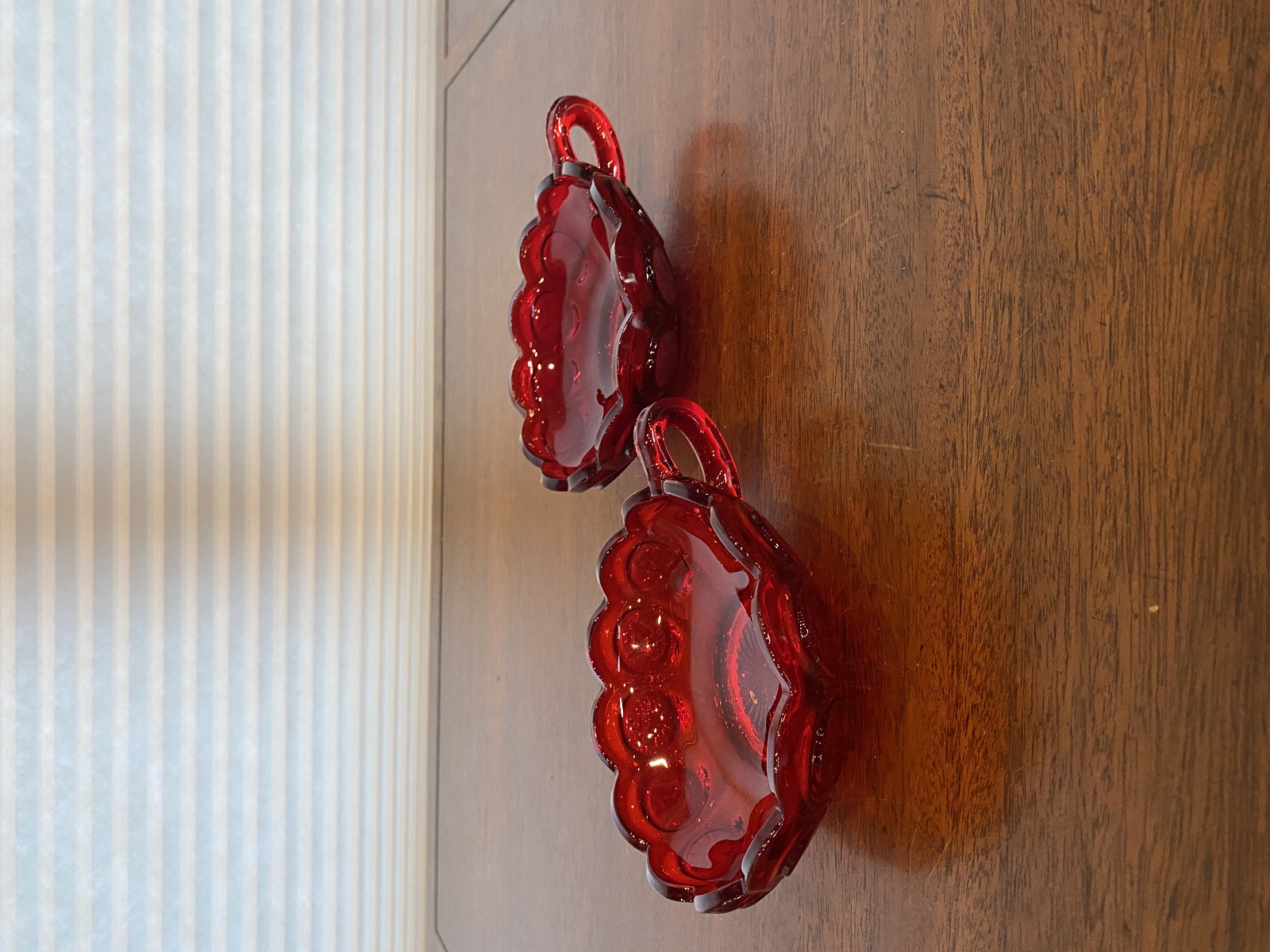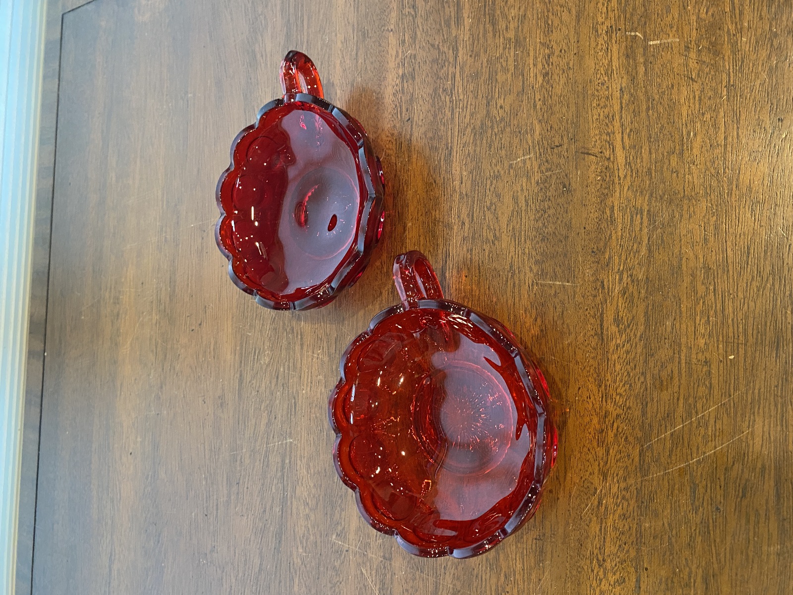 SET(2) VTG Fostoria Ruby Red Coin Glass Scalloped Edge Candy Dishes