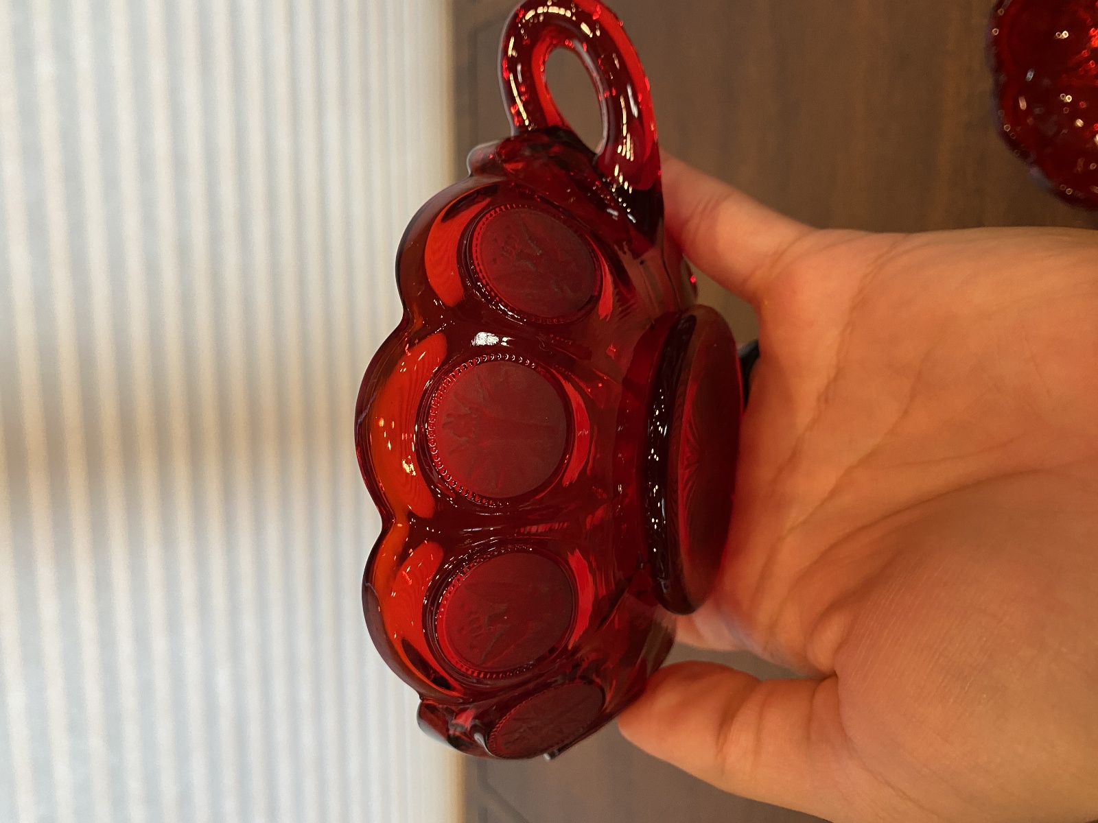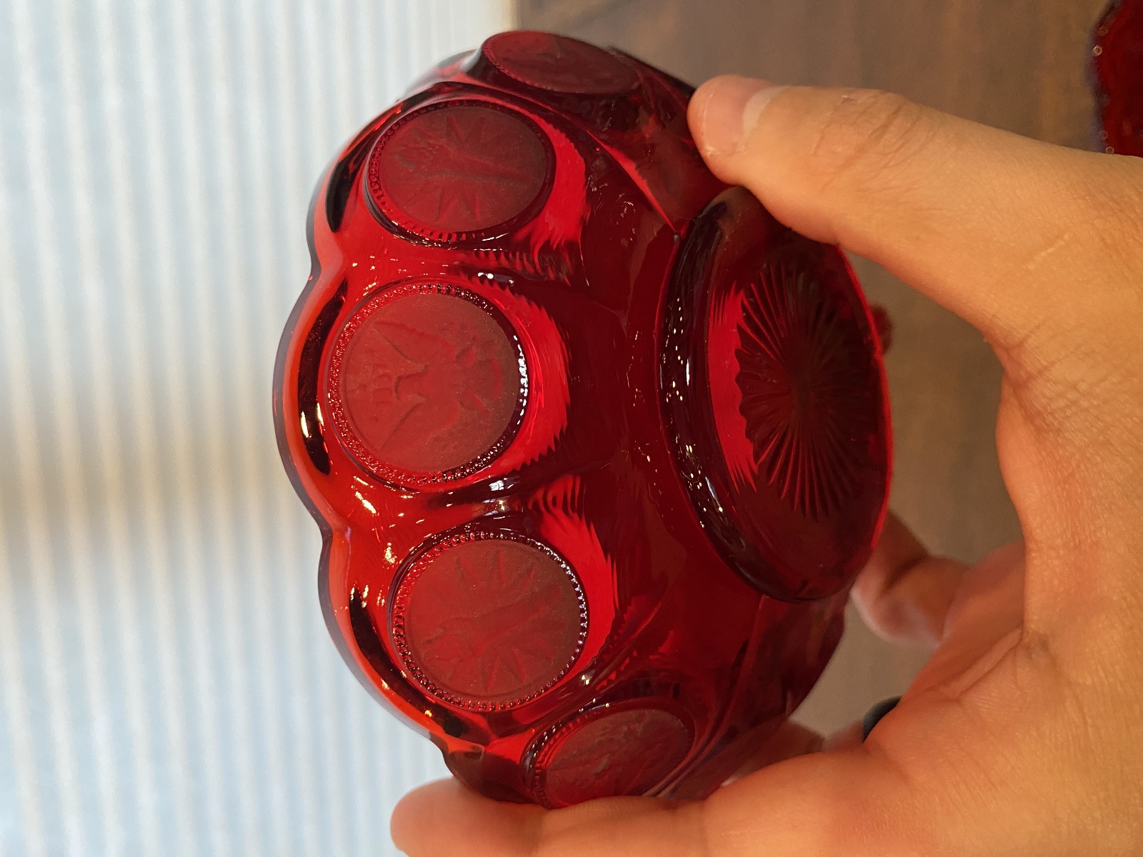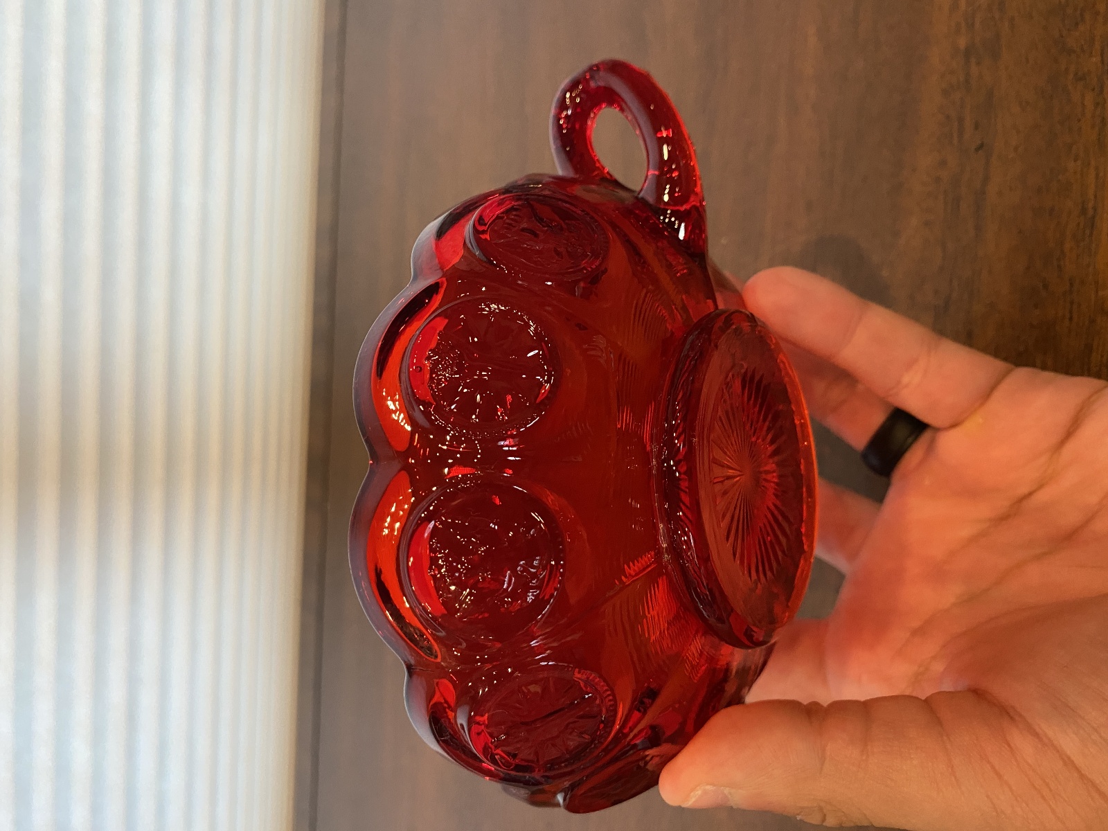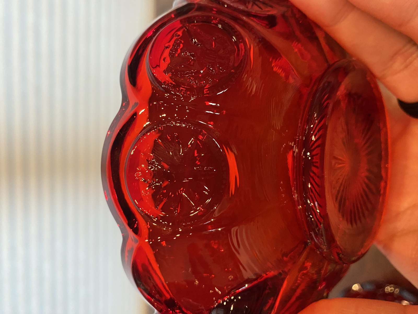 SET(2) VTG Fostoria Ruby Red Coin Glass Scalloped Edge Candy Dishes
