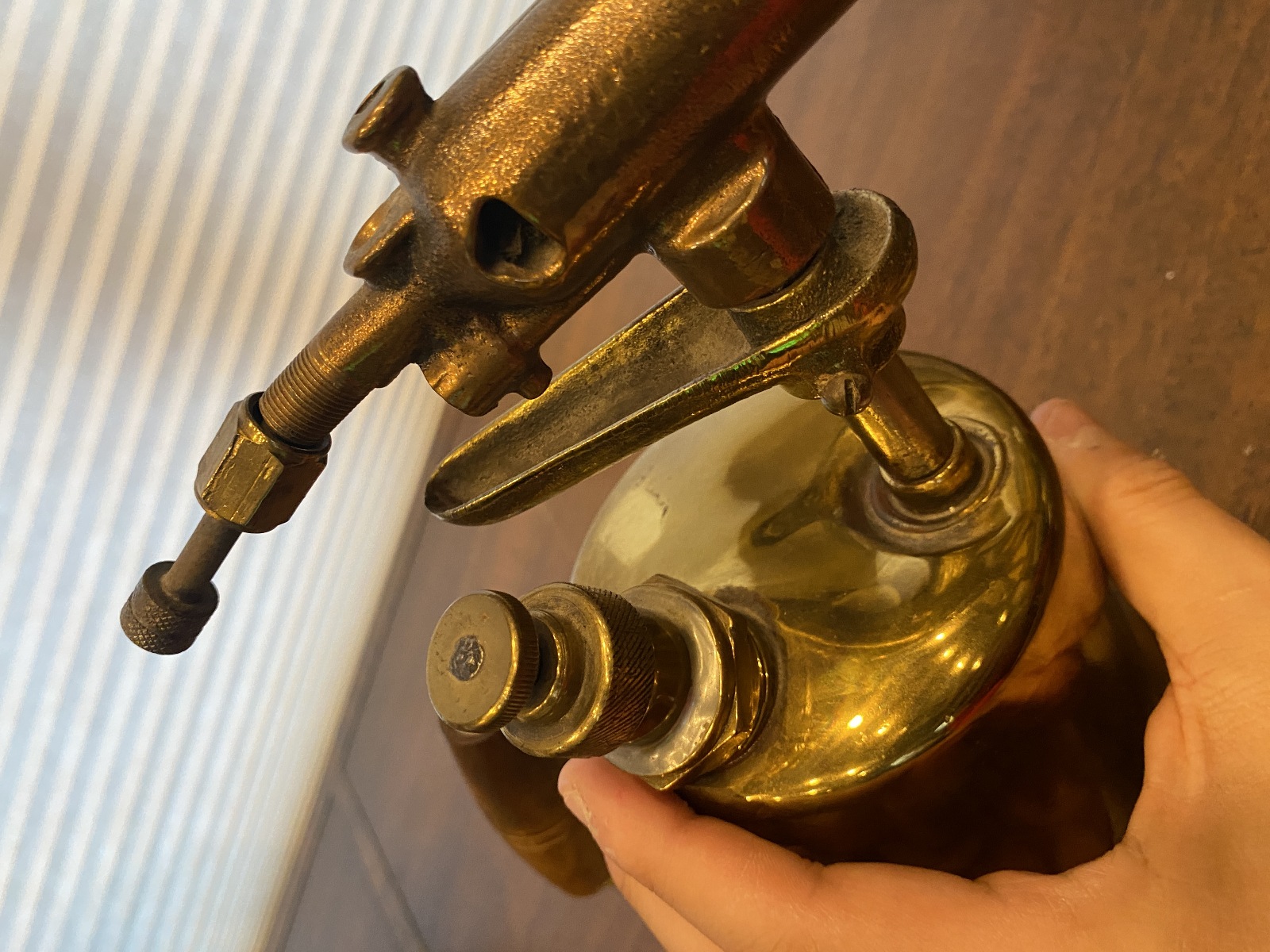 VTG Brass Blow Torch W/Wooden Handle 10"H