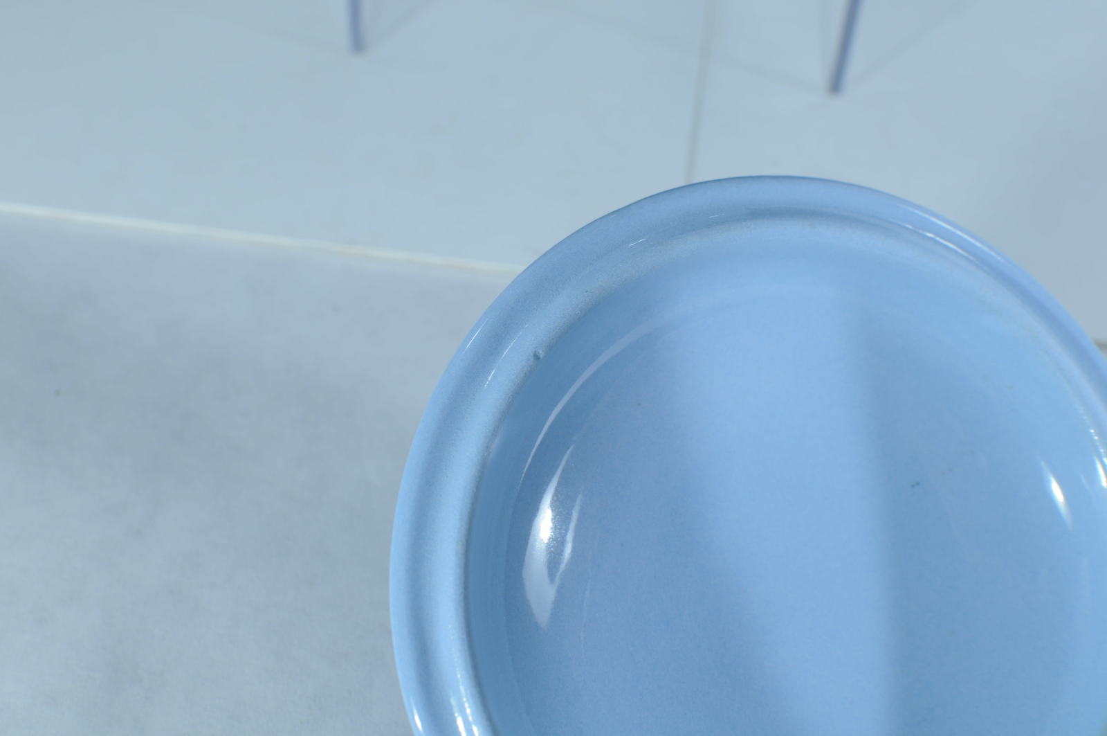 SKU: KC1-1197VTG Homer Laughlin Lidded Sugar Bowl Skytone Blue 4.75"W Tiny nick on underside of lid. Barely noticeable. Otherwise no chips cracks or crazing. See photos for details.