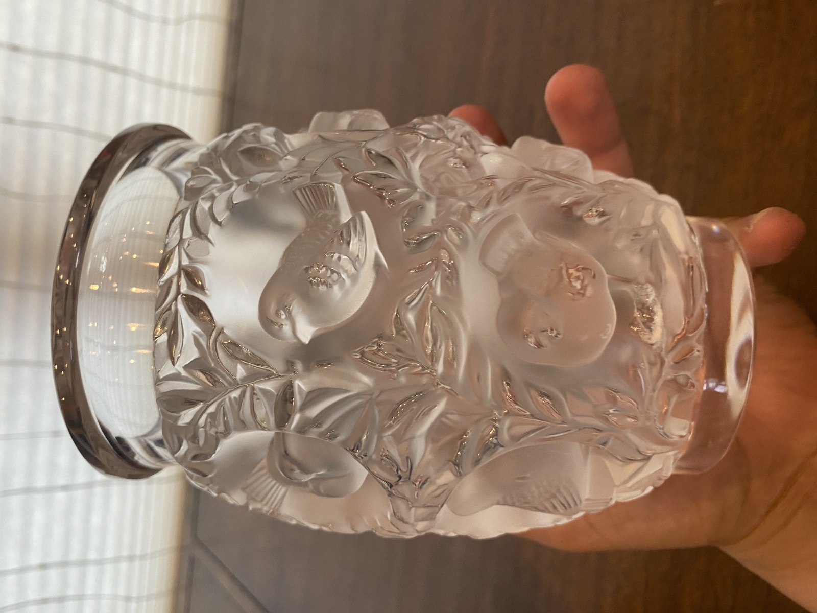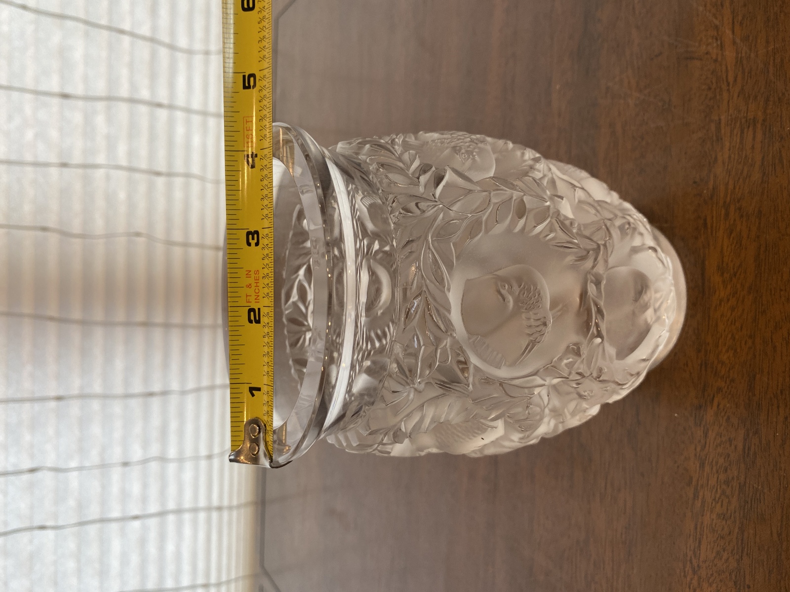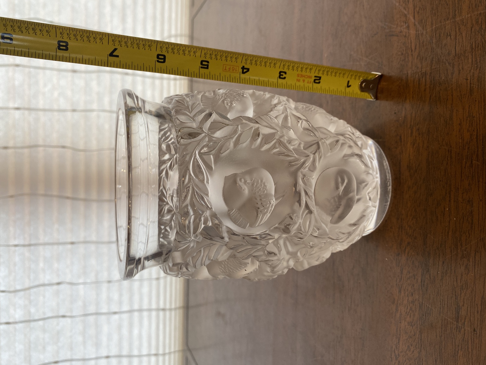 VTG LALIQUE Frosted Crystal BAGATELLE Birds Vase SIGNED 6.75"H FRANCE