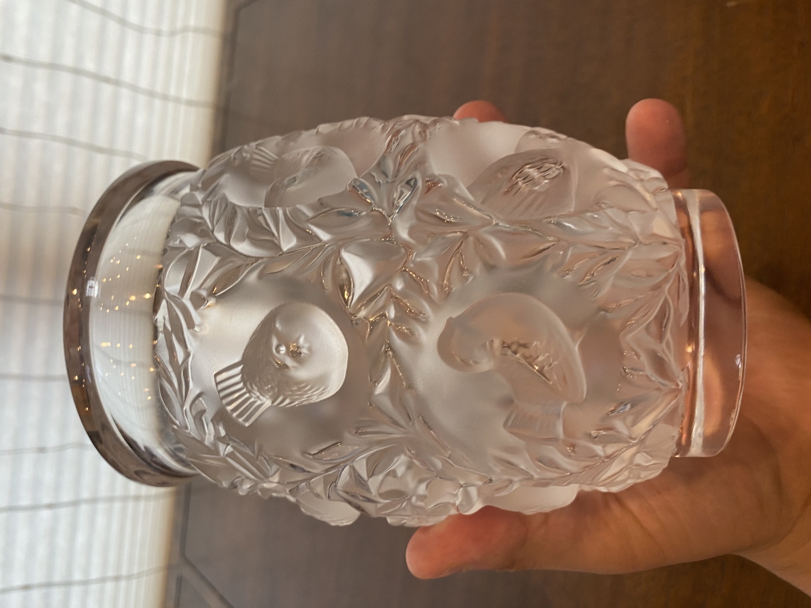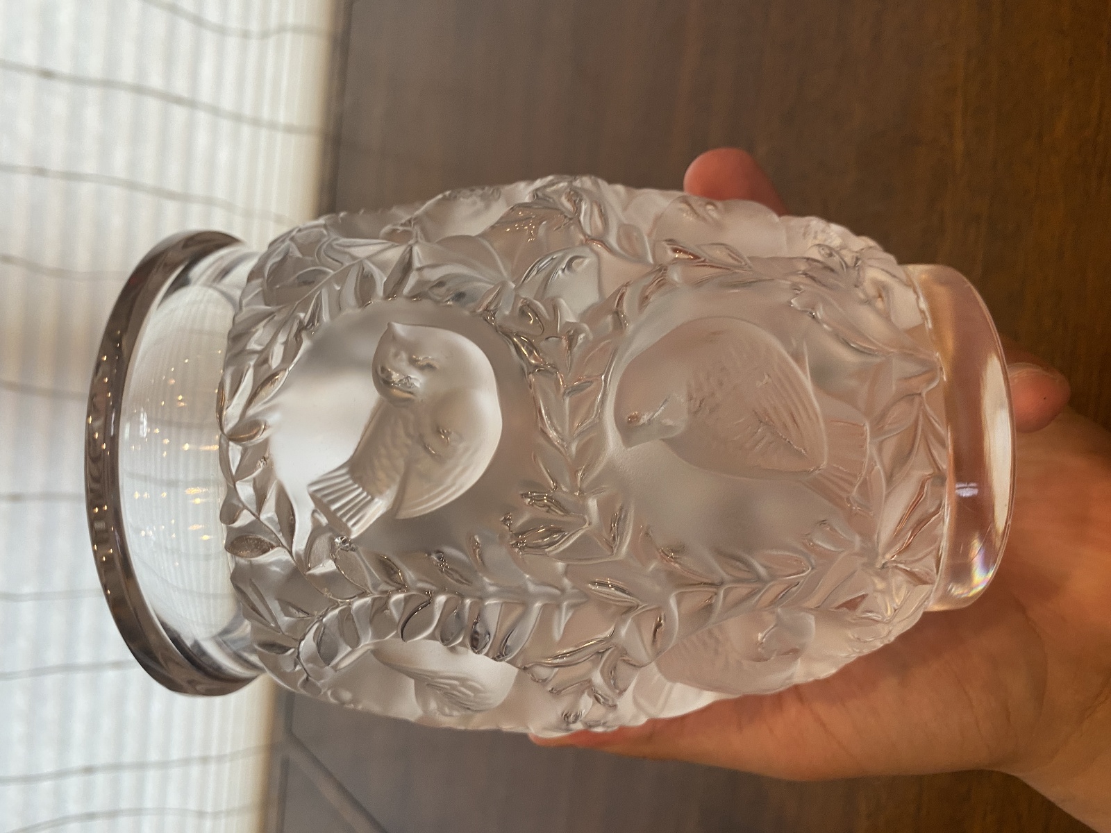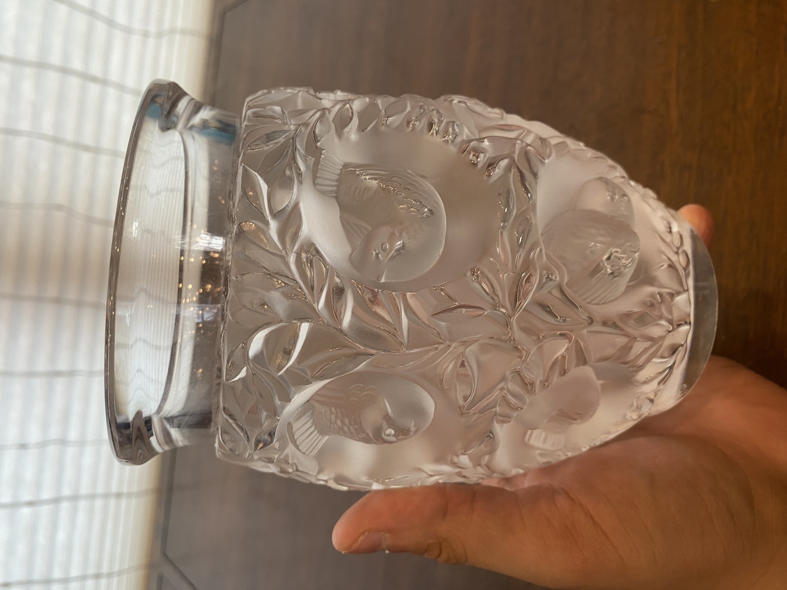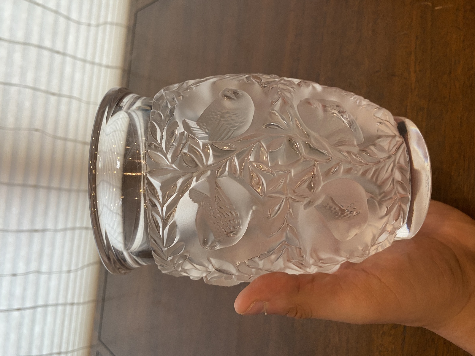 VTG LALIQUE Frosted Crystal BAGATELLE Birds Vase SIGNED 6.75"H FRANCE