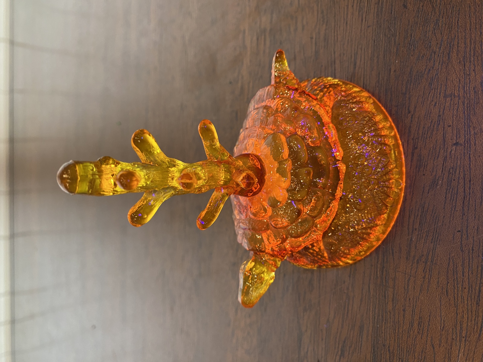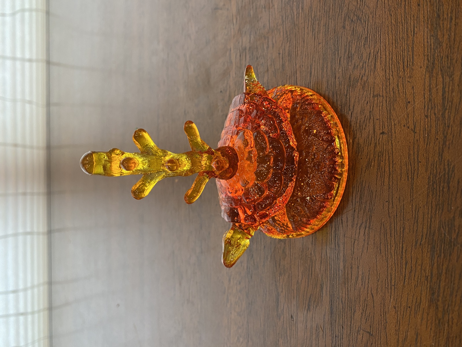 VTG UV REACTIVE FENTON Amberina Turtle Tree Ring Holder Dish W/LABEL 3.75"H