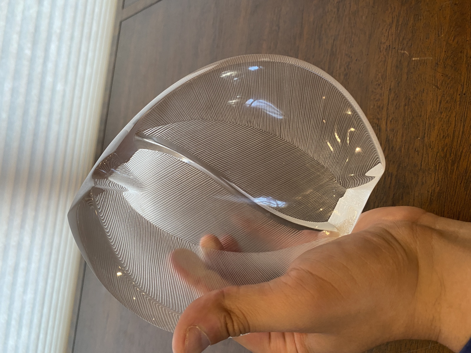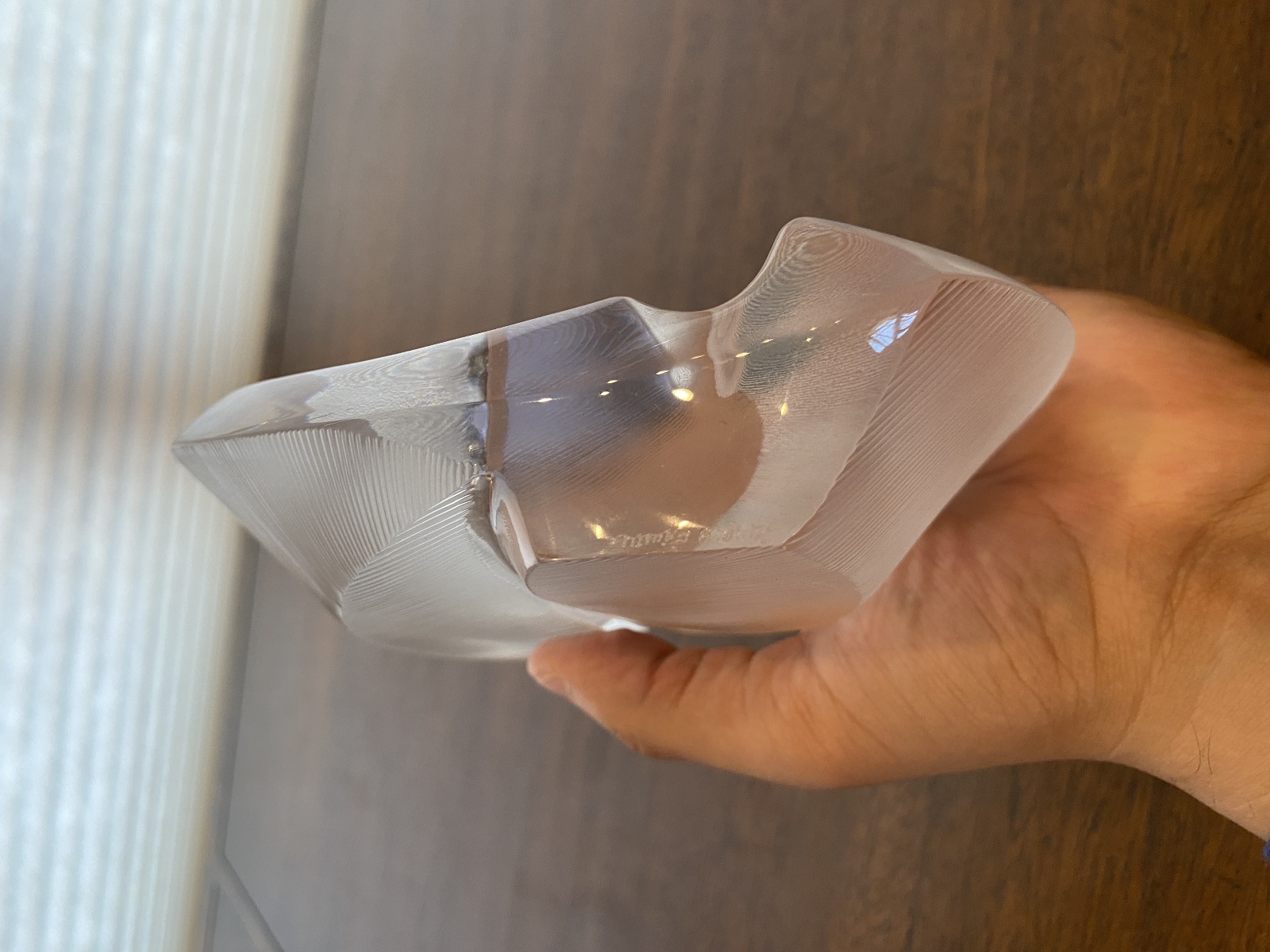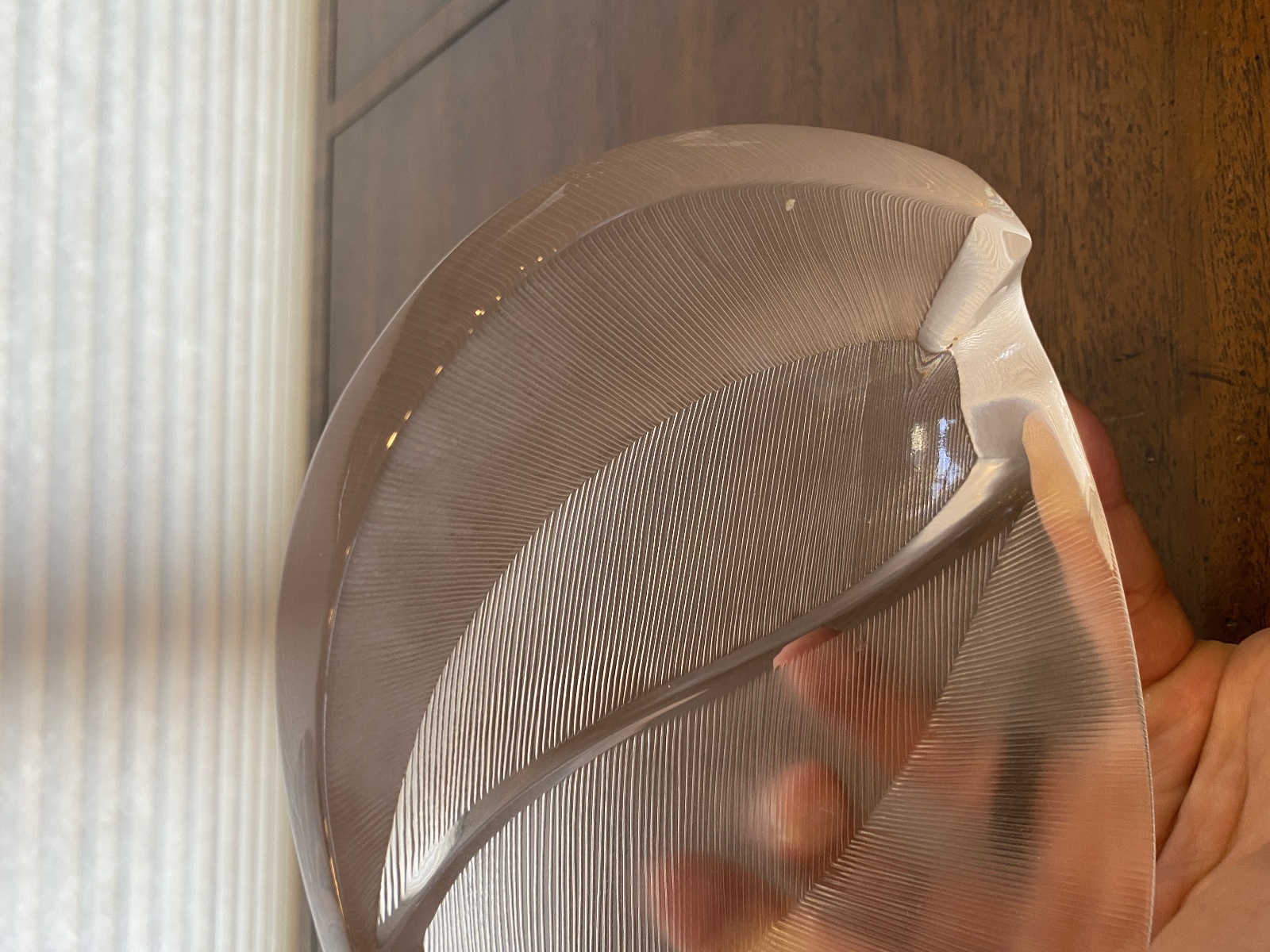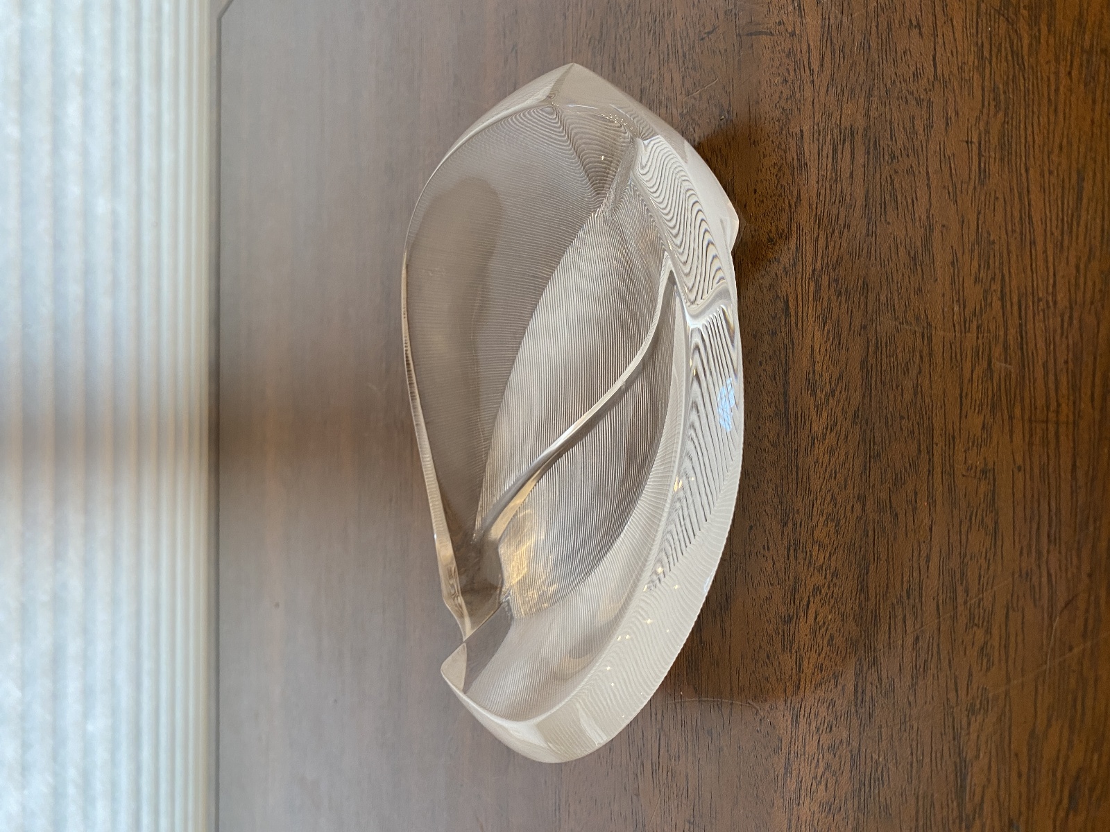 VTG LALIQUE Frosted Crystal PHILIPPINES Leaf Ashtray Bowl 7.25"L SIGNED, FRANCE