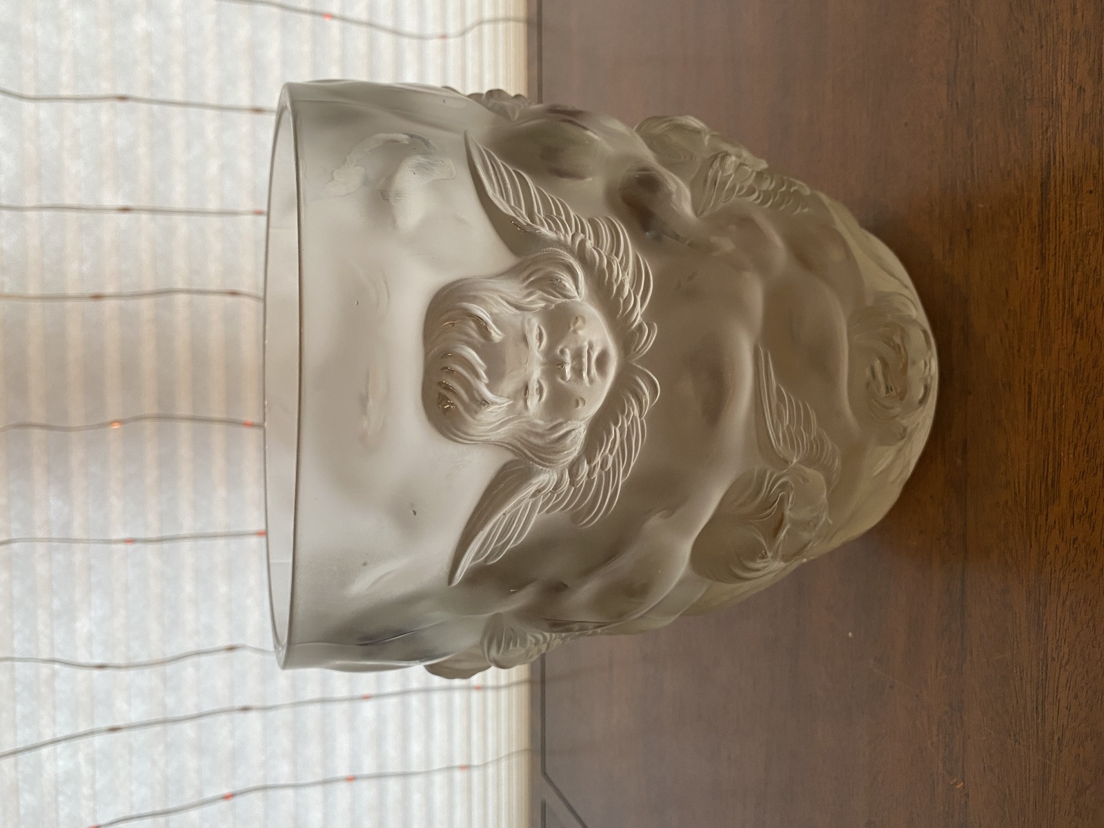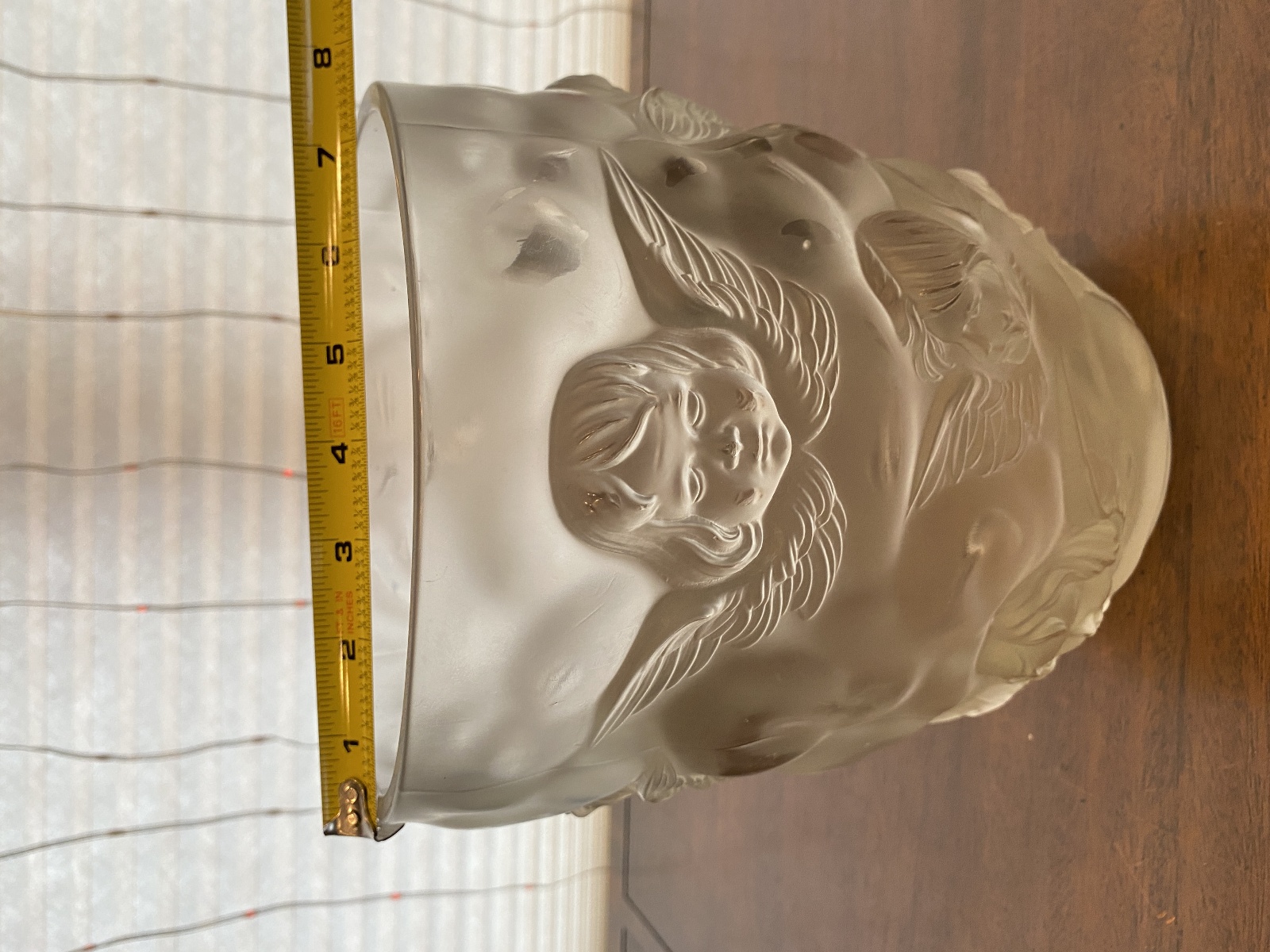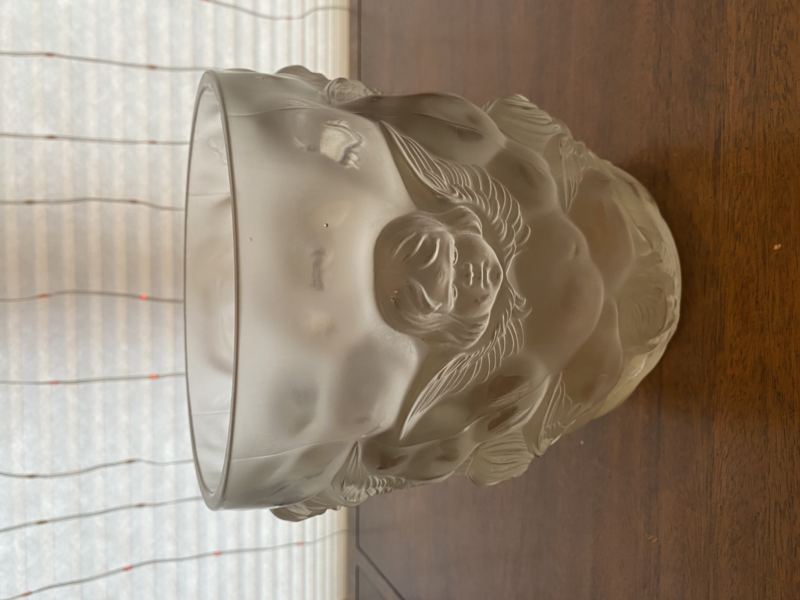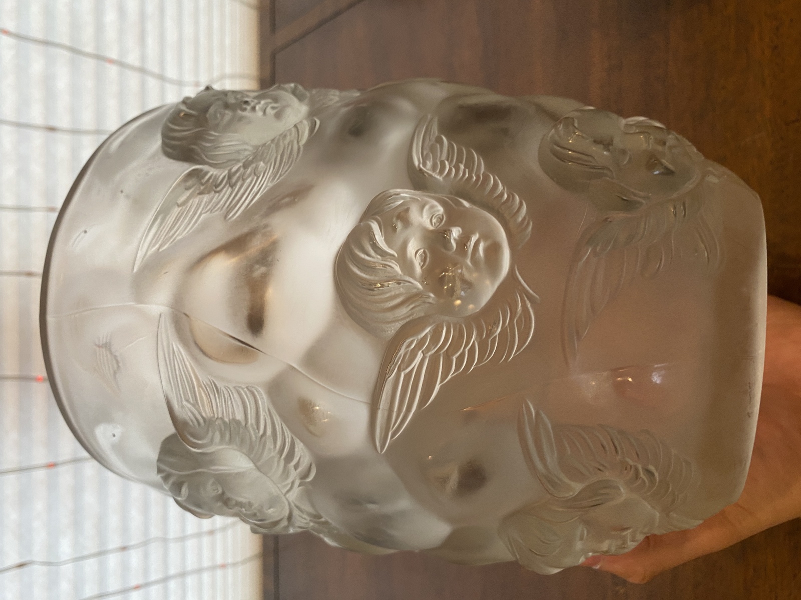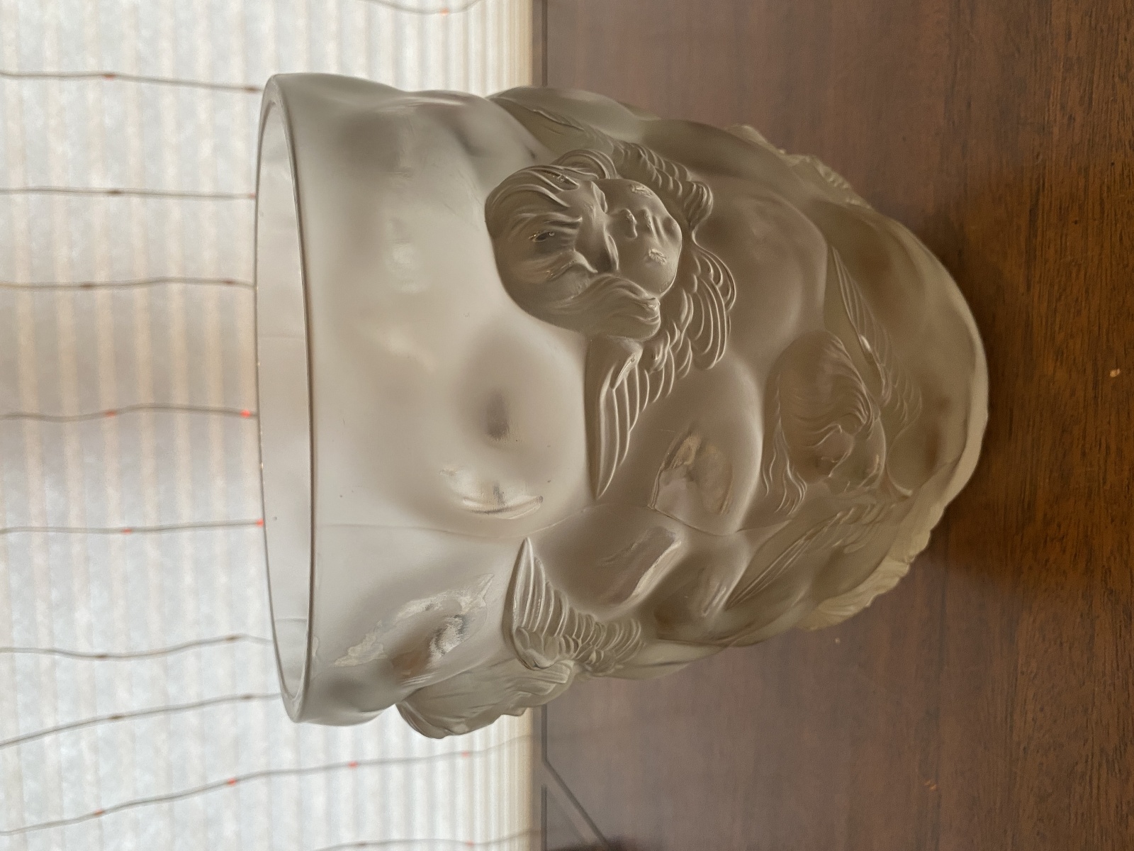 LARGE/HEAVY VTG LALIQUE-STYLE Frosted CHERUB/ANGEL Art Glass Vase 9"H
