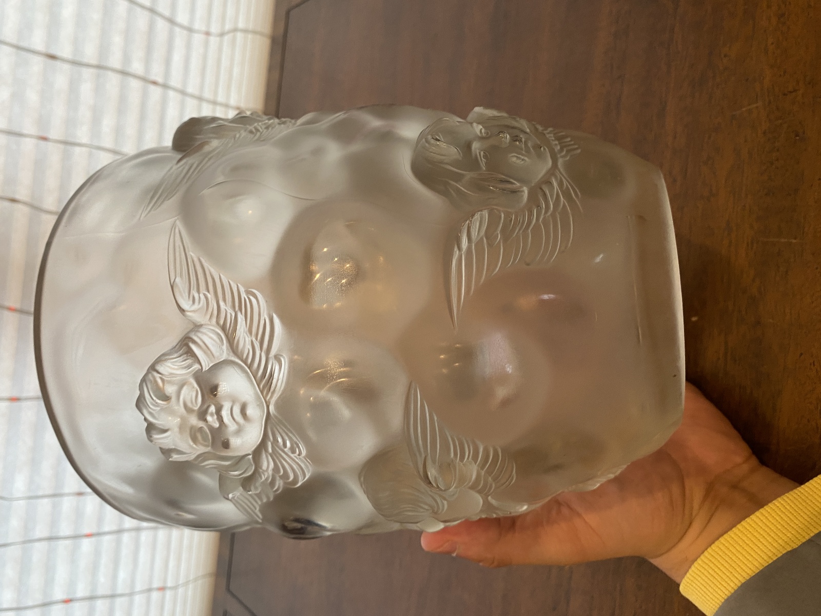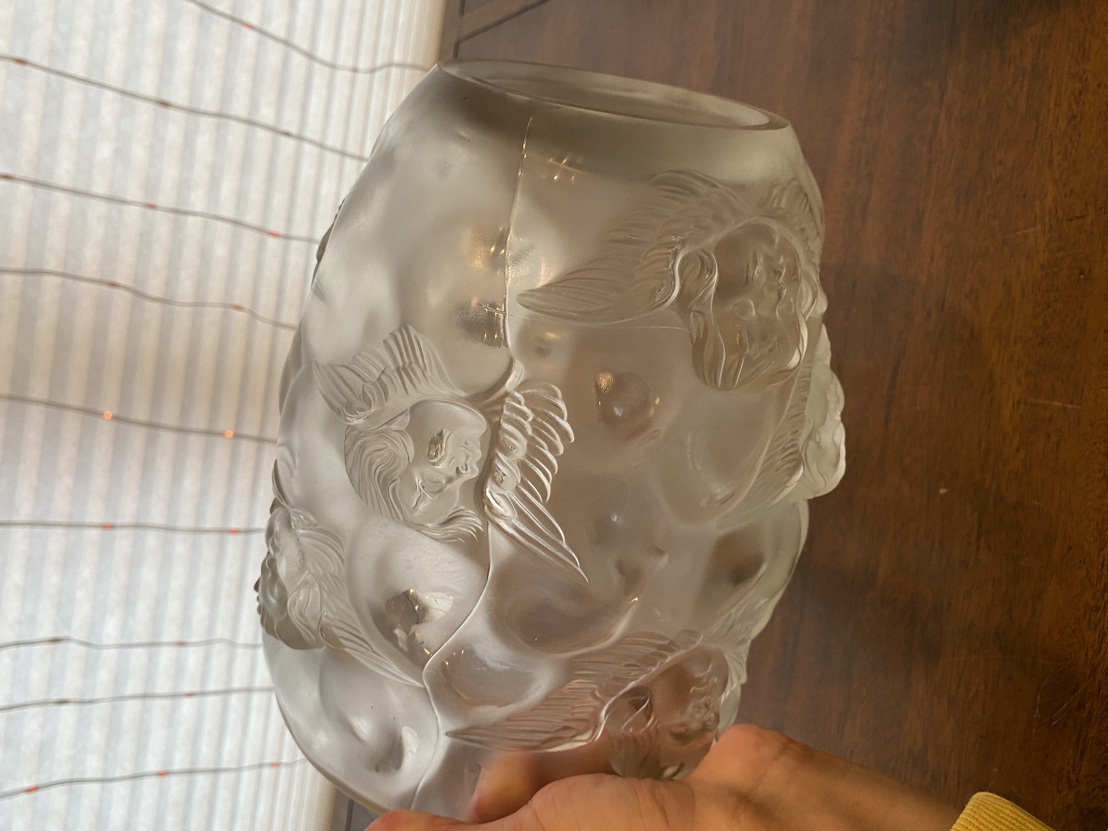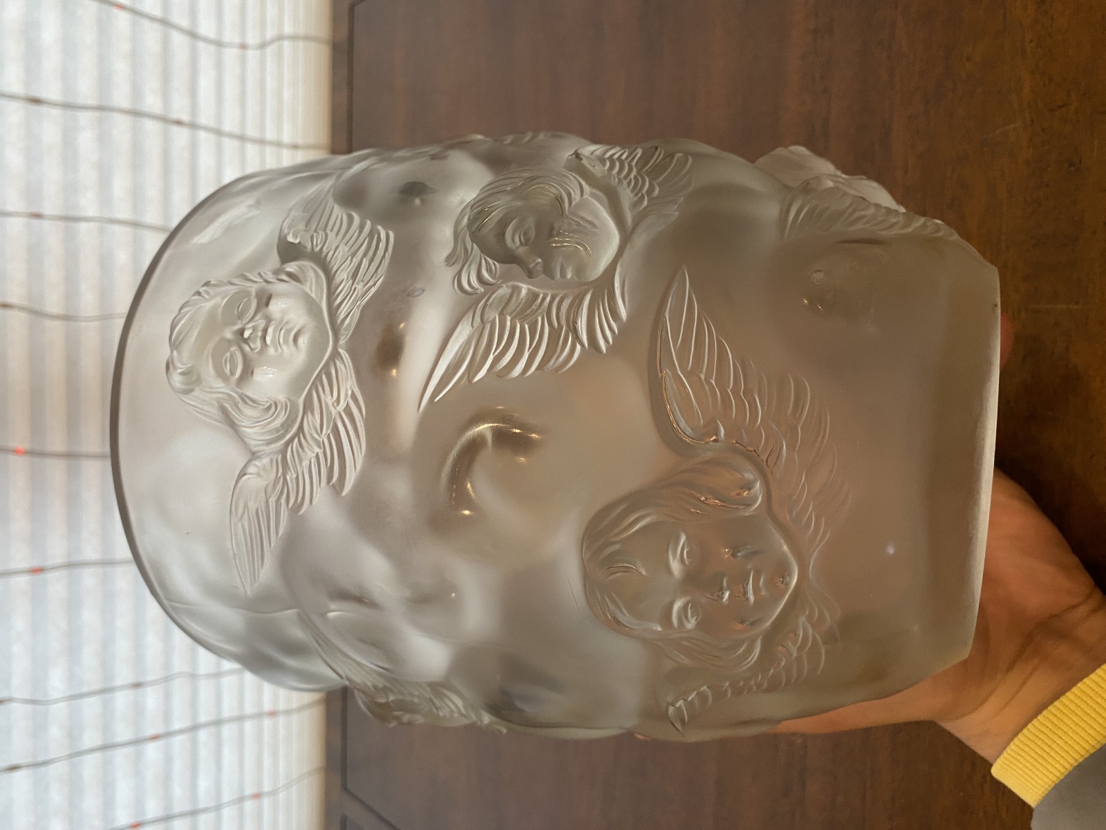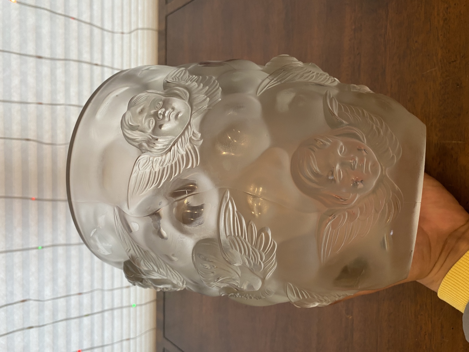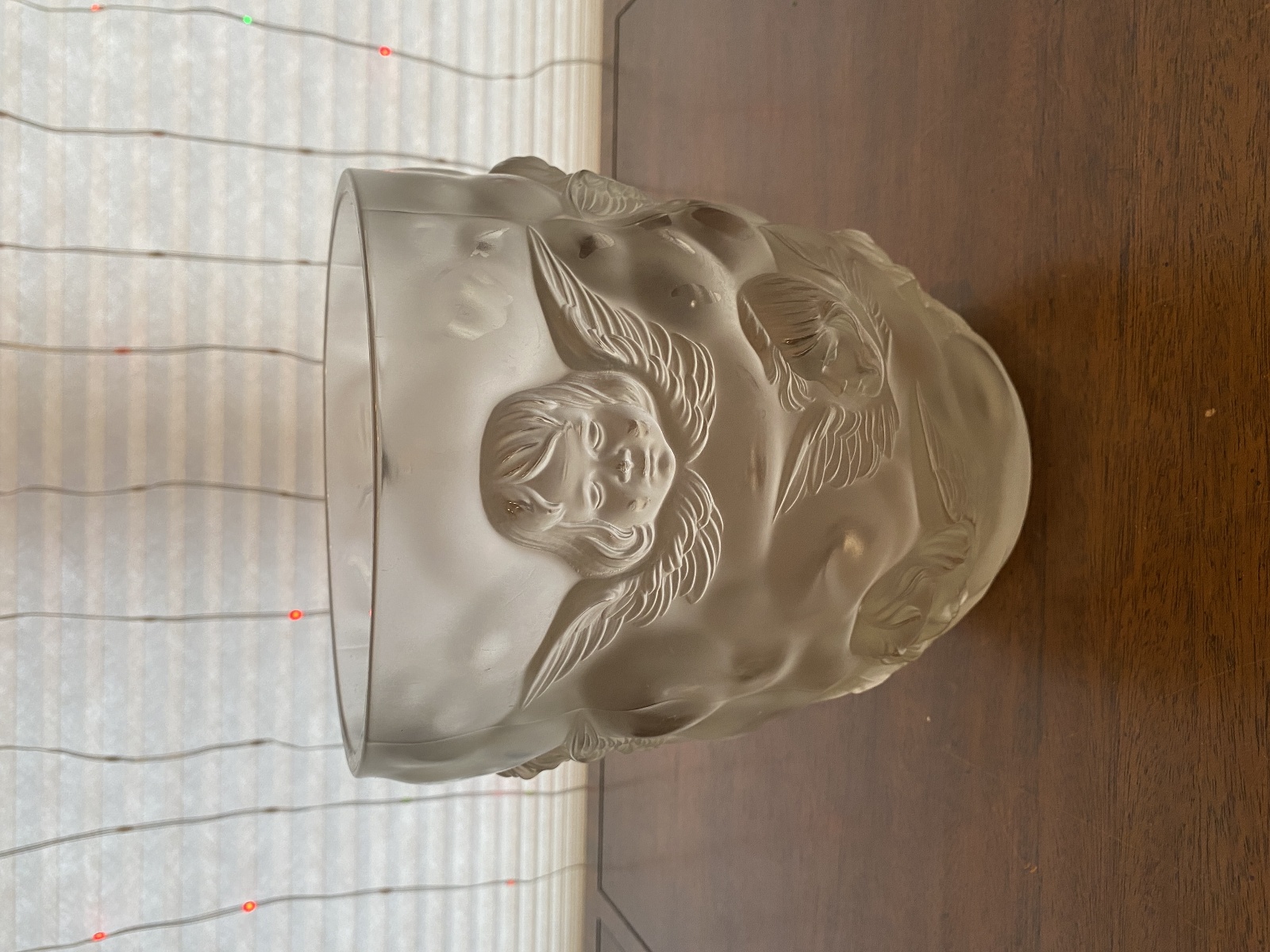 LARGE/HEAVY VTG LALIQUE-STYLE Frosted CHERUB/ANGEL Art Glass Vase 9"H