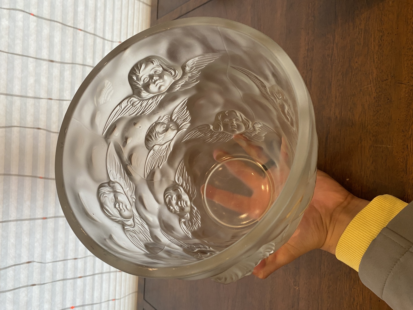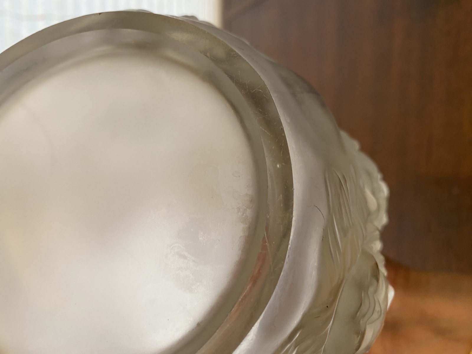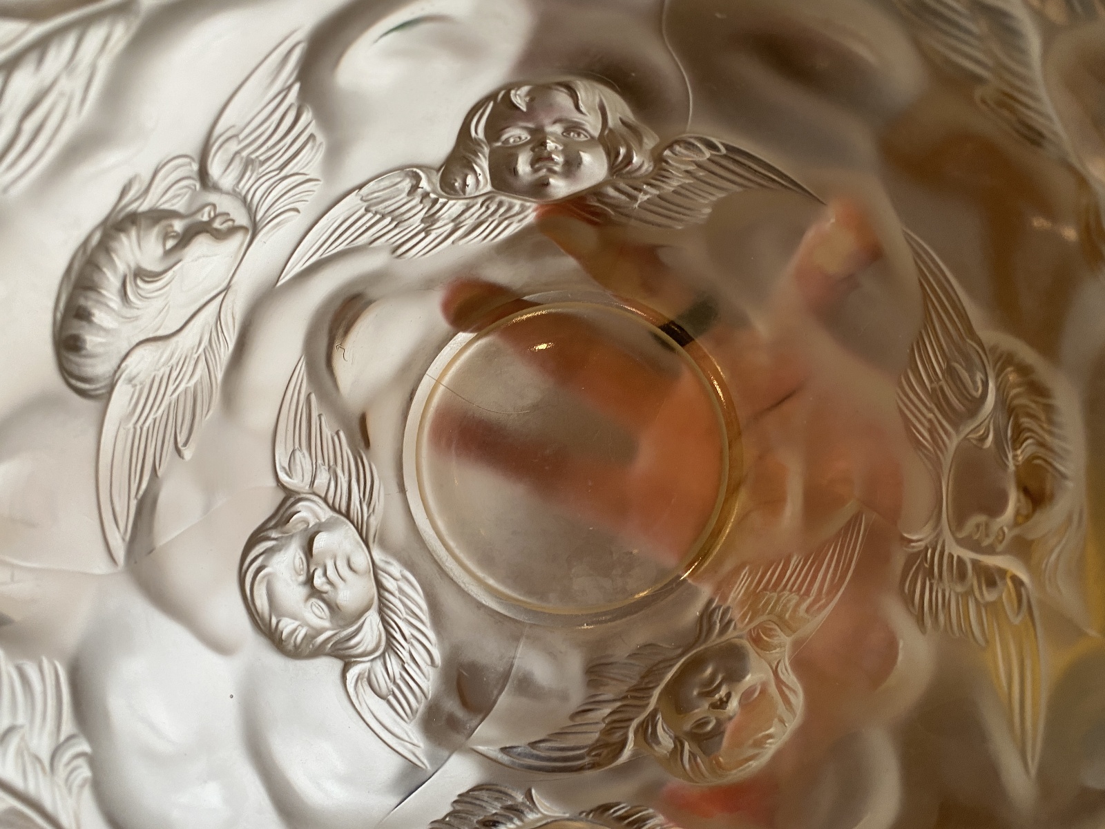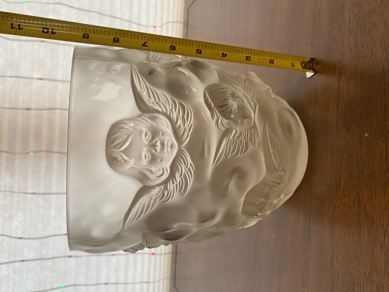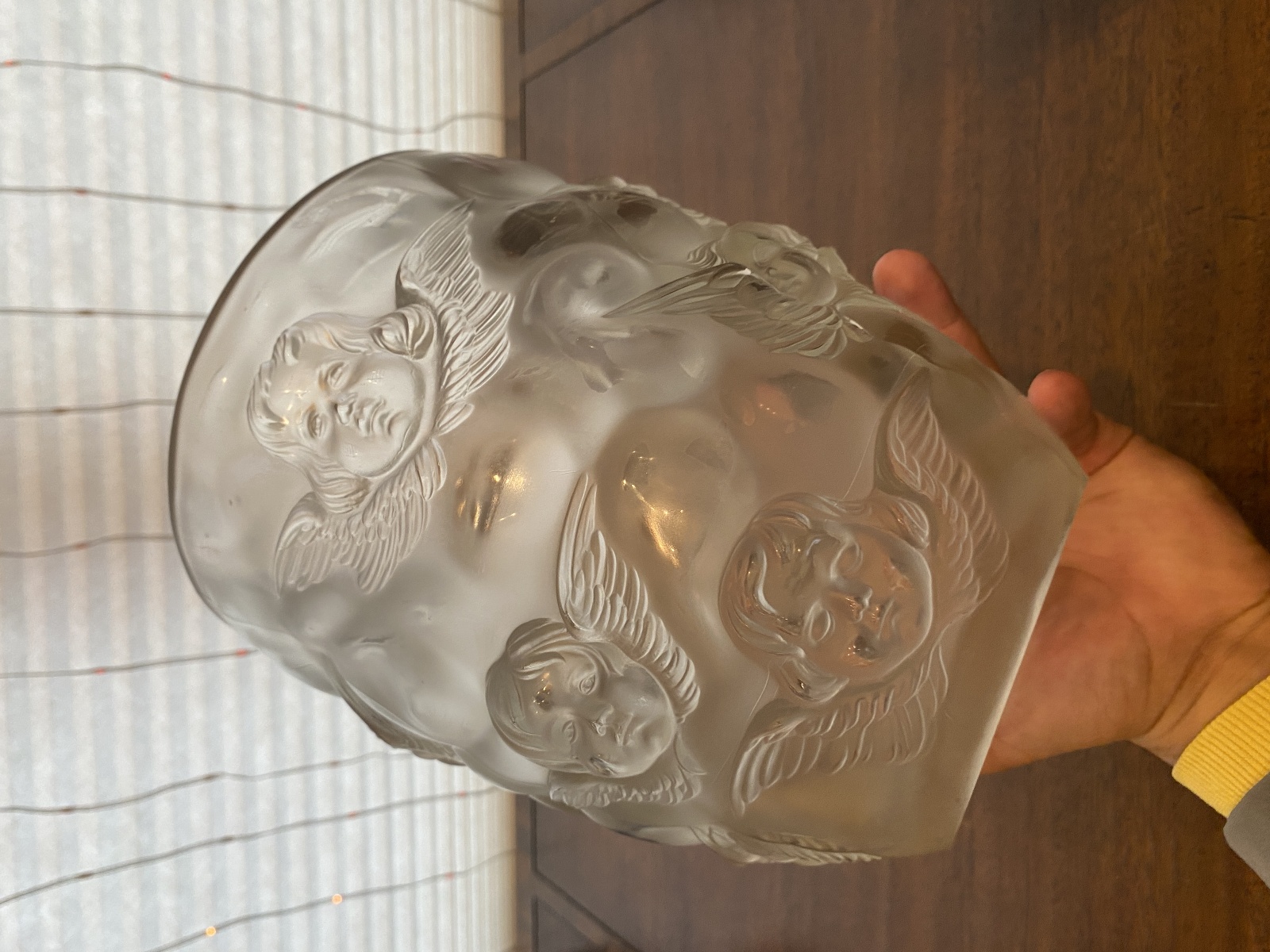 LARGE/HEAVY VTG LALIQUE-STYLE Frosted CHERUB/ANGEL Art Glass Vase 9"H