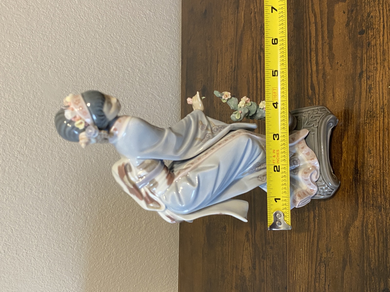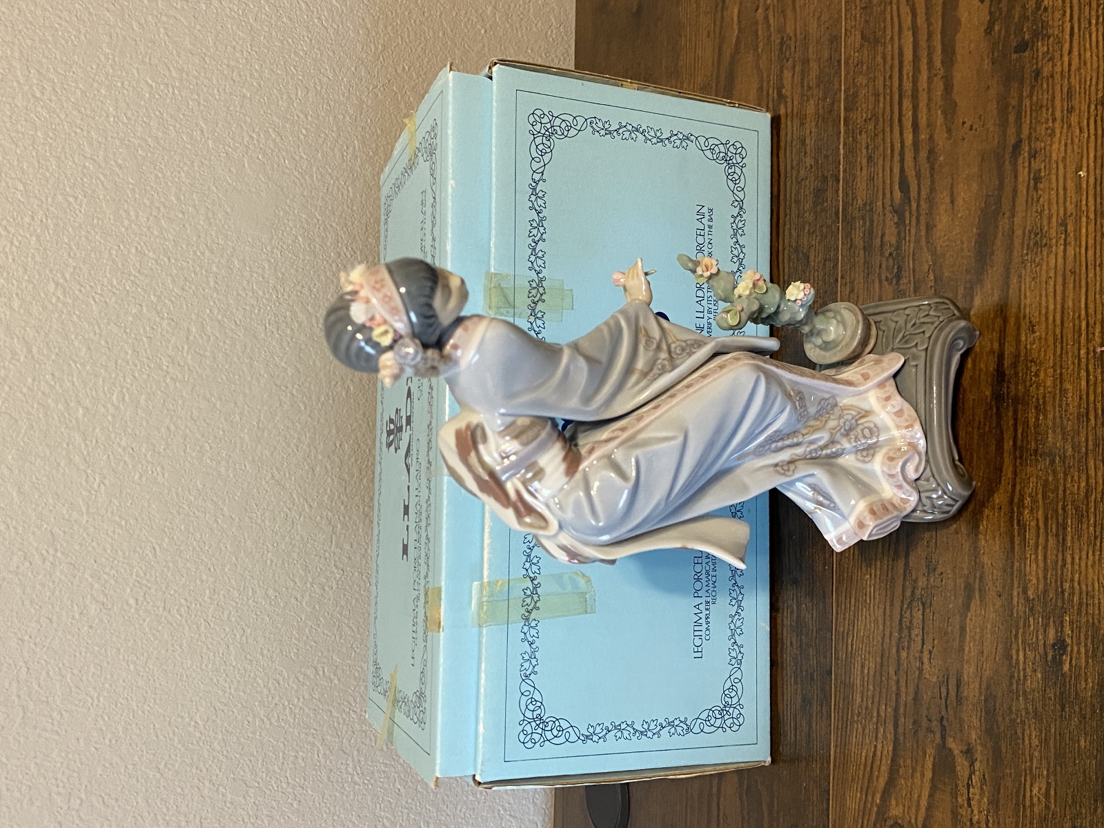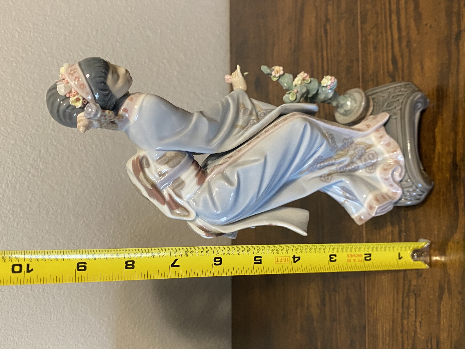 Good used condition PLEASE NOTE THAT THERE ARE SOME FLOWERS MISSING AND THERE IS SLIGHT WEAR TO THIS PIECE, NOTED IN THE PHOTOS, BUT STILL IN GOOD SHAPE FOR ITS AGE. THE FLOWER IN HER HAND MAY OTR MAY NOT HAVE BEEN GLUED BACK ON. Box has some wear to it. (Please refer back to the photos for condition and feel free to message me if you have any questions. Thank you)! Approximate measurements 4.25"L x 2.75"W x 9.5"H. 100% of the proceeds go to the registered non profit Cards of Love Inc. and with your purchase you are helping raise money to fund scholarships for at risk youth. Thank you!