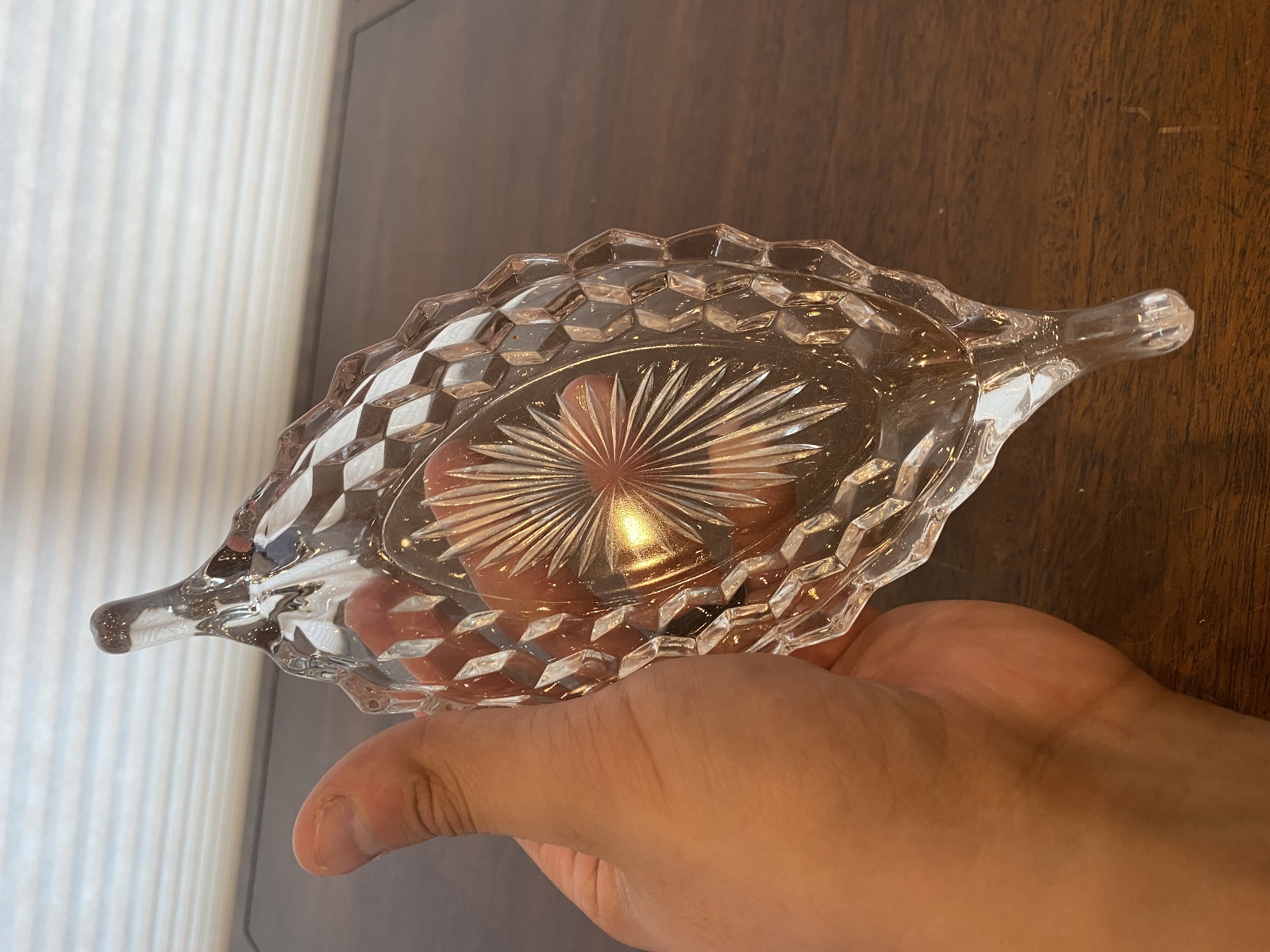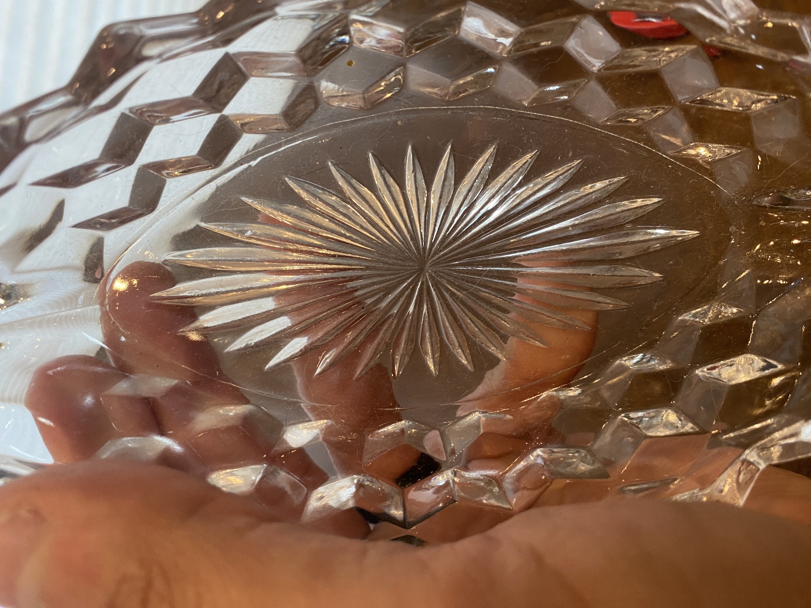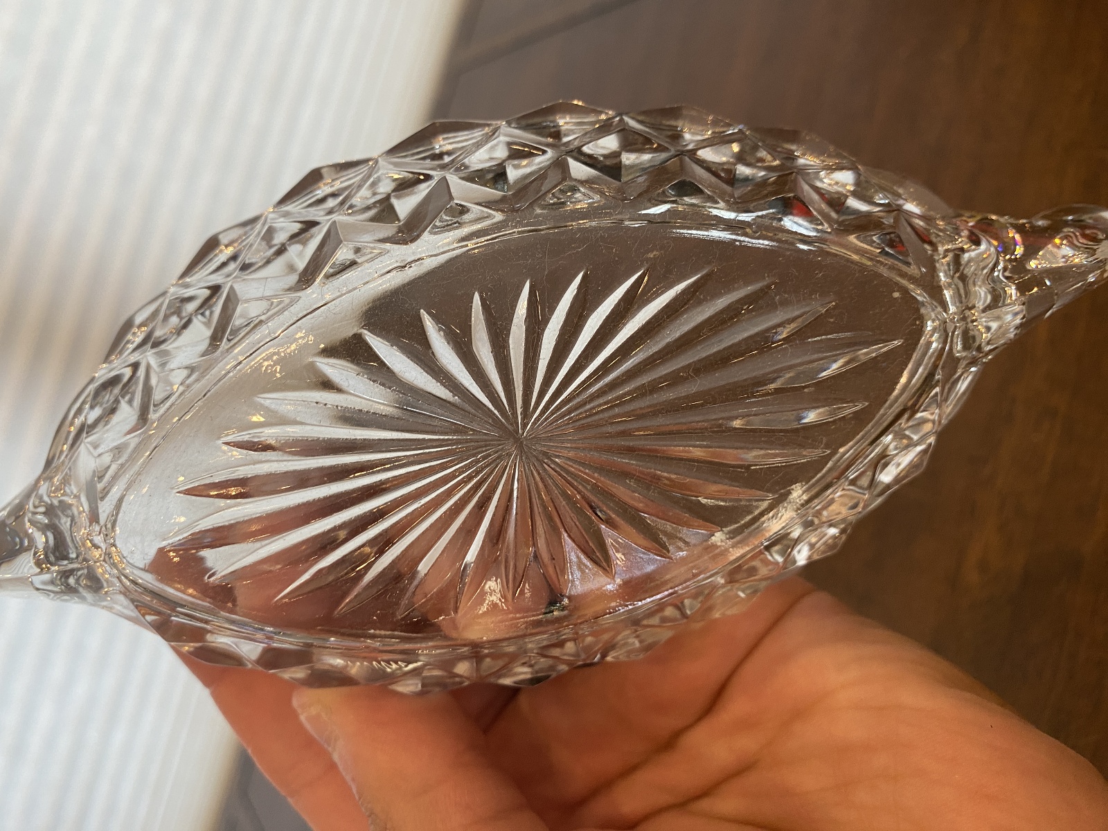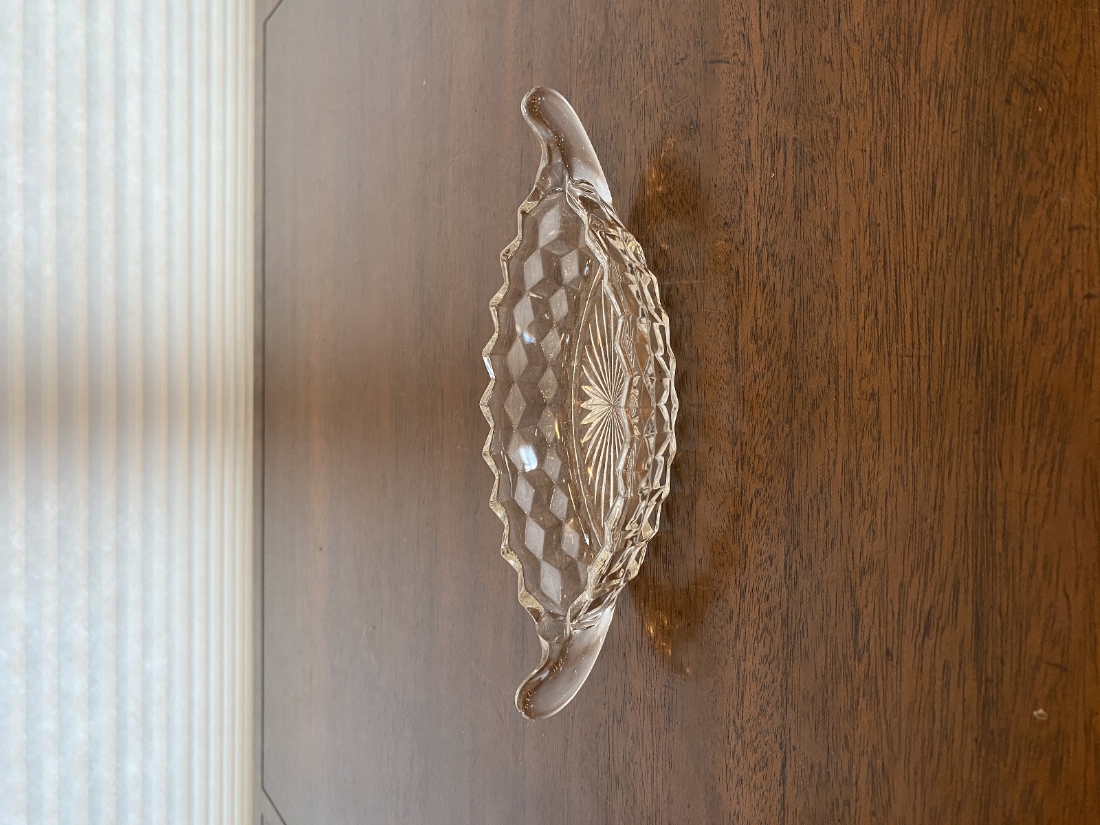 VTG AMERICAN FOSTORIA Cubist Pattern Small Boat Dish 8.5"L