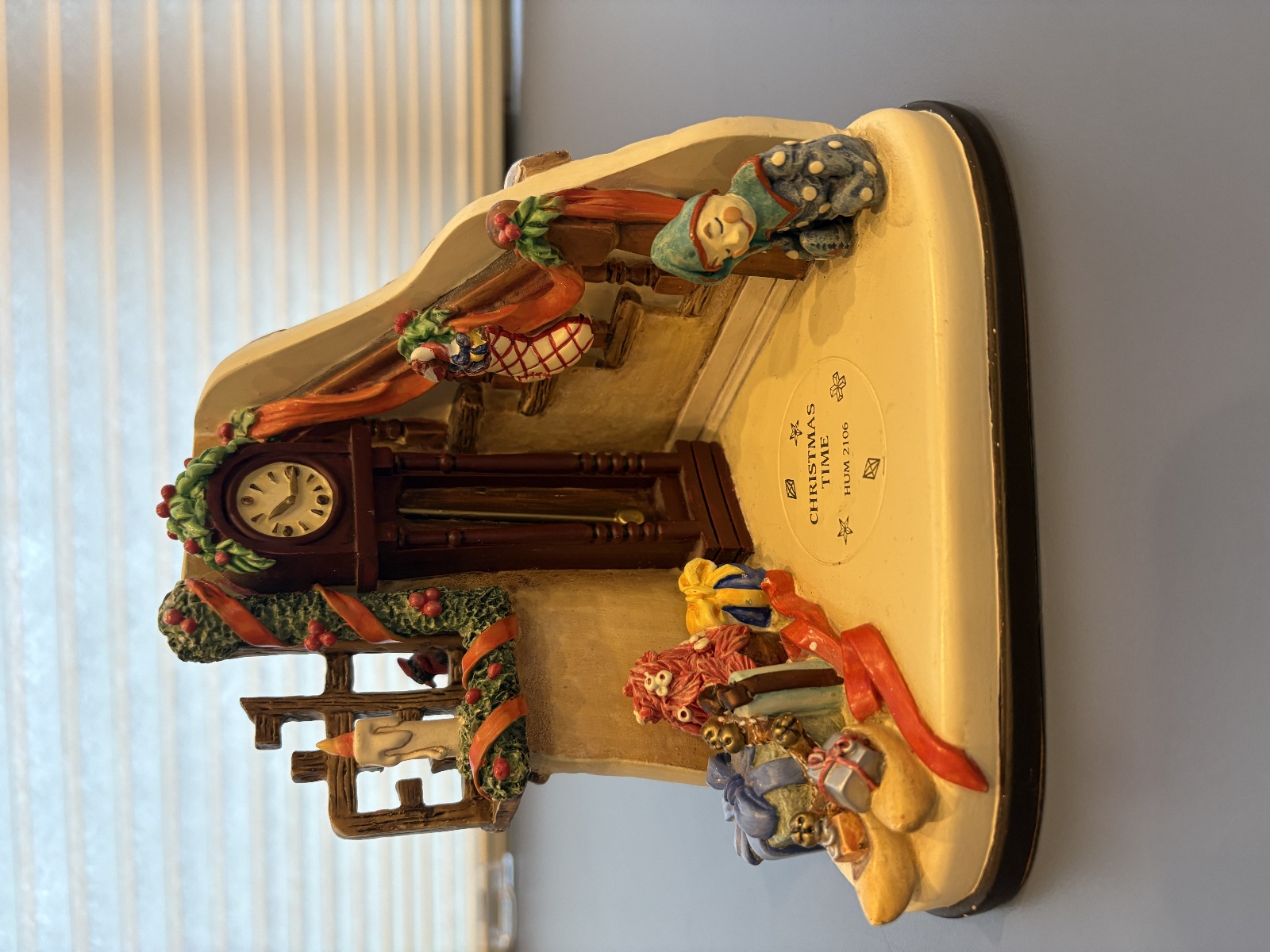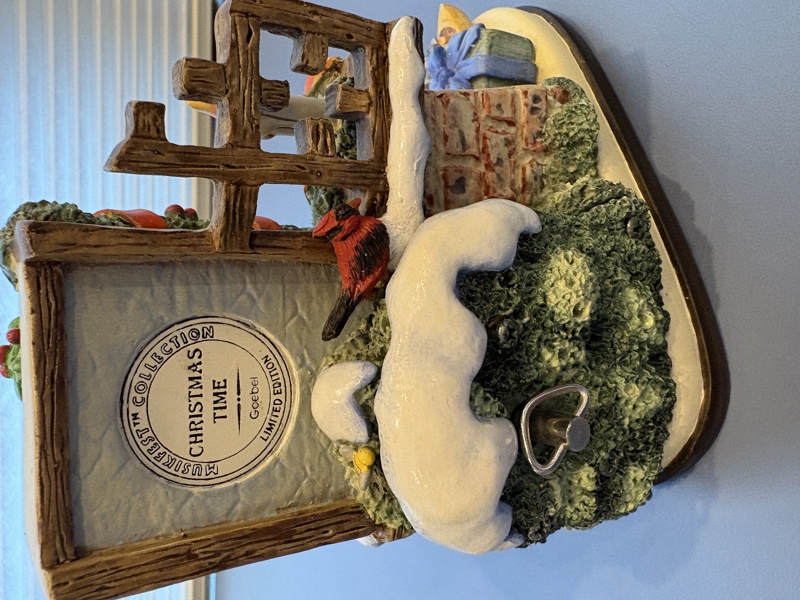 Great condition. Music box does work as it should and plays music. (Please refer back to the photos for condition and feel free to message me if you have any questions. Thank you)!