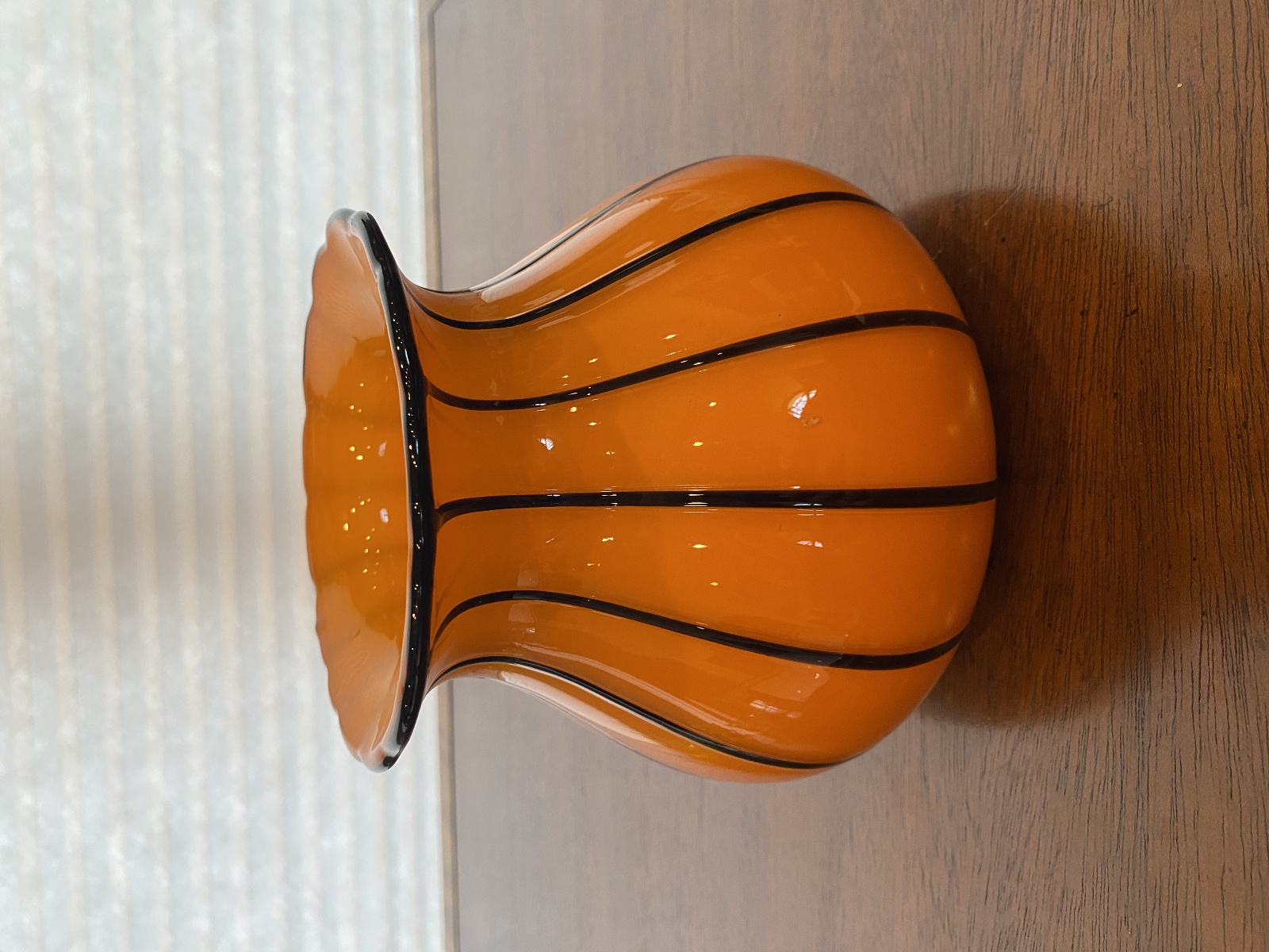 Great condition (This piece has what looks like a hole/chip in the center of the base, but its not because it doesn't go all the way through the glass, I believe that this was how this individual piece was created, there are also lots of little things stuck in the glass from its creation process, other than that this piece is in really great shape for its age). (Please refer back to the photos for condition and feel free to message me if you have any questions. Thank you)!