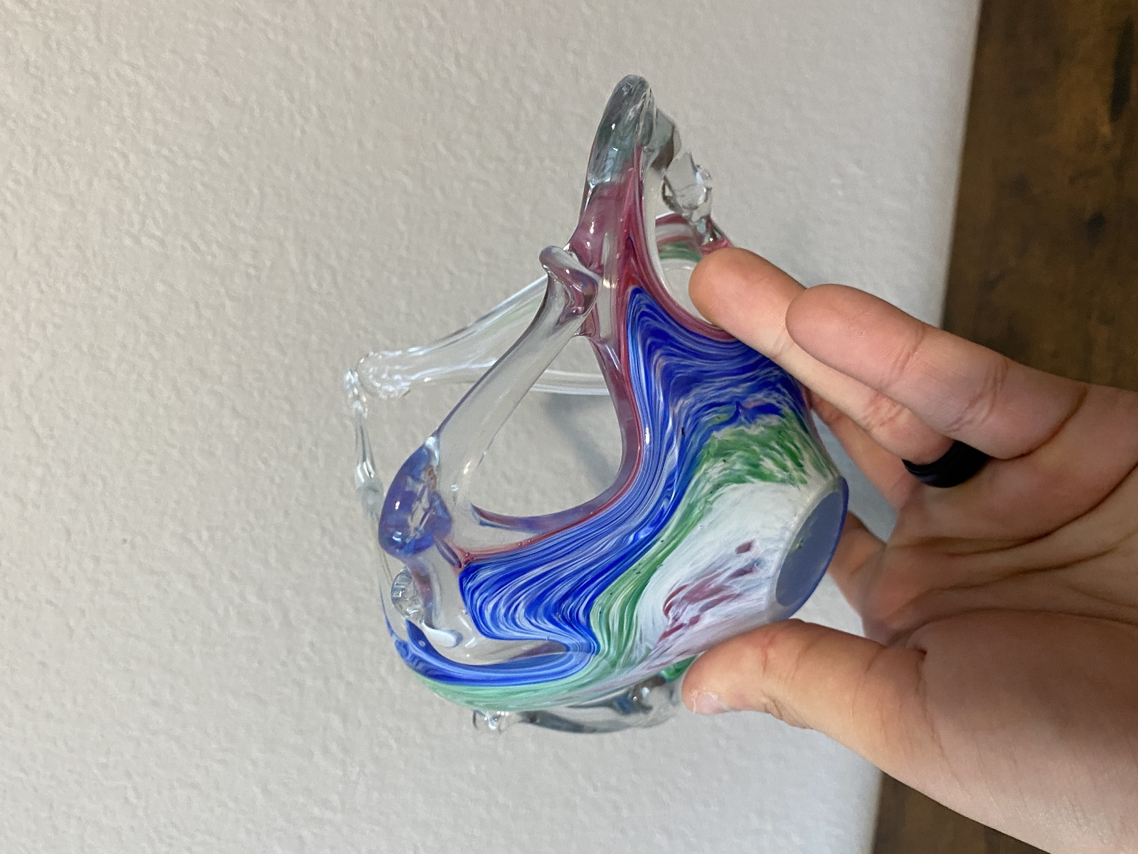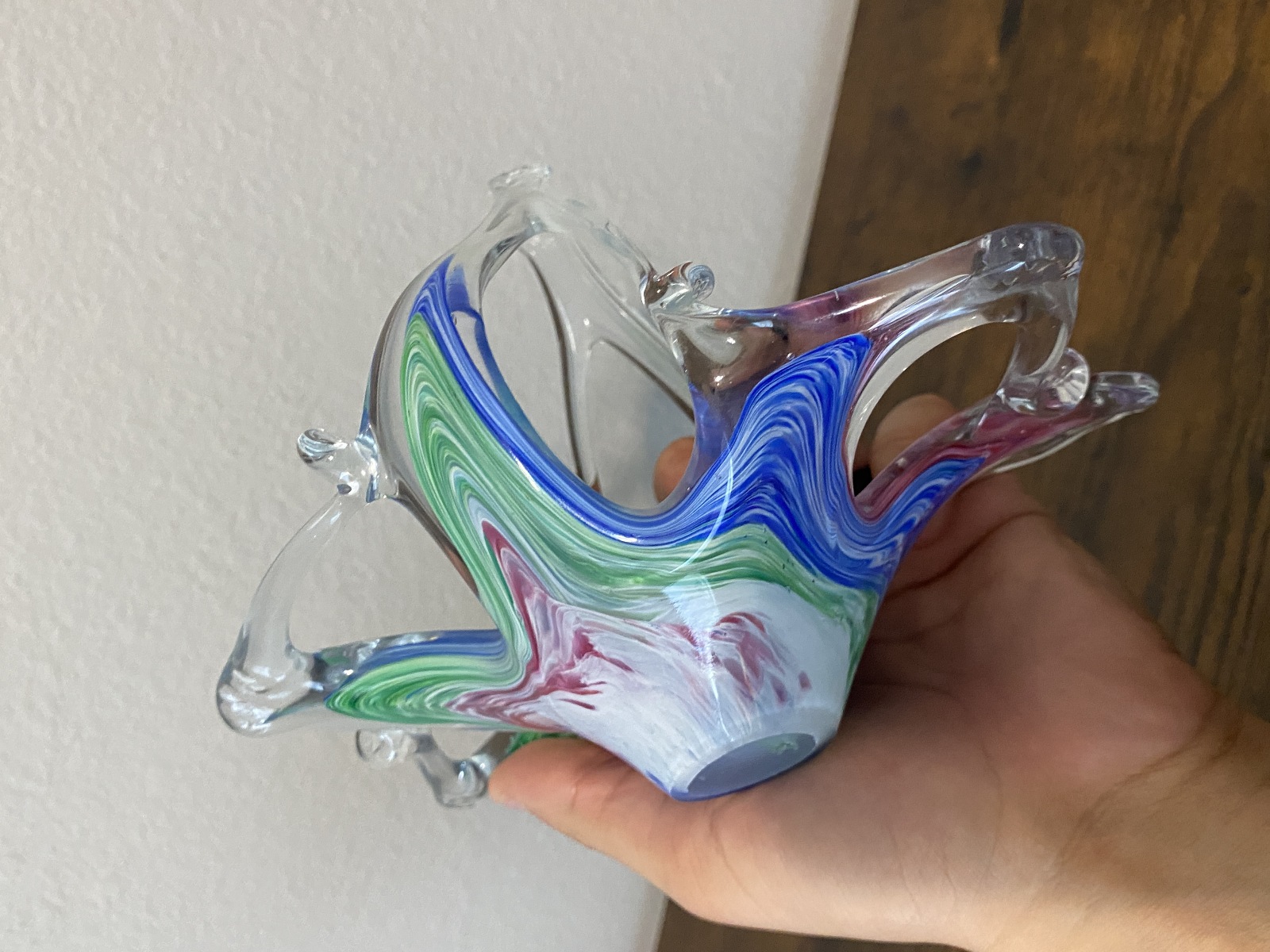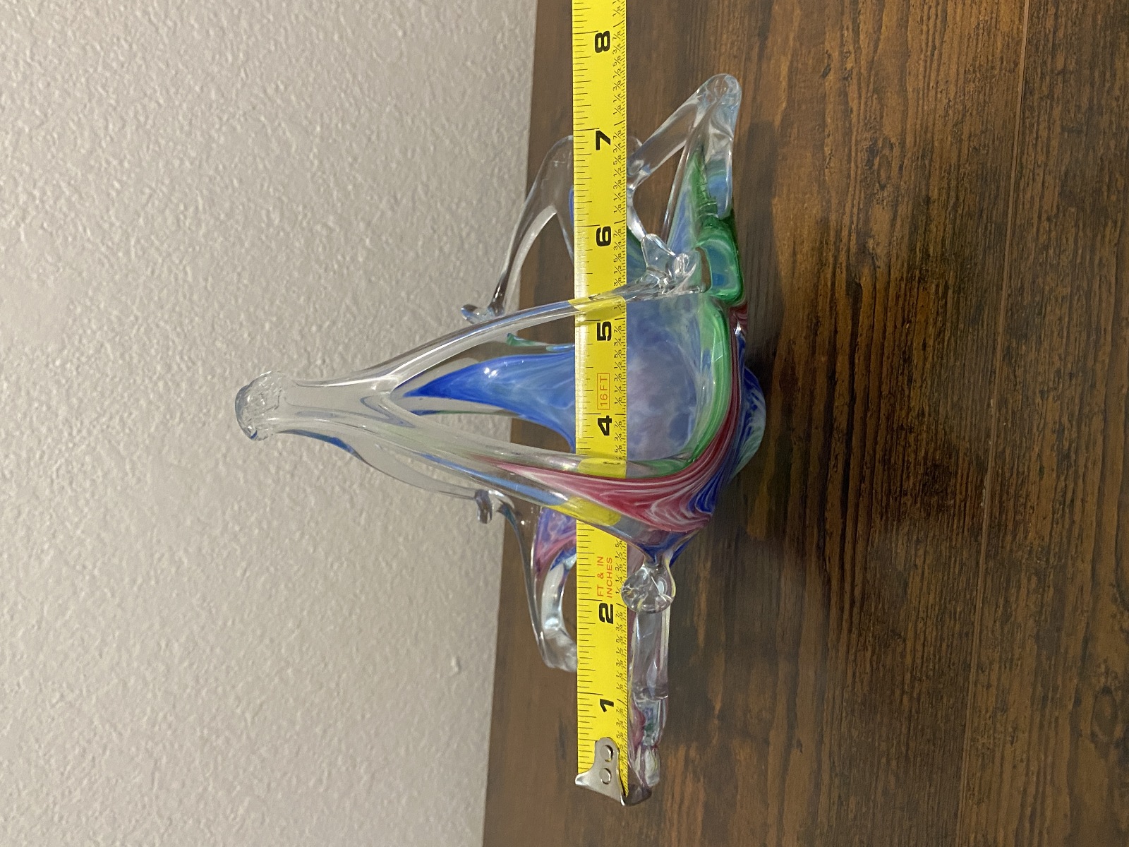 VTG Multicolored Murano Art Glass Freeform Basket/Candy Dish 7.5"L