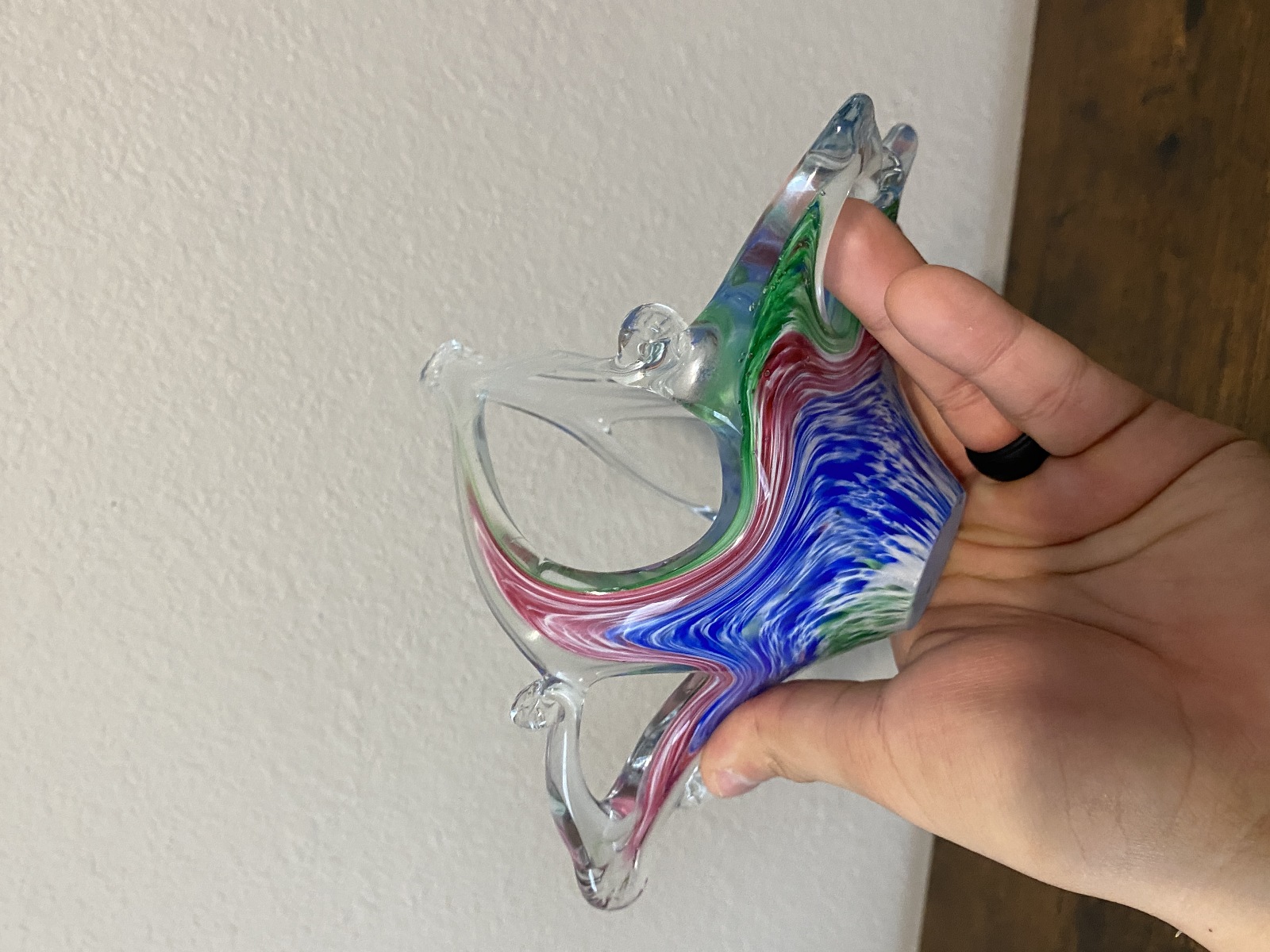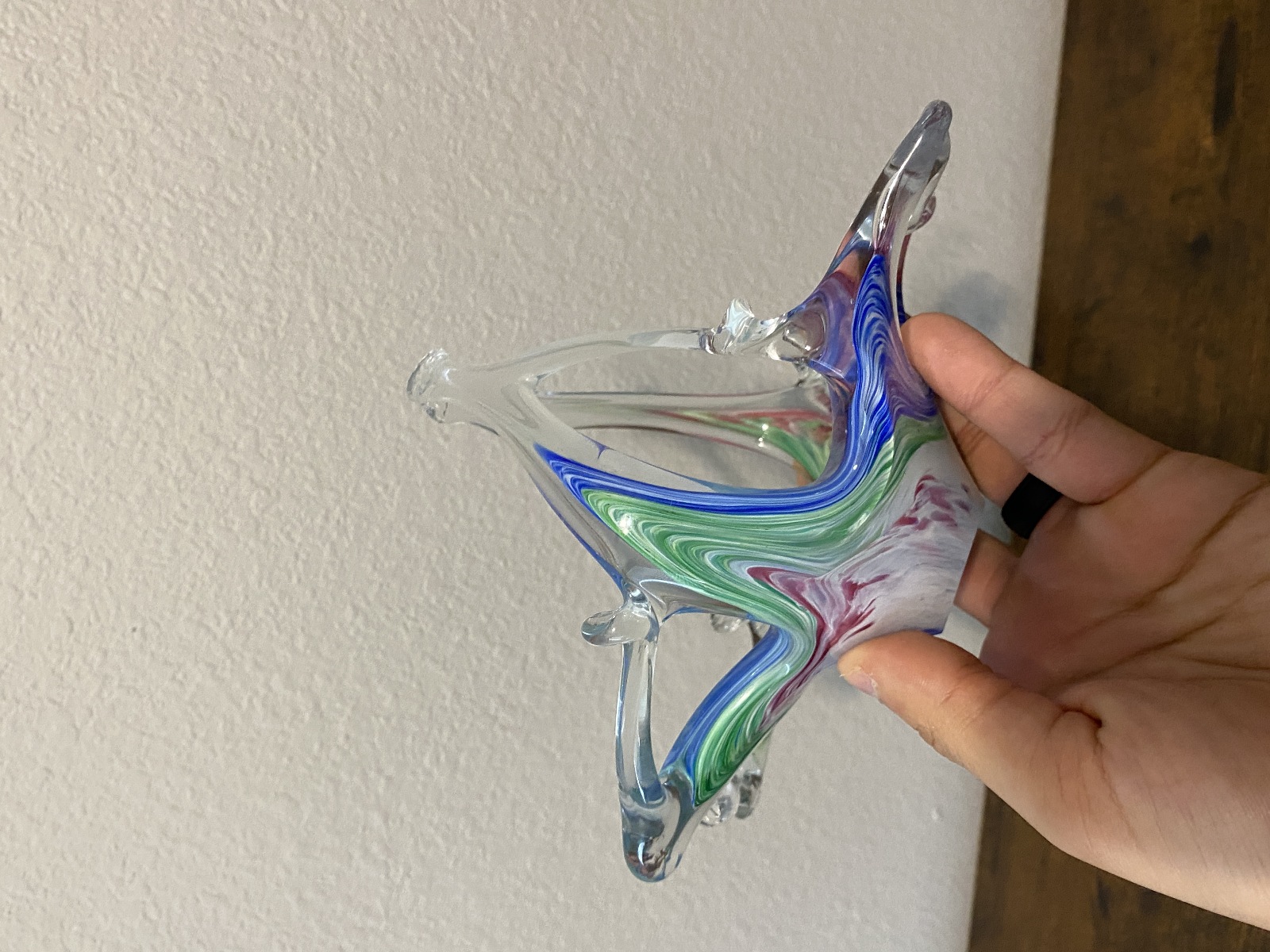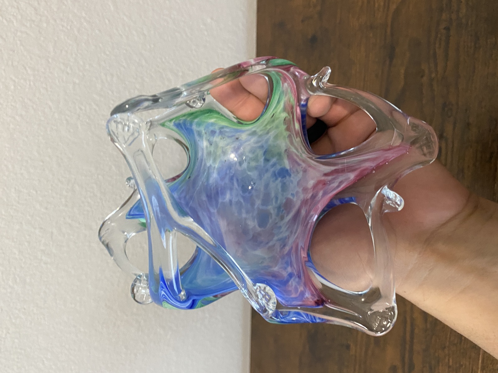 VTG Multicolored Murano Art Glass Freeform Basket/Candy Dish 7.5"L