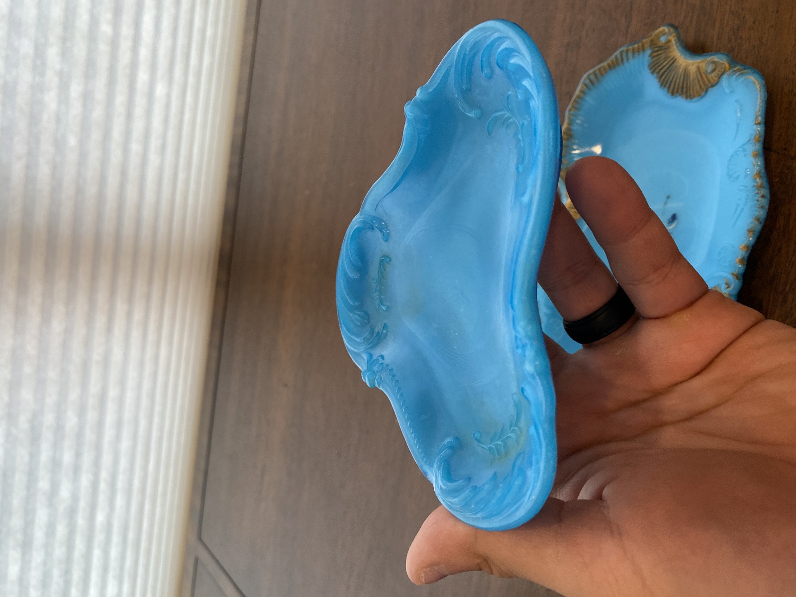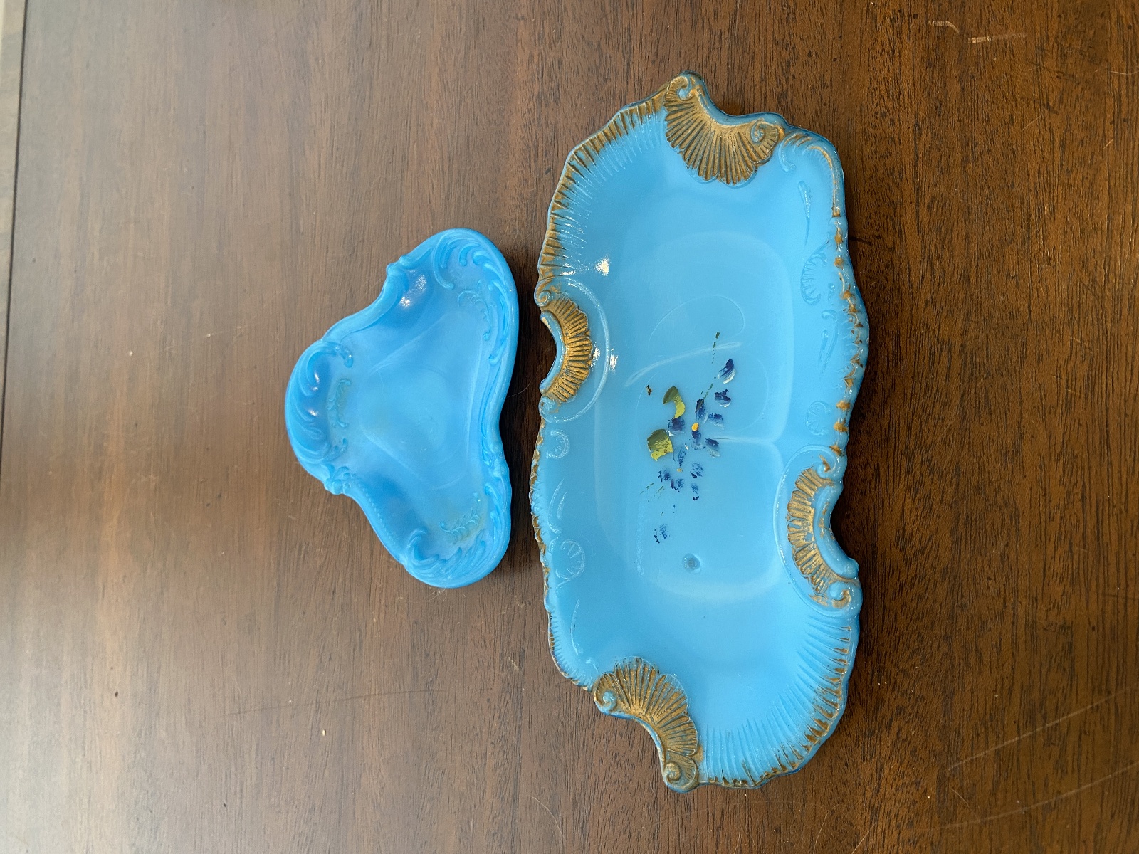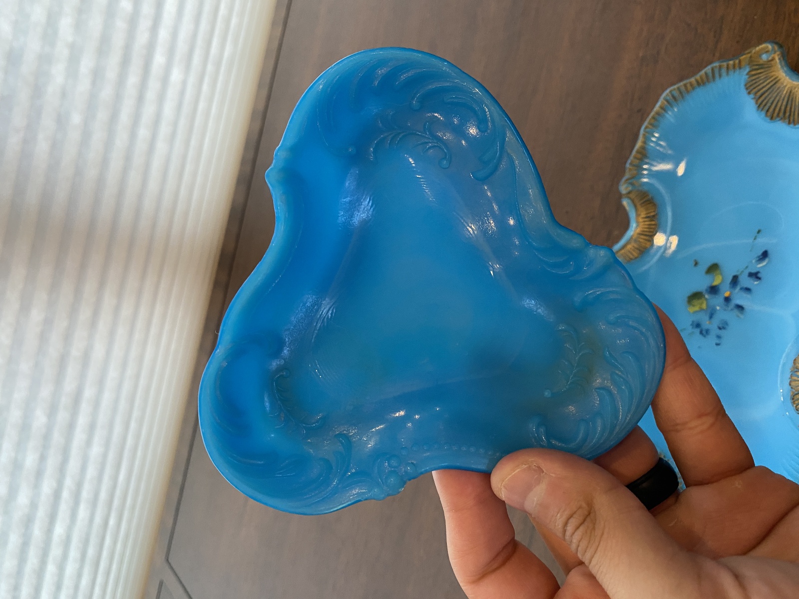 PAIR Of ANTIQUE DITHRIDGE Blue Opaline Glass Dishes