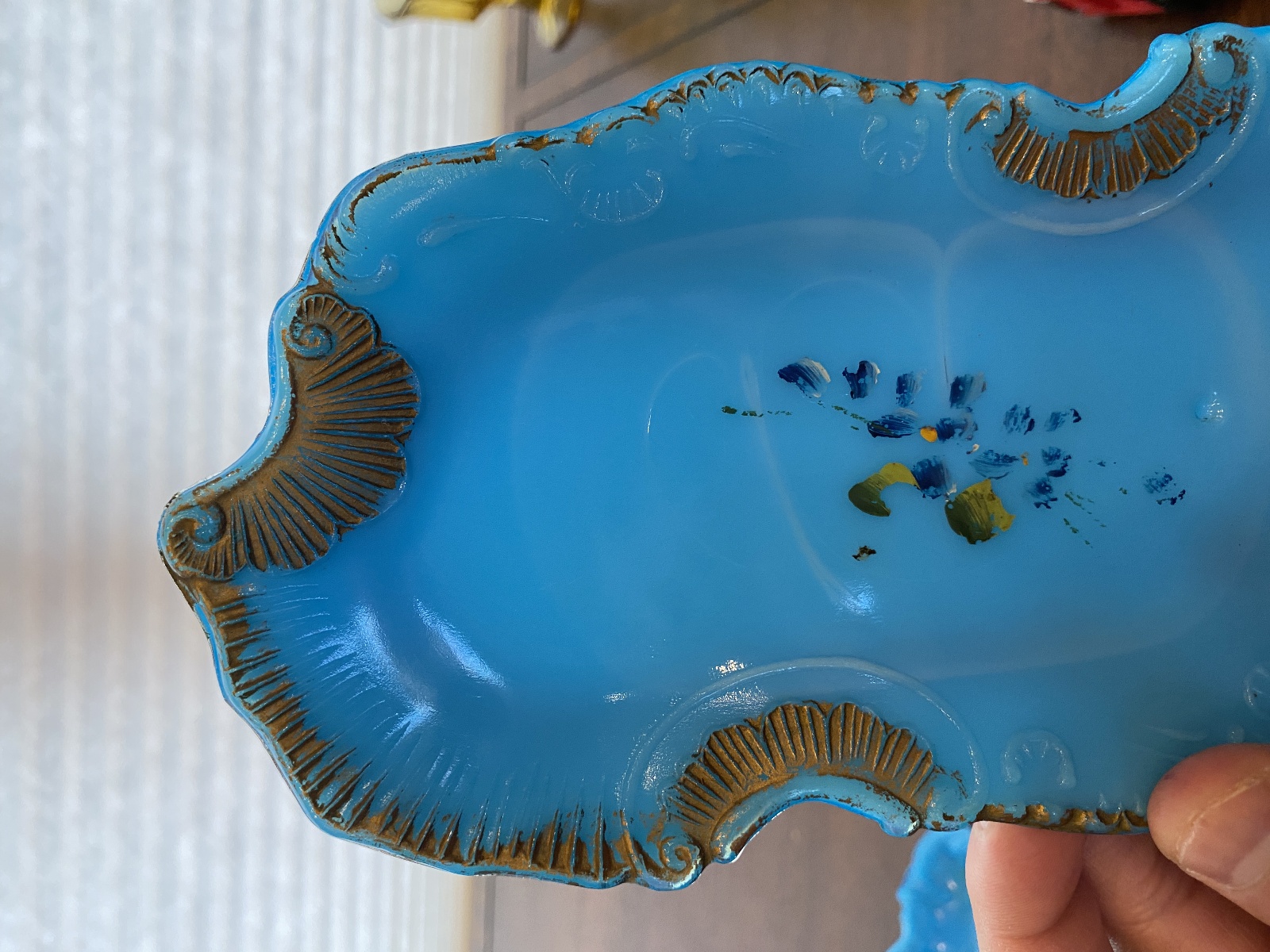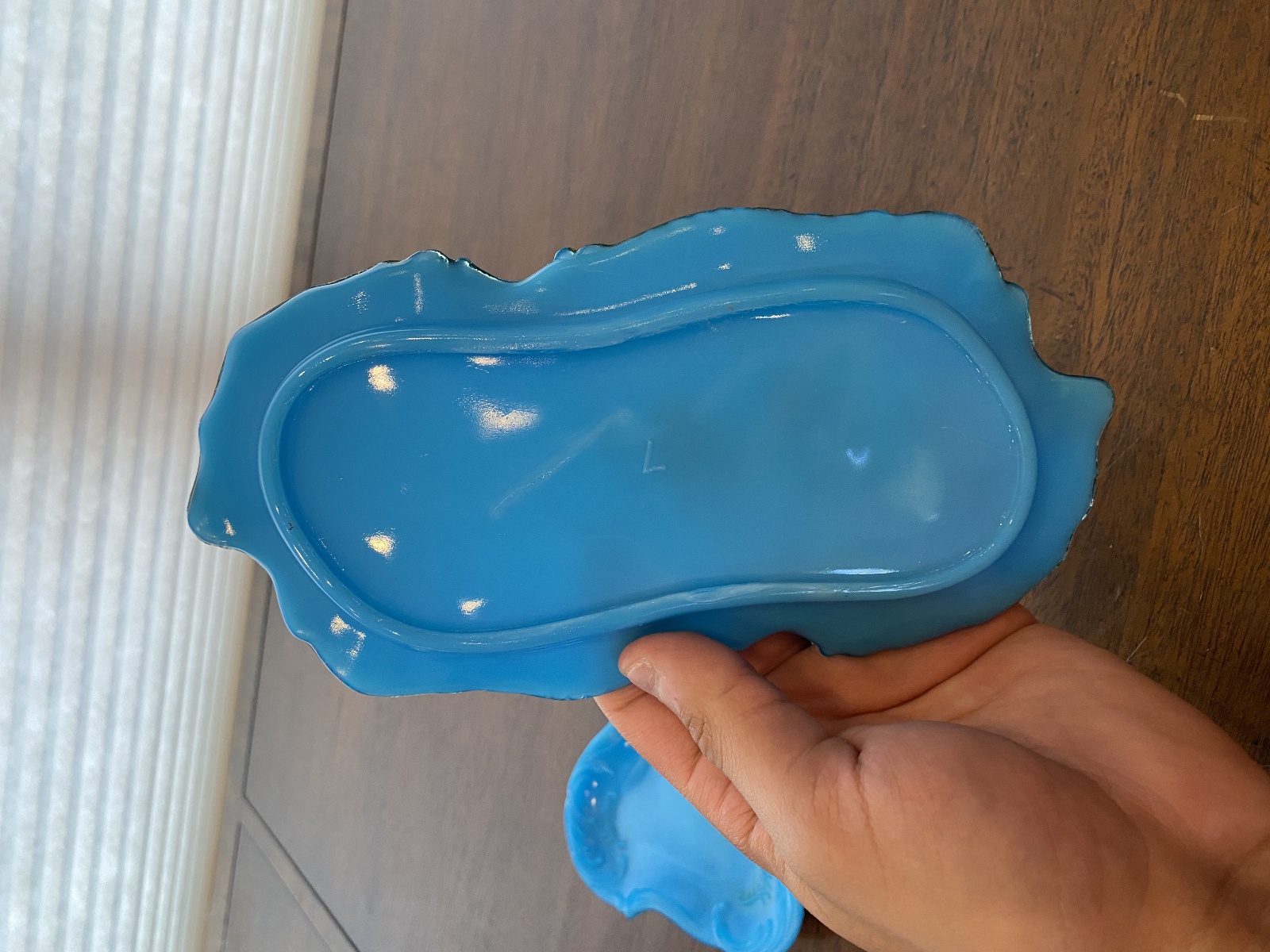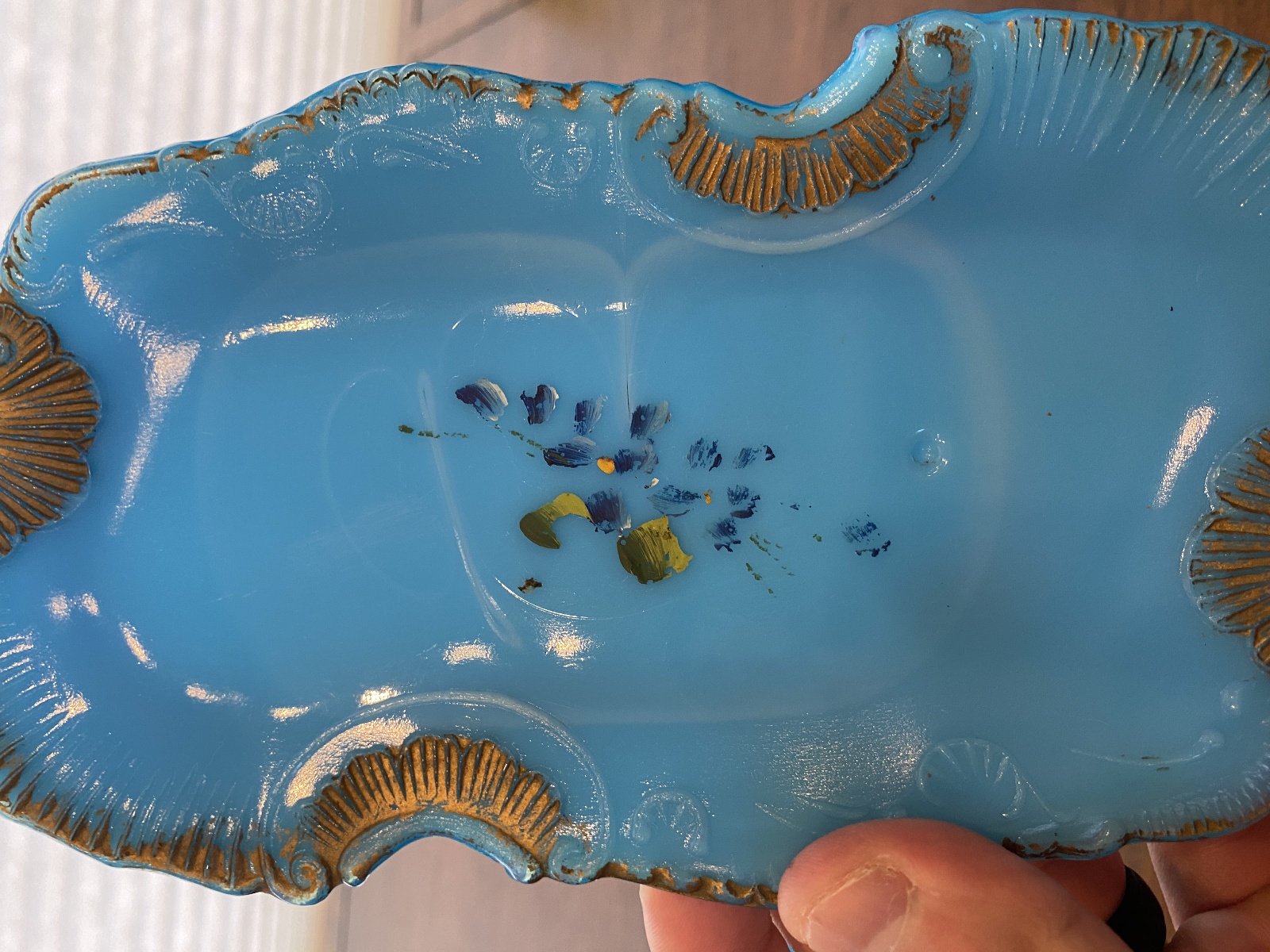 PAIR Of ANTIQUE DITHRIDGE Blue Opaline Glass Dishes
