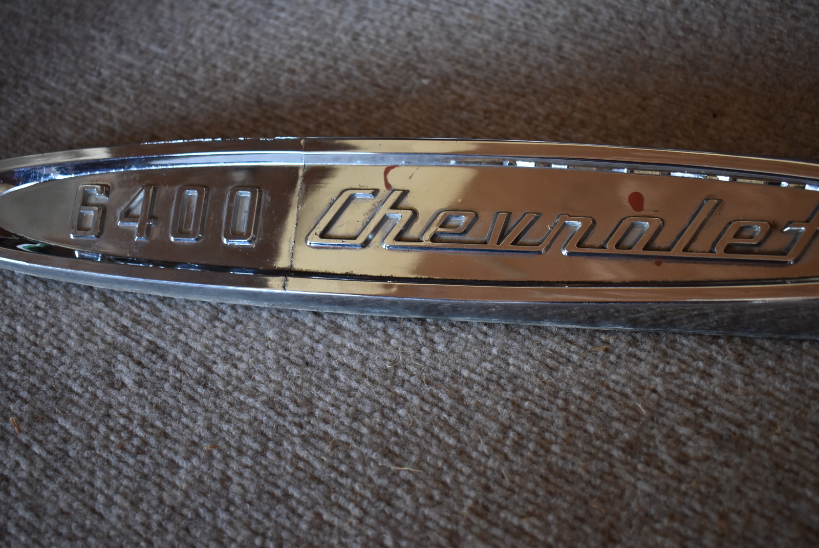 Pair Chevrolet 6400 chrome Emblems/ Badges. Light surface build-up. Rough spots on back side.